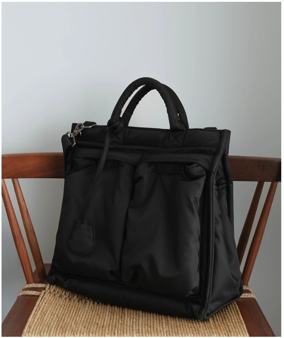 リモンタナイロンを使用することで機能的にも見た目的にも申し分なく、かっちりした台形シルエットでラグジュアリーな雰囲気も取り入れられます。