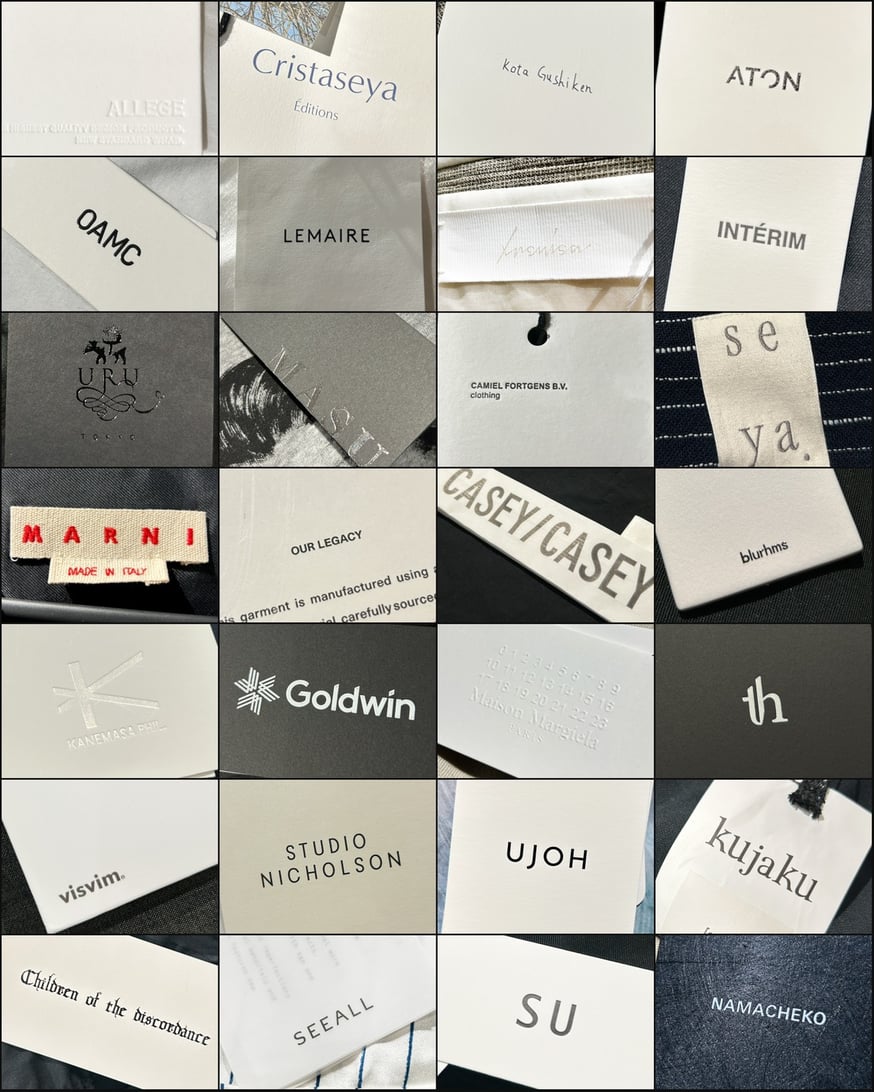 RAINMAKER、VEIN、RichI、DISCOVERED、NVRFRGT、kujaku、UJOH、children of the discordance、TMT、MAISON MARGIELA、MARNI、OUR LEGACY、bluhms、th、SEEALL、STUDIO NICHOLSON、ATON、OAMC、Acne Studios、LEMAIRE、INTERIM、MASU、GRAPHPAPER、VISVIM、RAF SIMONS、Cristaseya、KANEMASA PHIL etc...