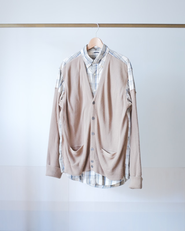 -     【MLRリメイク】ドッキングニットシャツ ¥19,000 COMING SOON ニットカーディガンとシャツをドッキングさせたアイテム。 レイヤード風にしつつ、切り替えを入れることでデザイン性をプラス。普通にレイヤードをしただけでは再現出来ないデザインになっています。 カーディガン部分とシャツ部分でそれぞれ前ボタンを開けることができるので、雰囲気を変えるのもオススメです。 【実寸サイズ】肩幅 : 53 身幅 : 60 着丈 : 80 袖丈 : 65 【素材】素材表記なし 【カラー】ベージュ 【商品状態】A(かなりきれいな状態) モデル...身長170cm 体重58kg 状態ランク表 S…新品未着用 A…美品 B…やや汚れあり C…汚れあり D…目立つ汚れあり