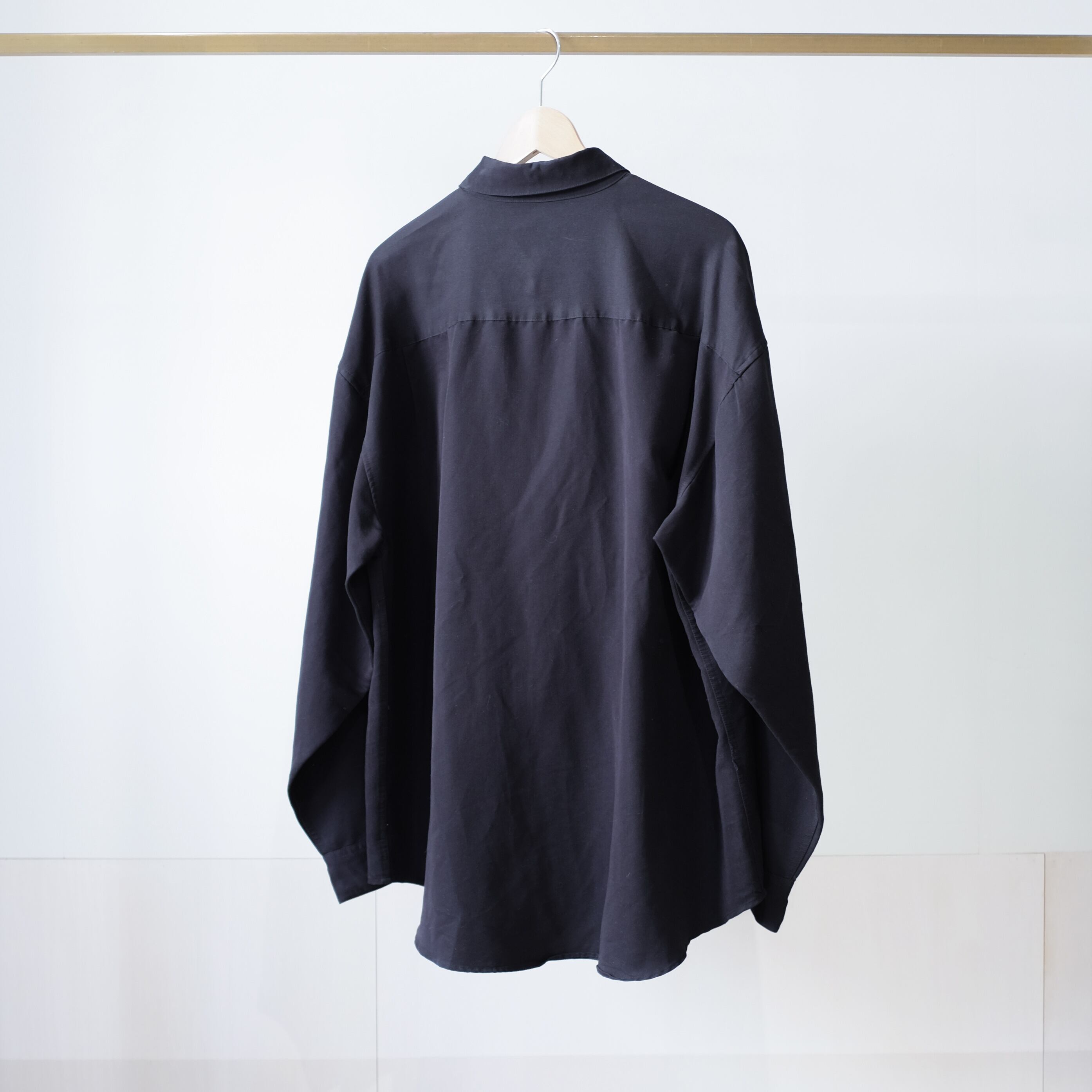 たっぷりしたドレープ感とツヤのある生地感が特徴のレギュラーカラーシャツ。