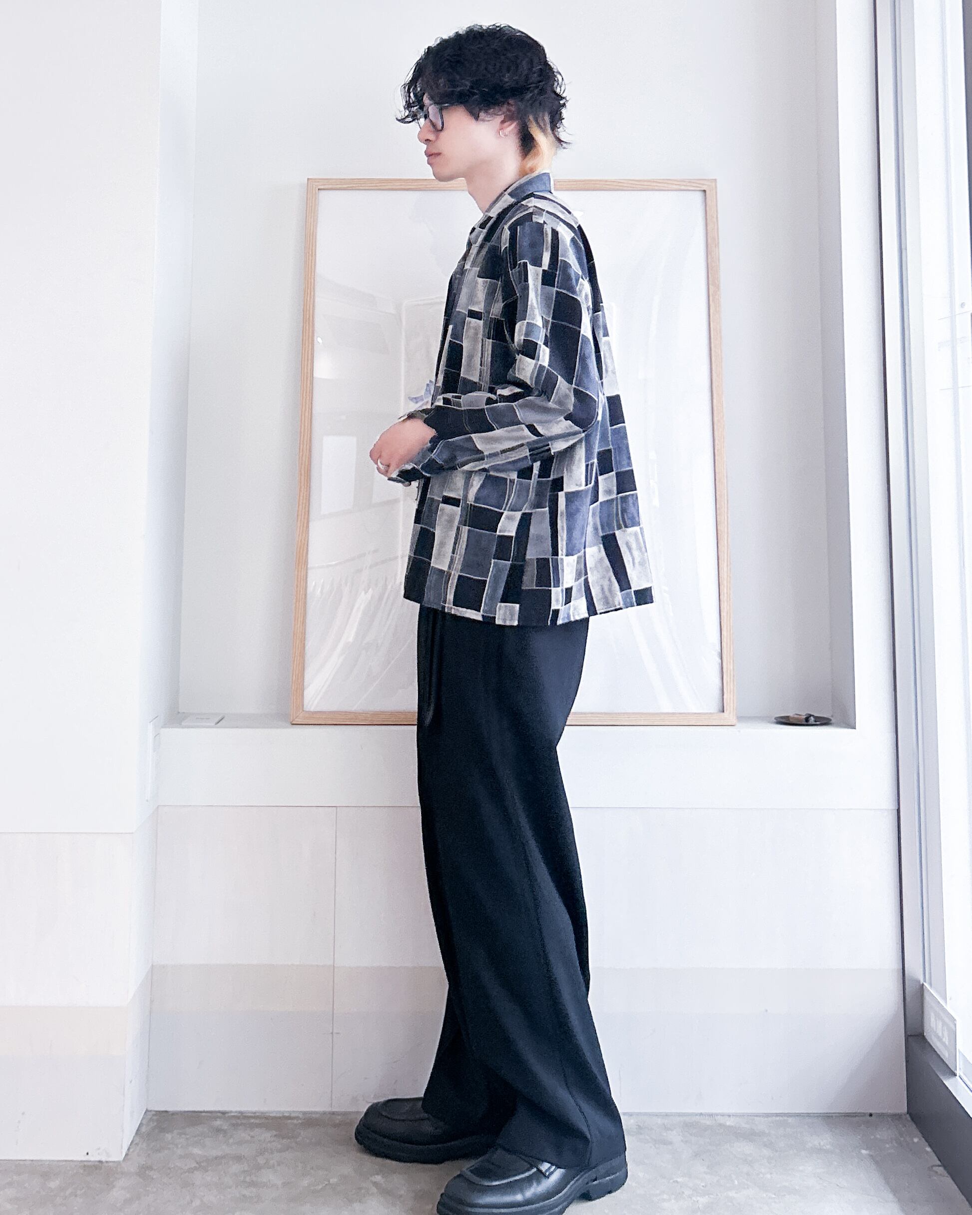 一見、奇抜そうですが綺麗な光沢と落ち感のある生地や落ち着いた色味で上品な印象があります。