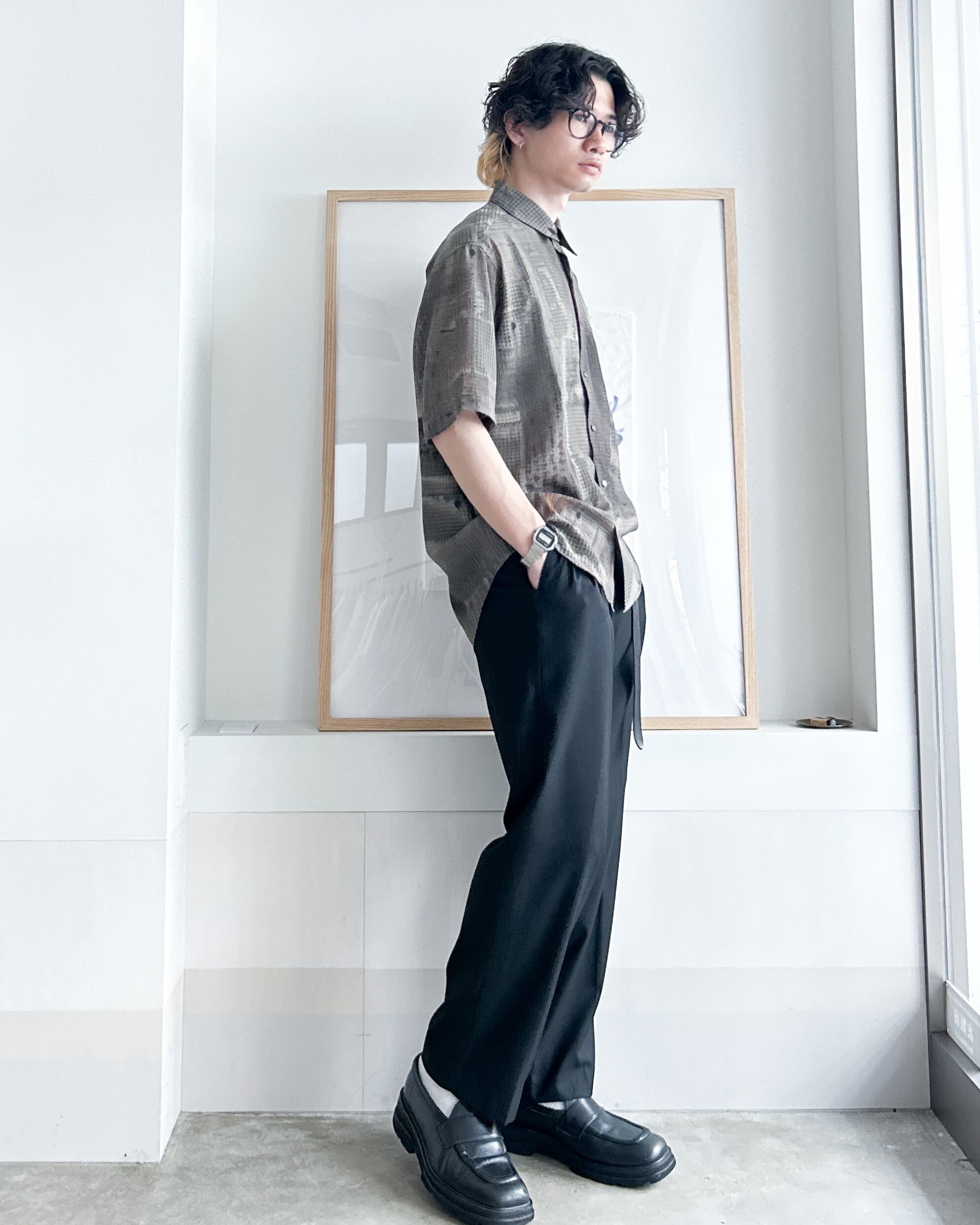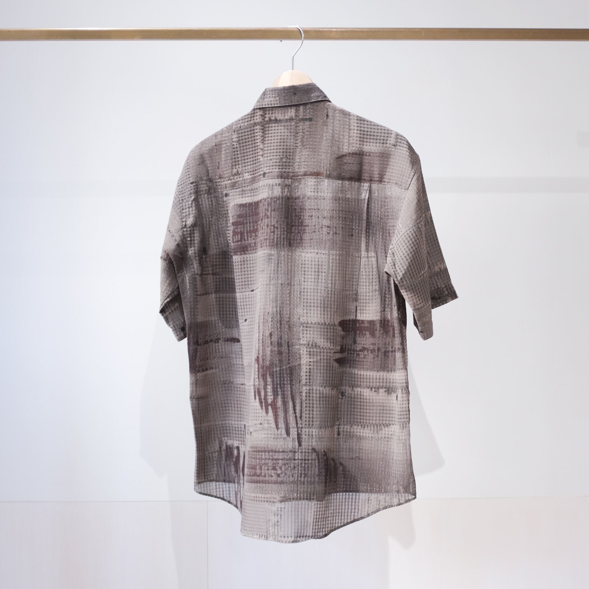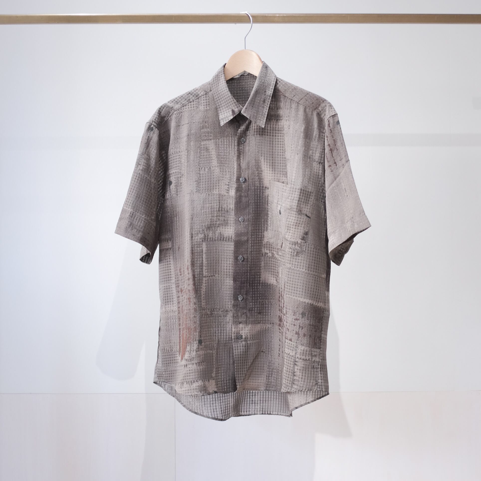 凹凸のある生地感と無機質なプリントのバランスが絶妙なシャツ。