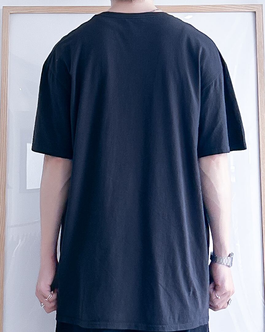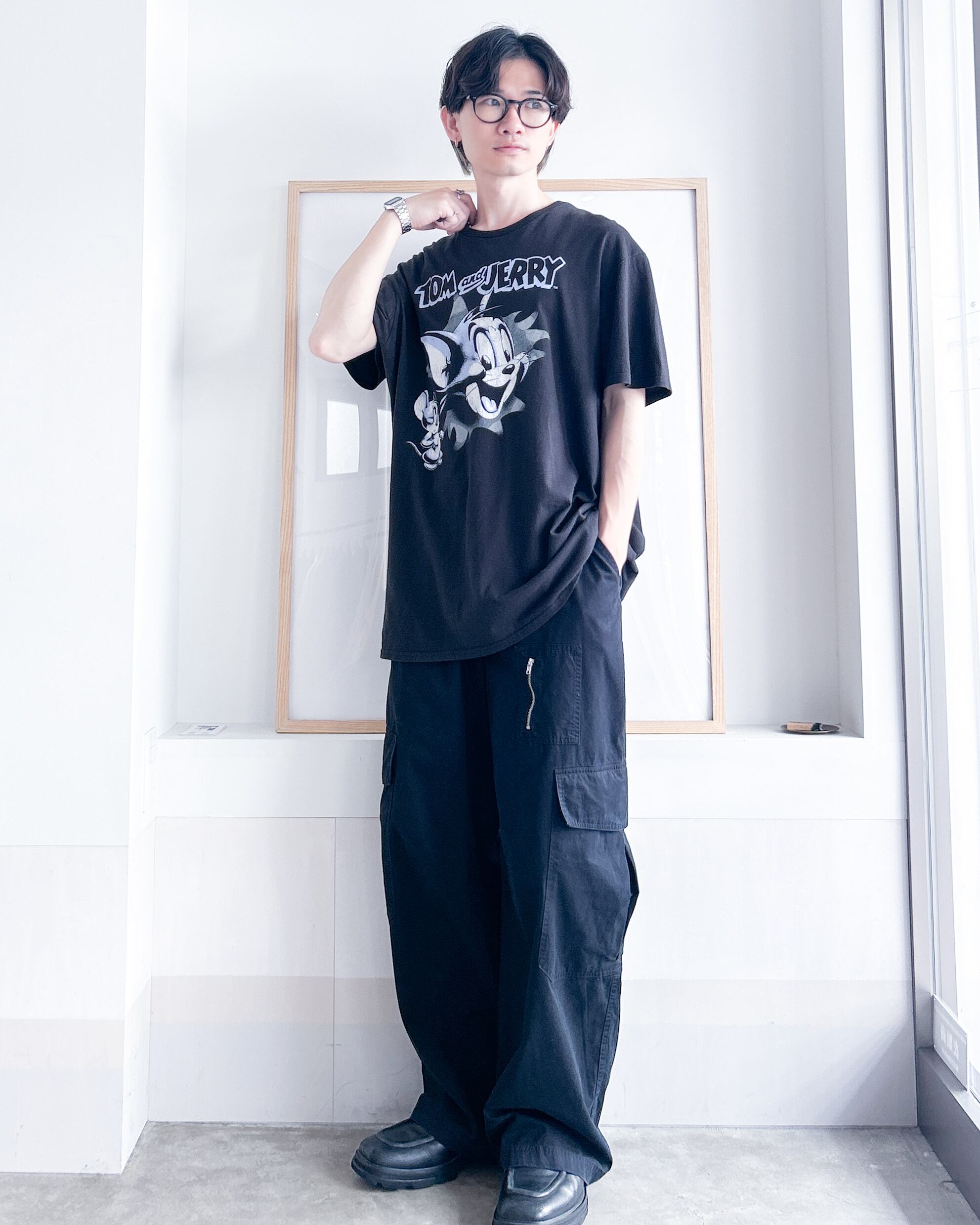 プリントは面積が大きいほどカジュアルになり着こなしが難しくなっていきますが、モノトーンで統一されているのでバランスが取りやすいでしょう。