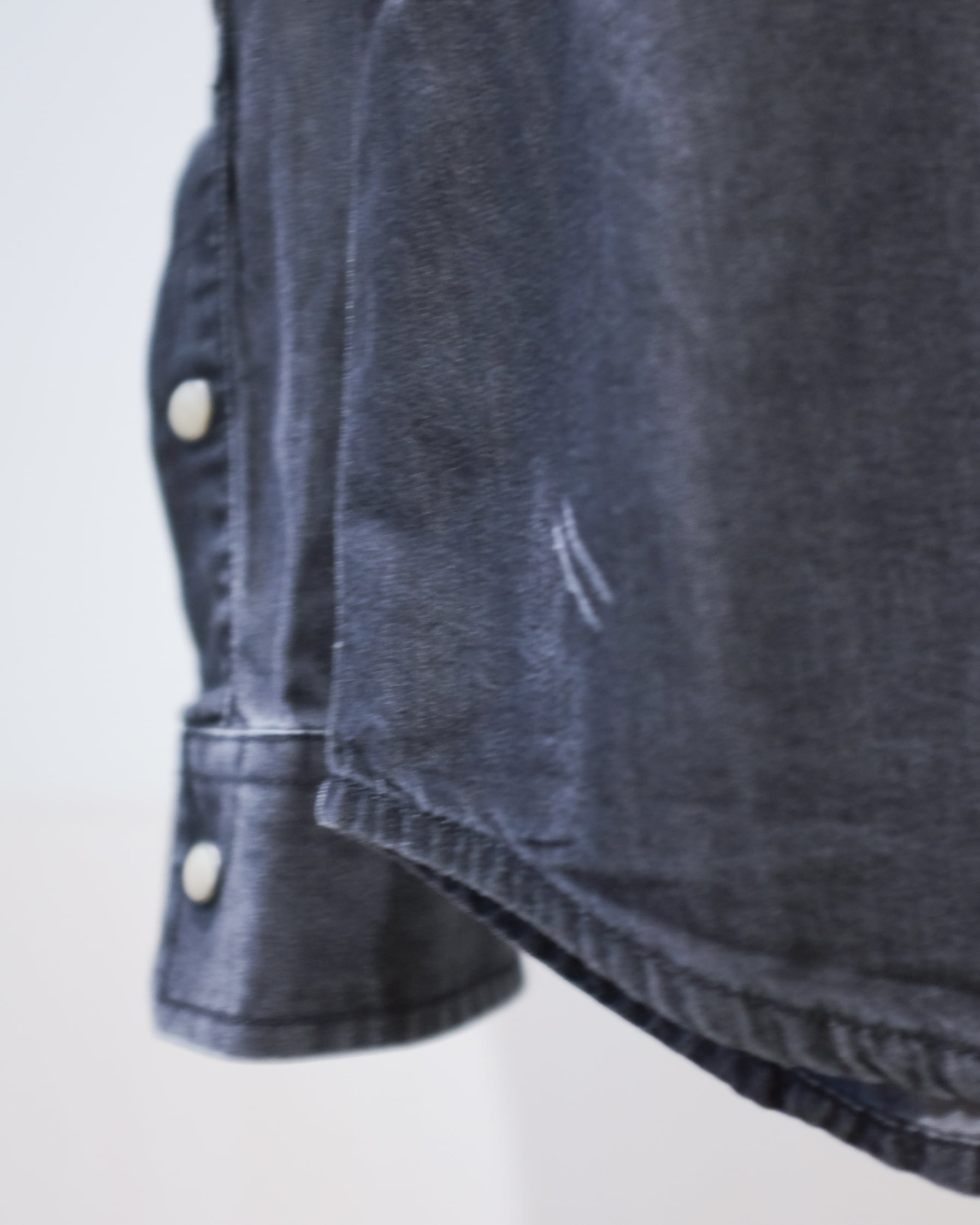 肩ヨークの切り替えやストーンボタンなどウエスタンシャツの仕様で新鮮に着こなせます。