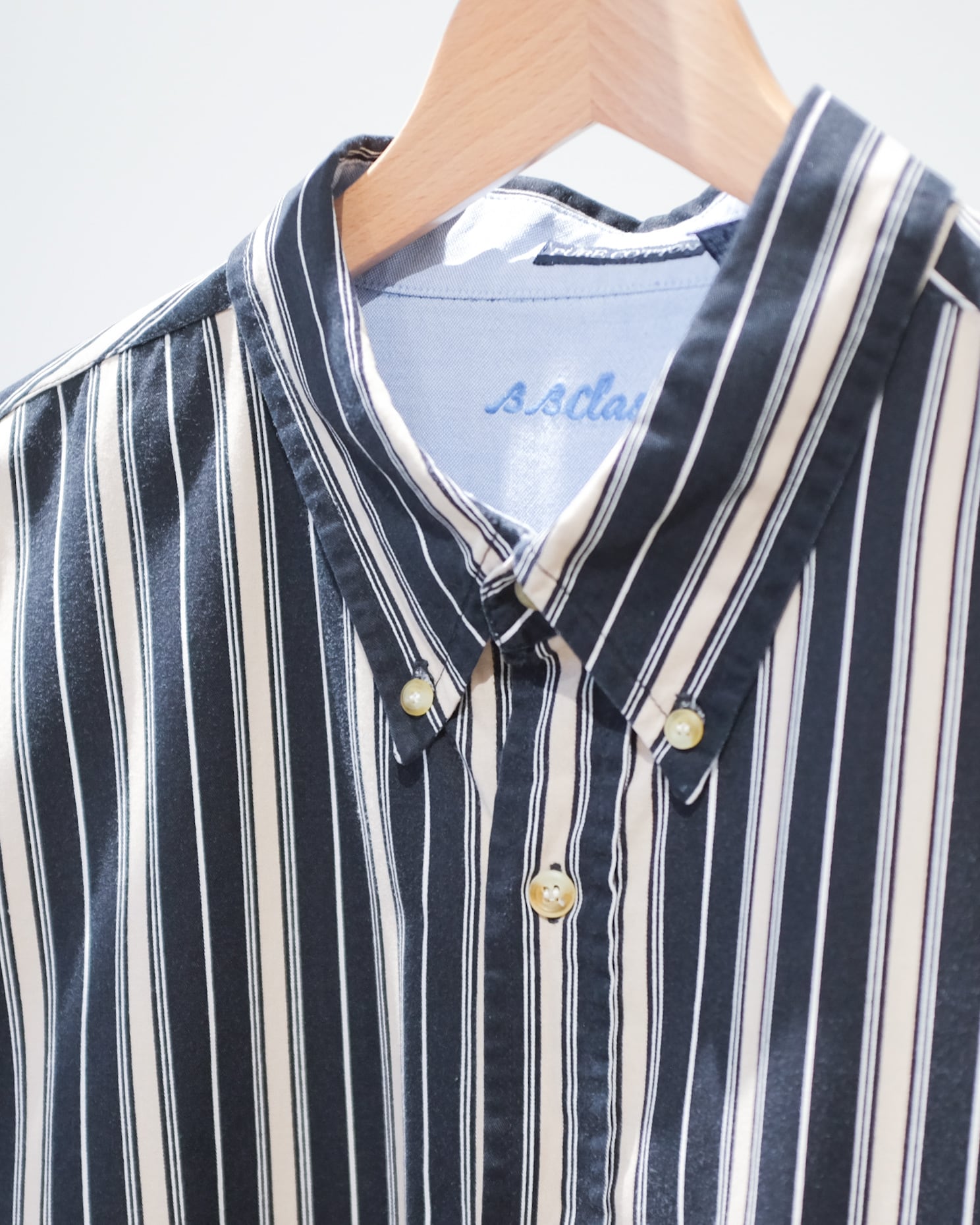 ダークトーンのストライプが落ち着いた印象のストライプシャツ。