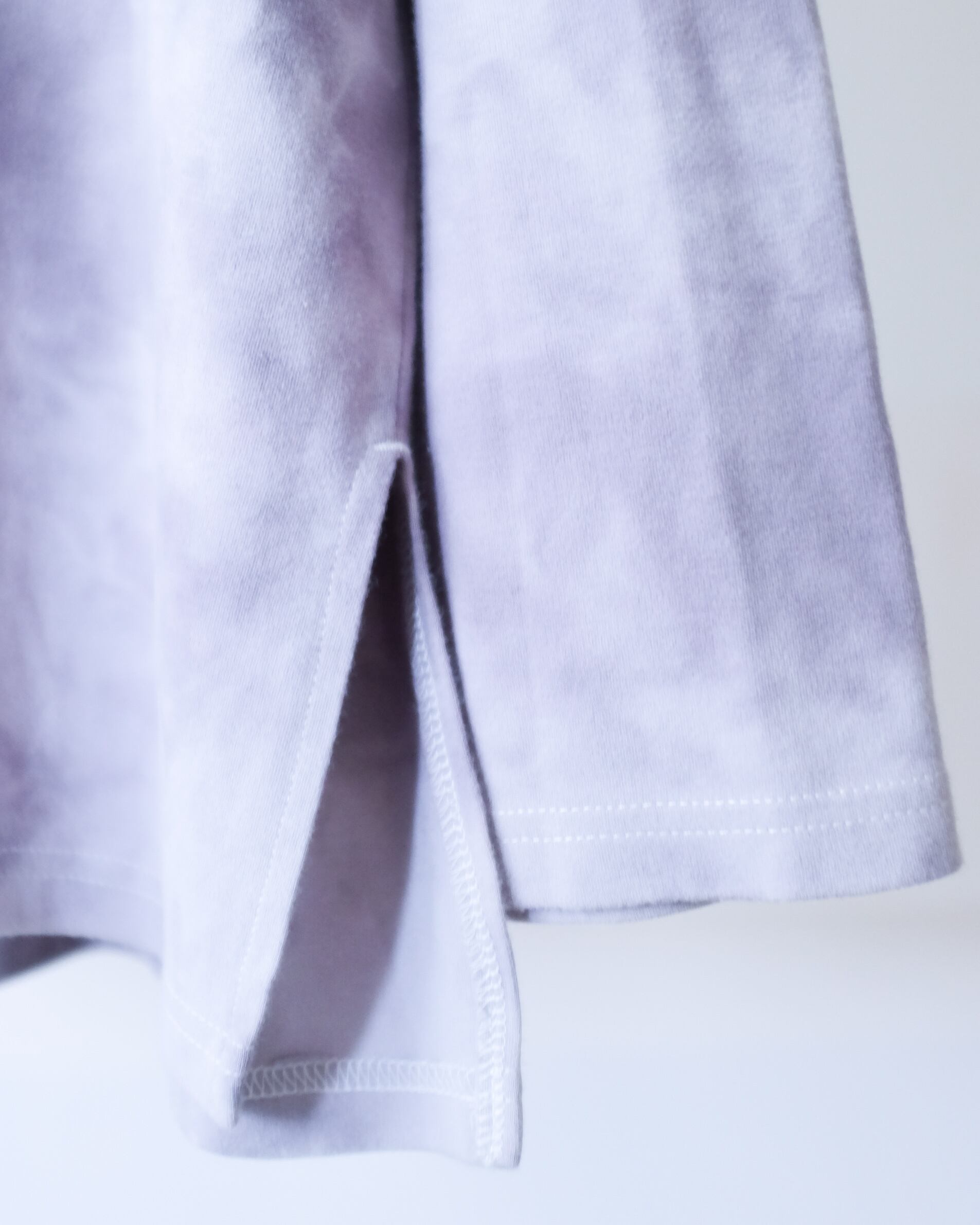 生地はツルッとしたツヤがありもっちりとした素材を使用して、オーバーサイズですがツヤ感があるのでカジュアルな子供っぽさも出ないカットソーです。
