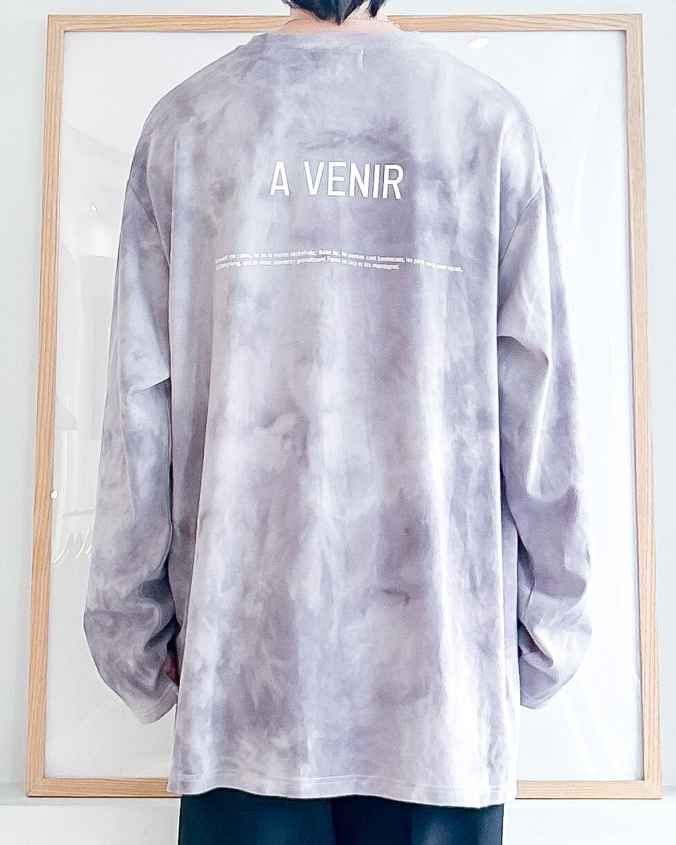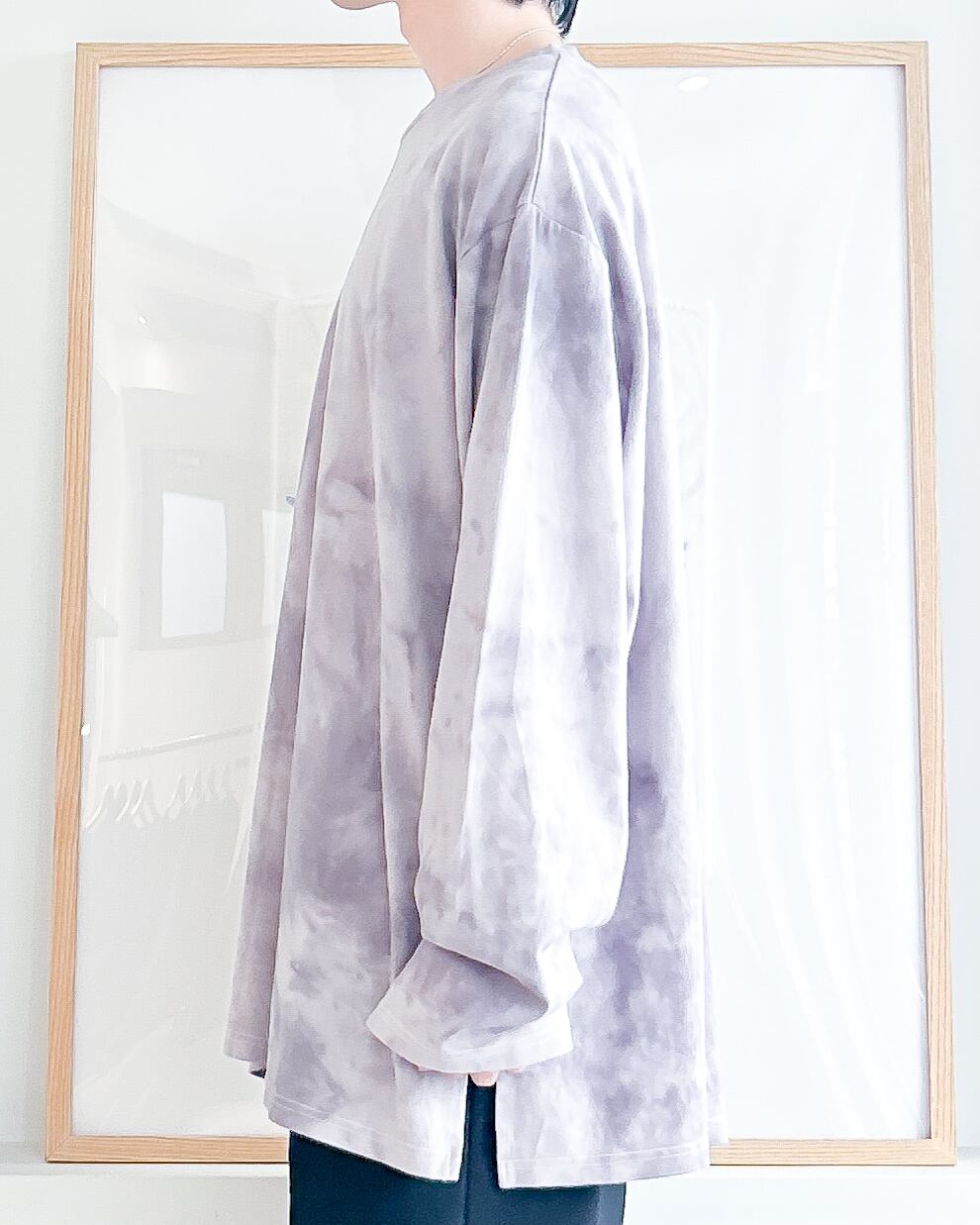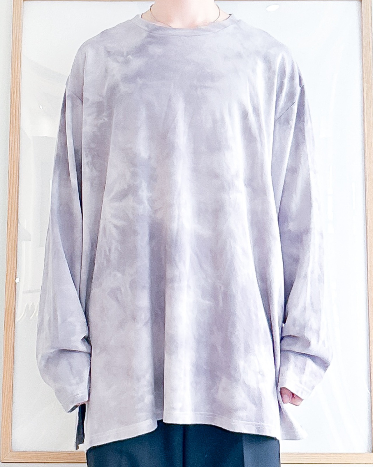 タイダイ柄とグラフィックプリントが特徴のカットソー。
