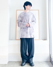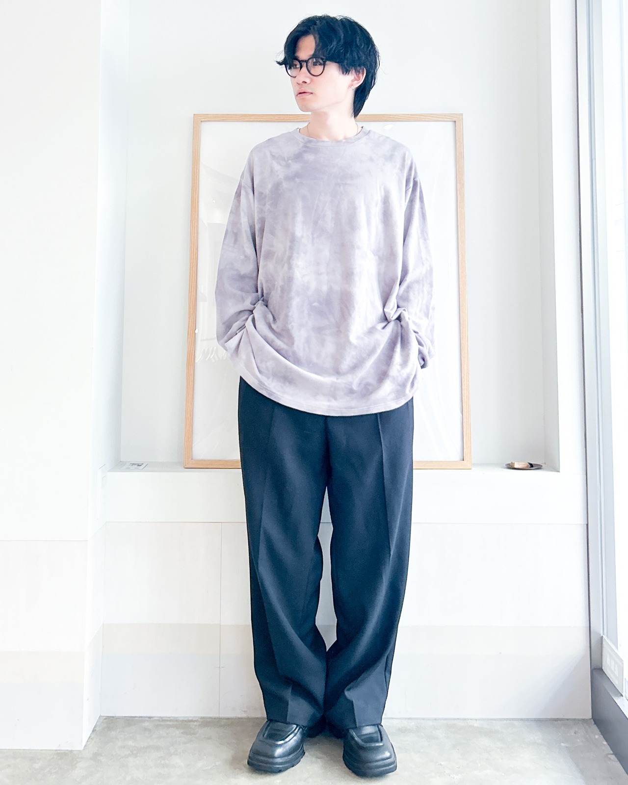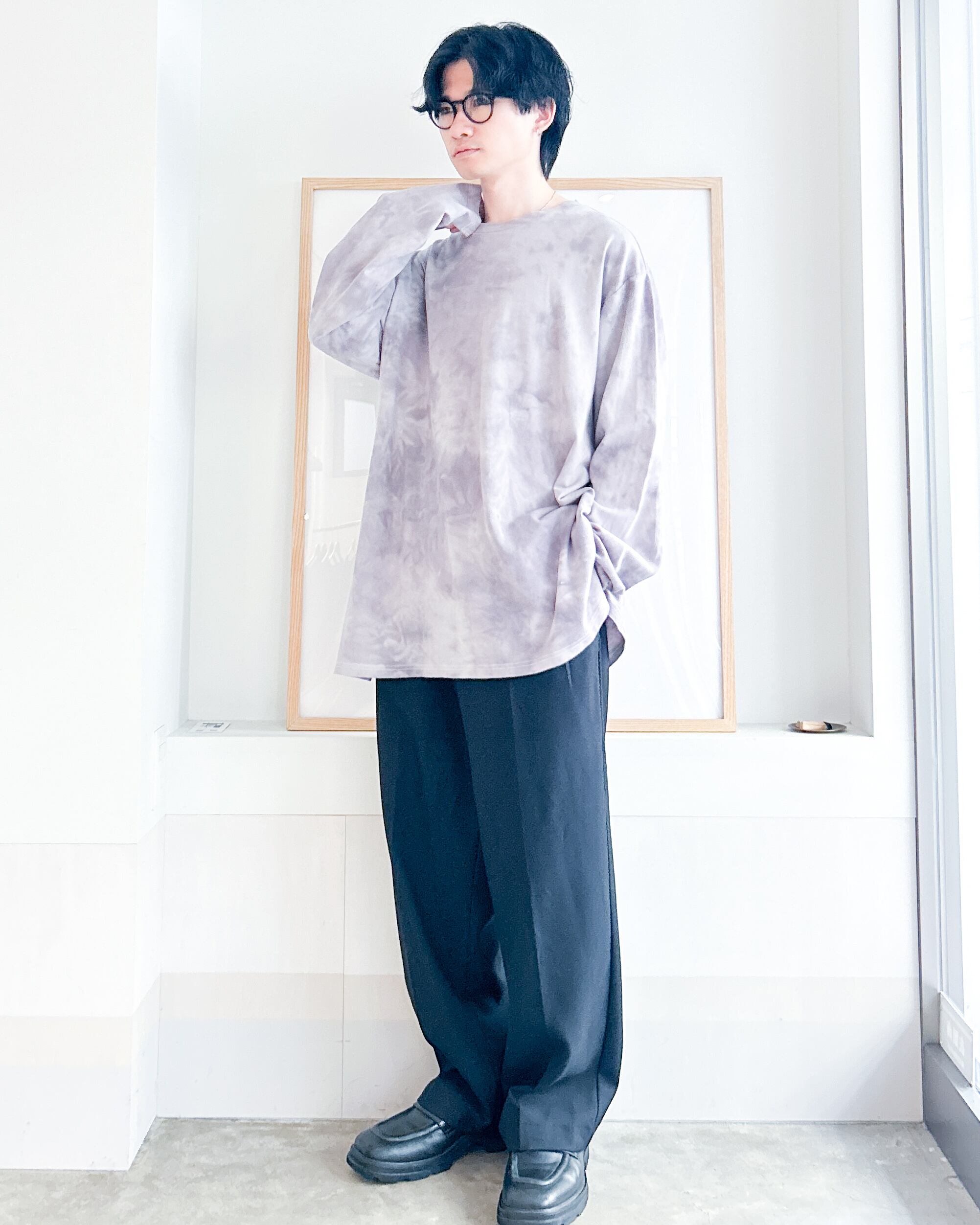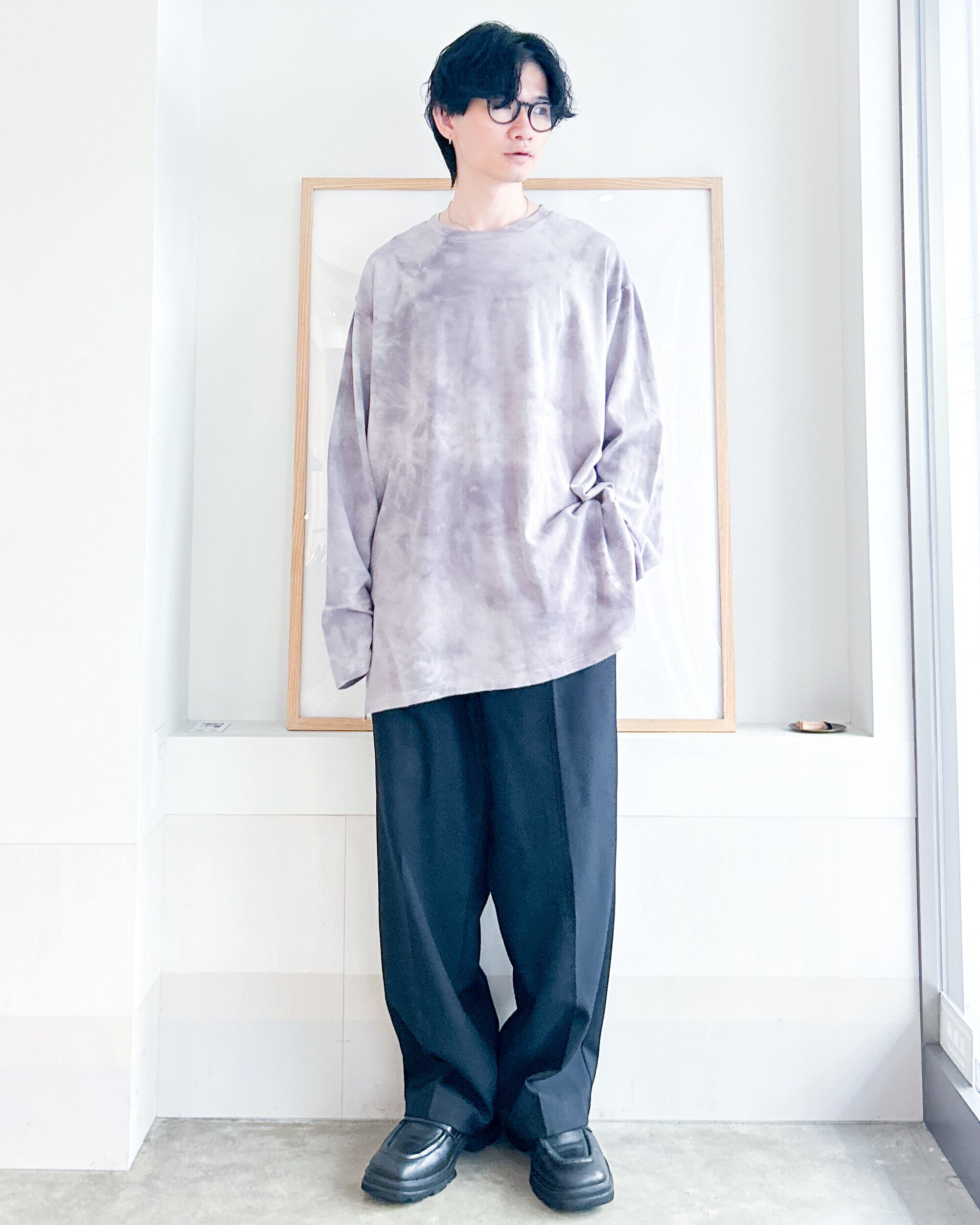 タイダイ柄とグラフィックプリントが特徴のカットソー。