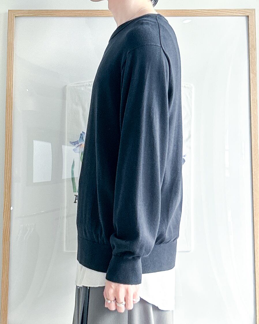 コットニットなのでチクチク感は全く無くスウェットとカットソーの間のような生地感で、ロングシーズン着用可能です。