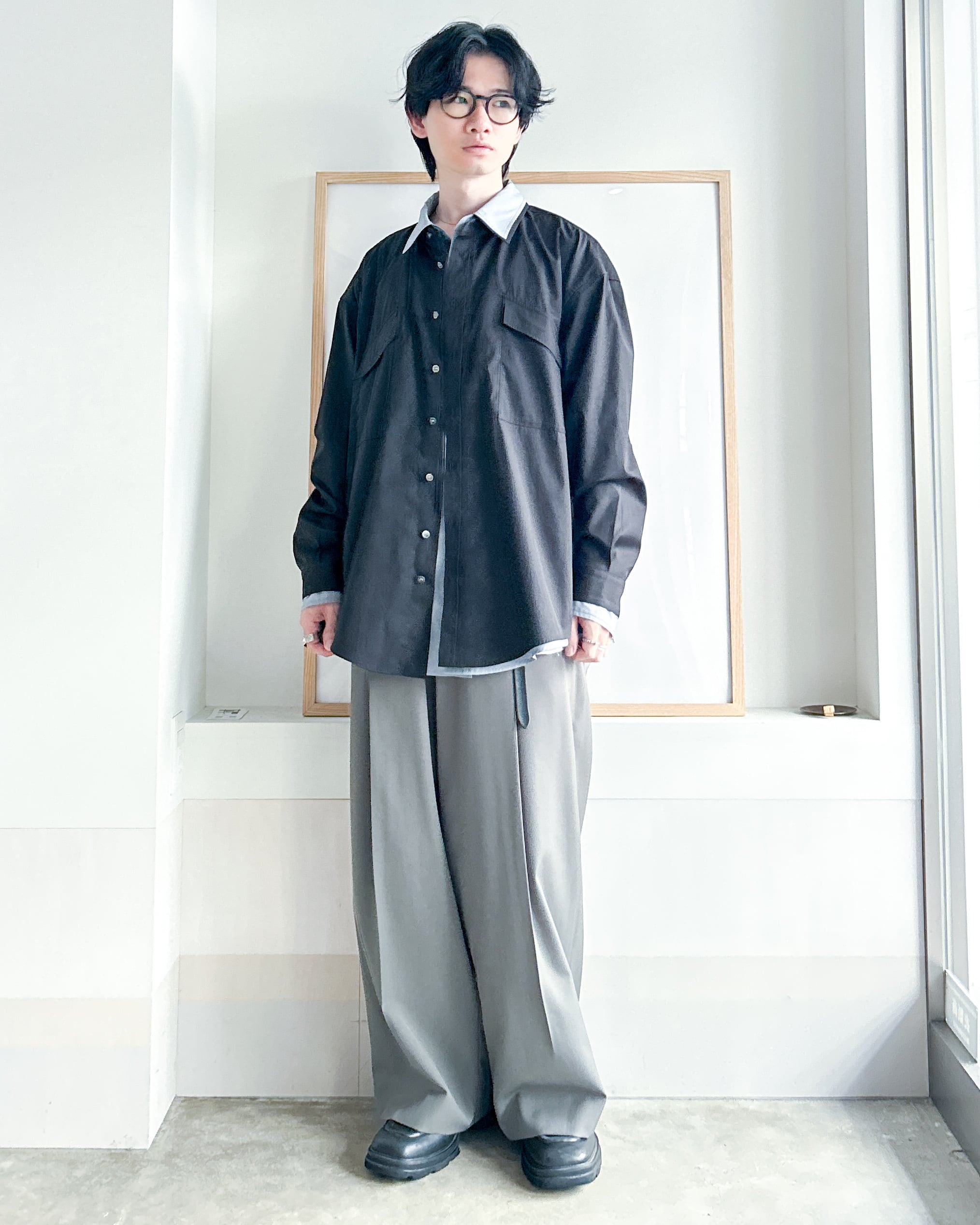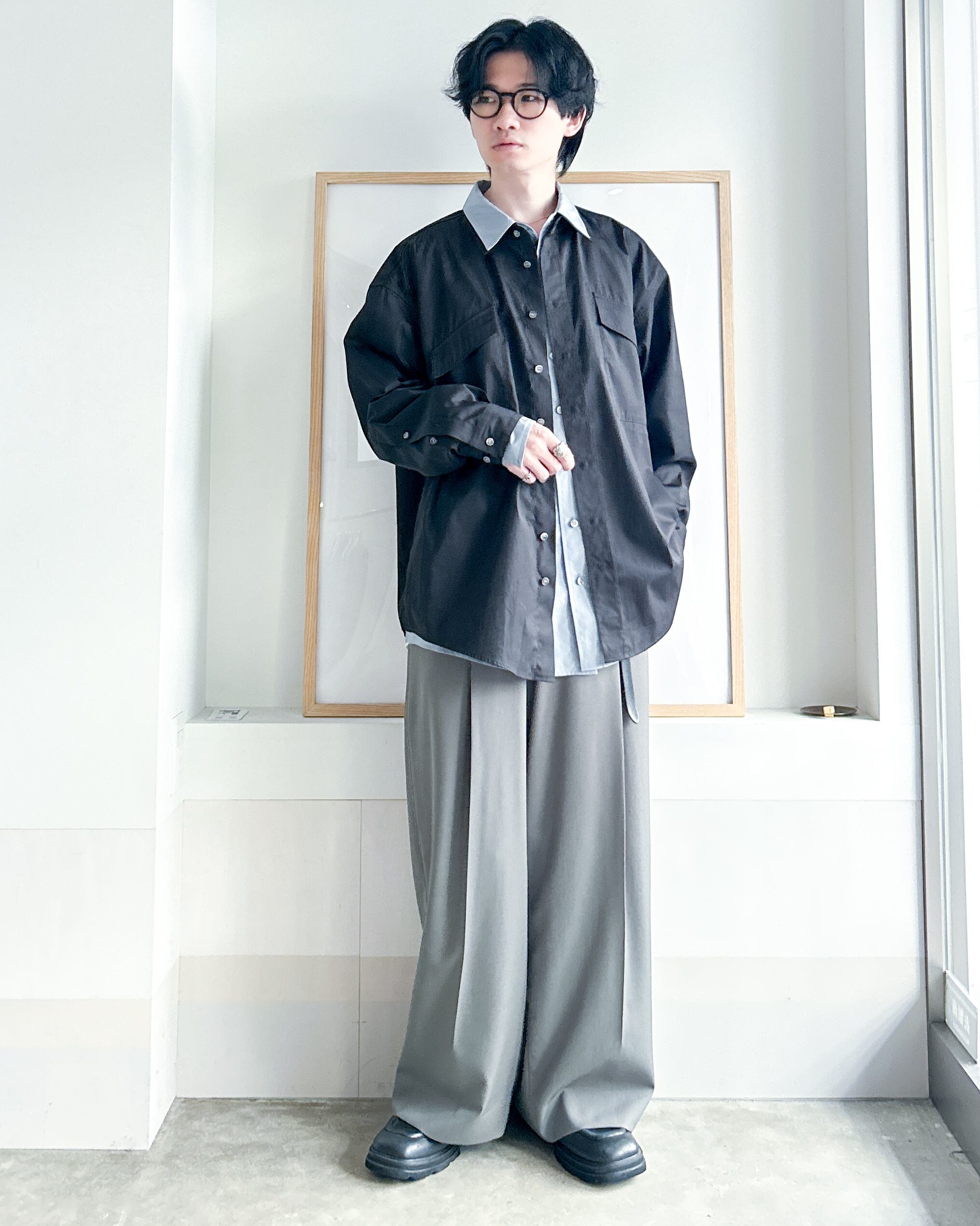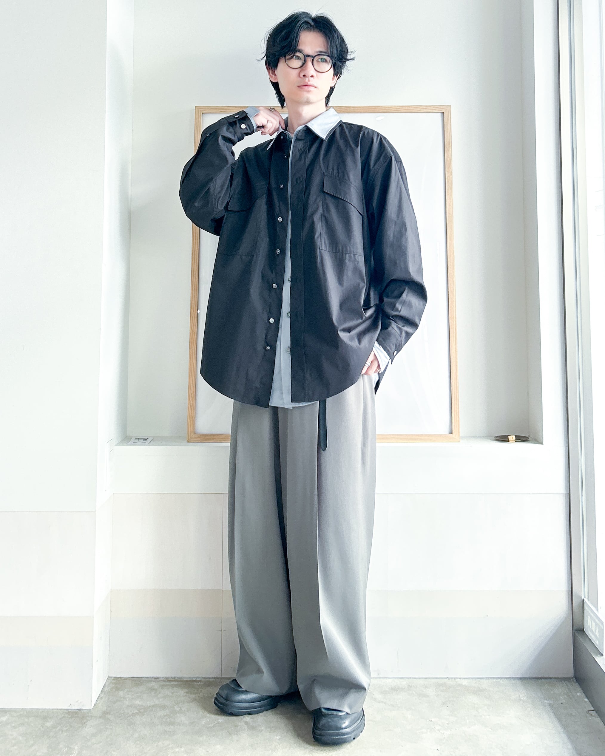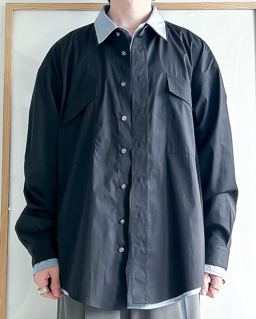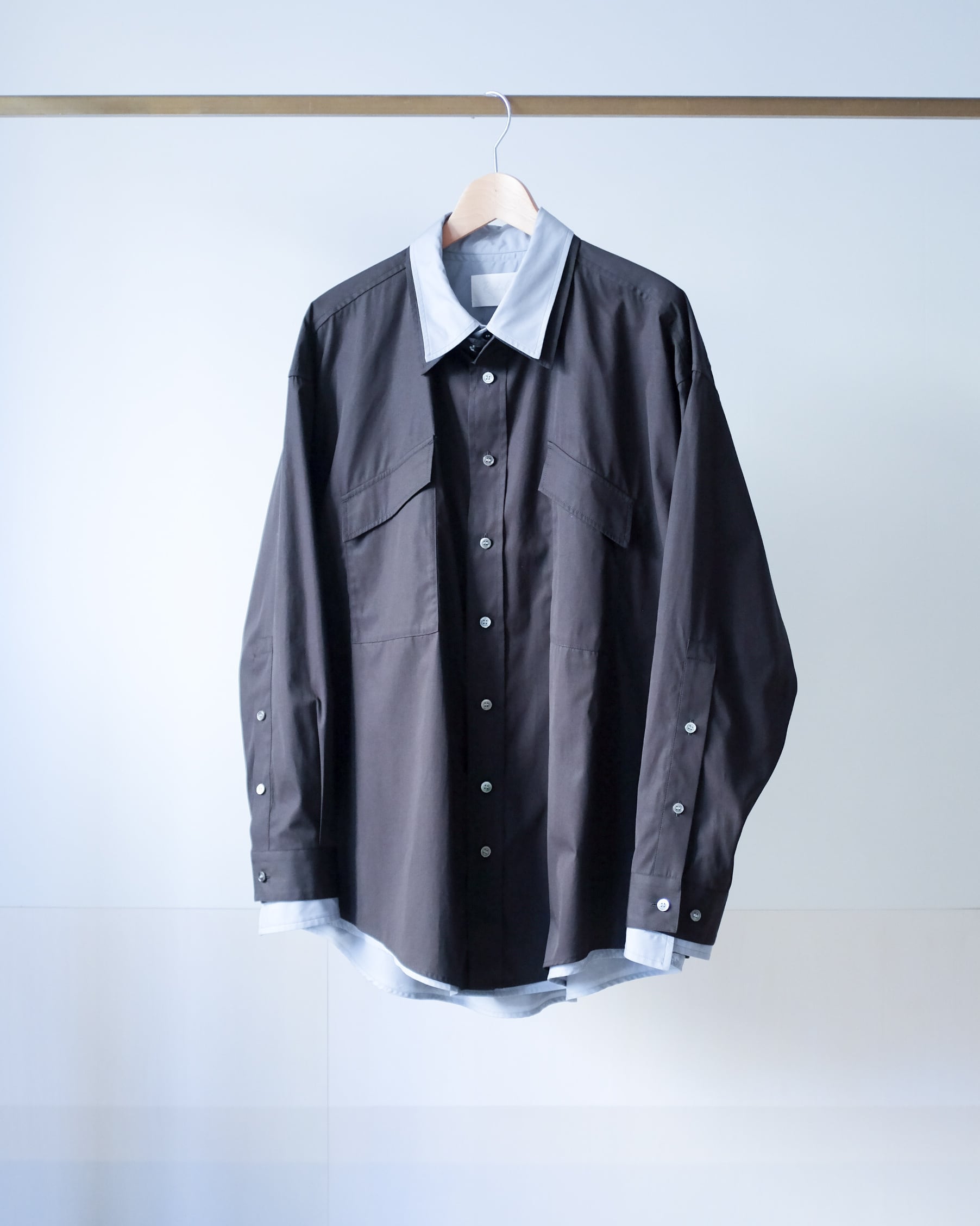 ポケット・カフスデザインなど各々異なるディテールのシャツをドッキング&レイヤードさせたデザインがポイント。