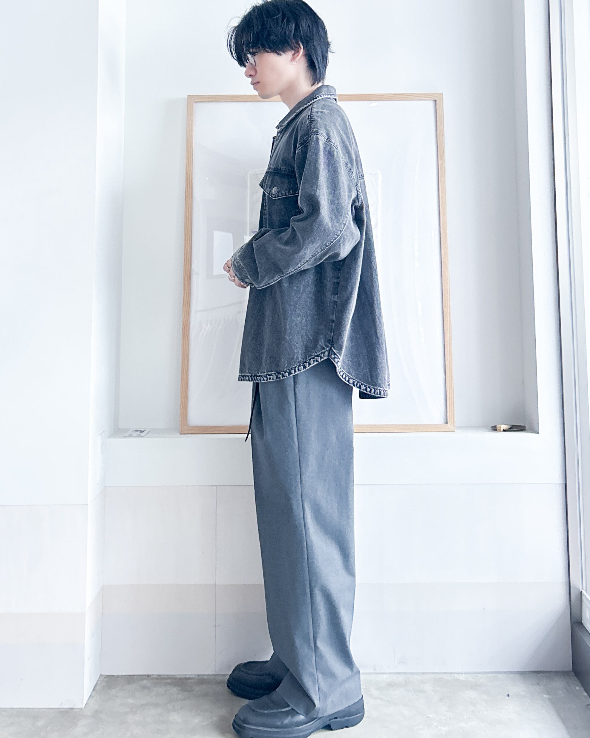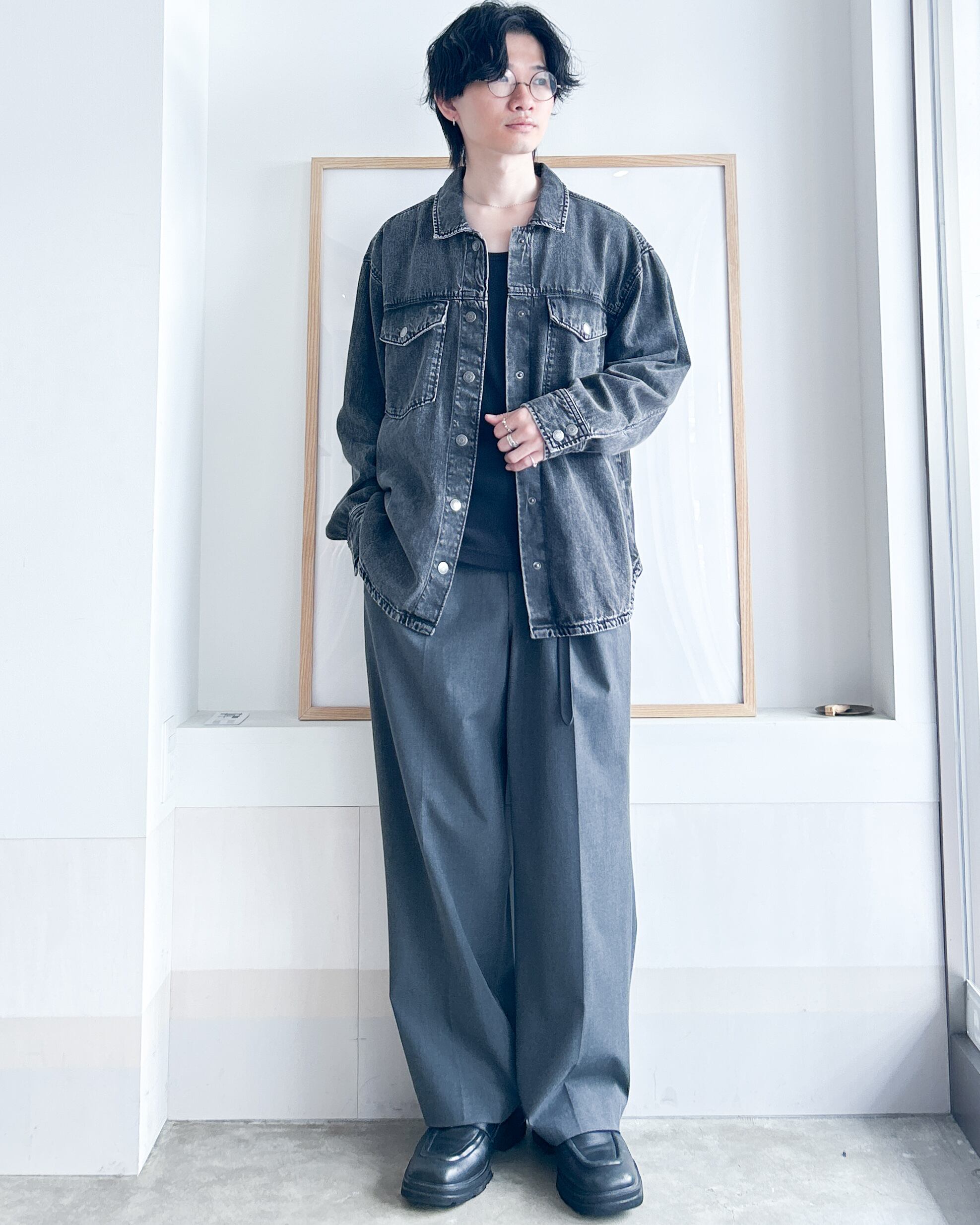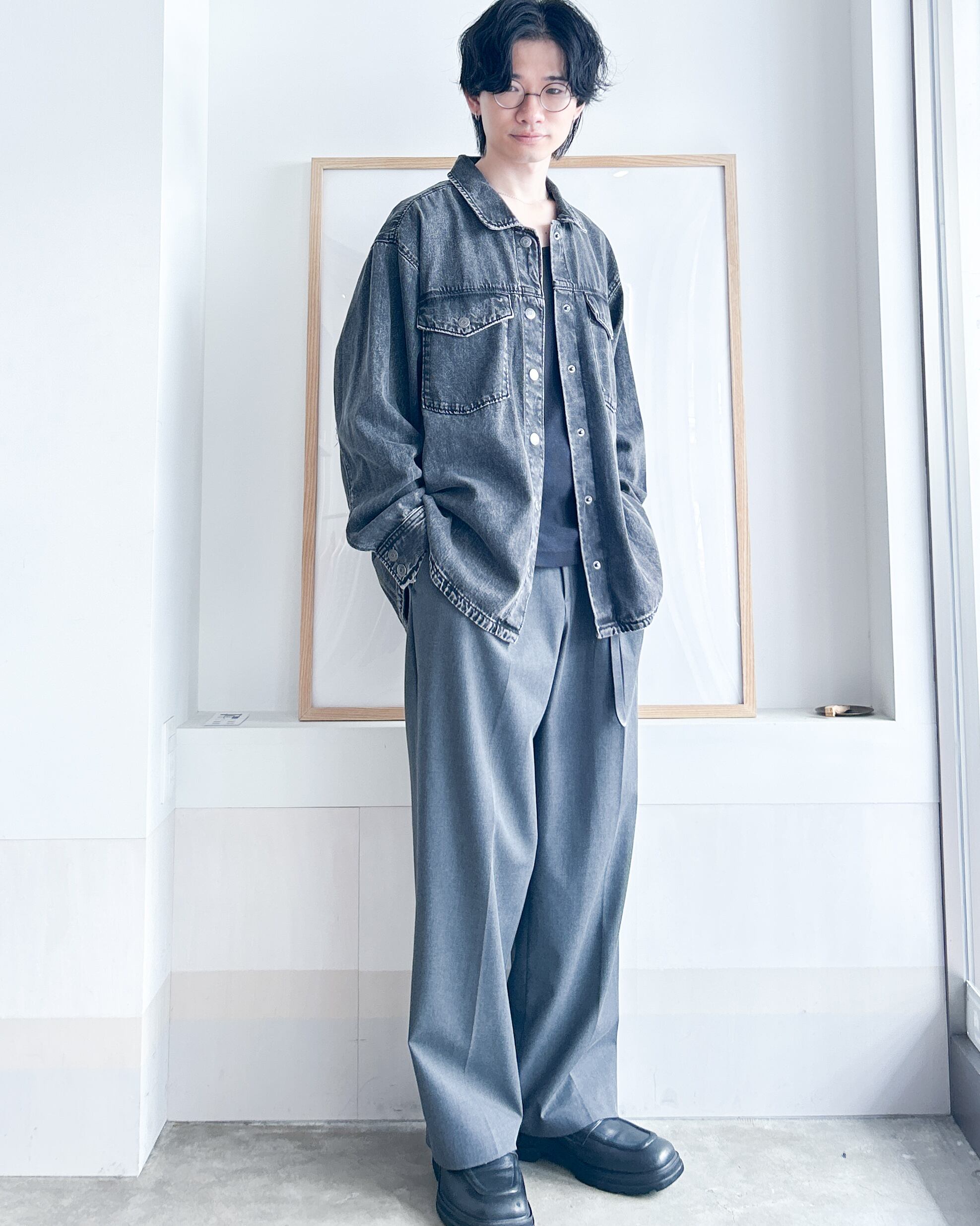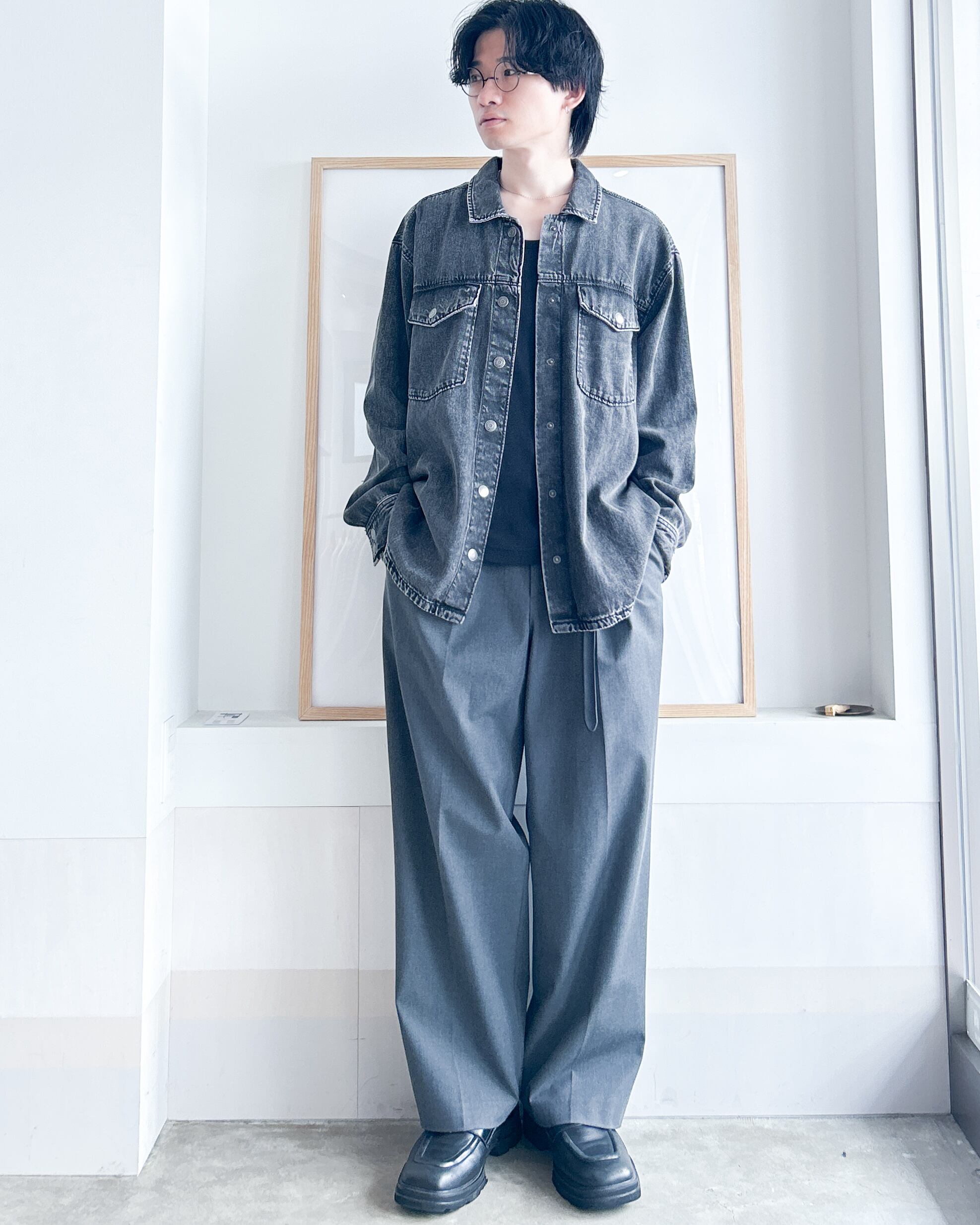 デニムらしい風合いがありつつ、落ち着いたググレーの色味でカジュアルすぎずに着こなすことが可能です。
