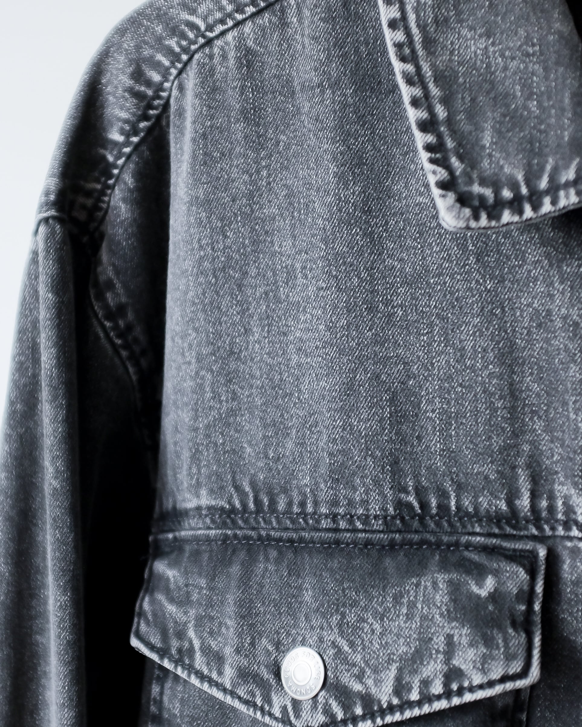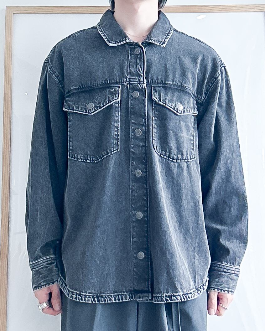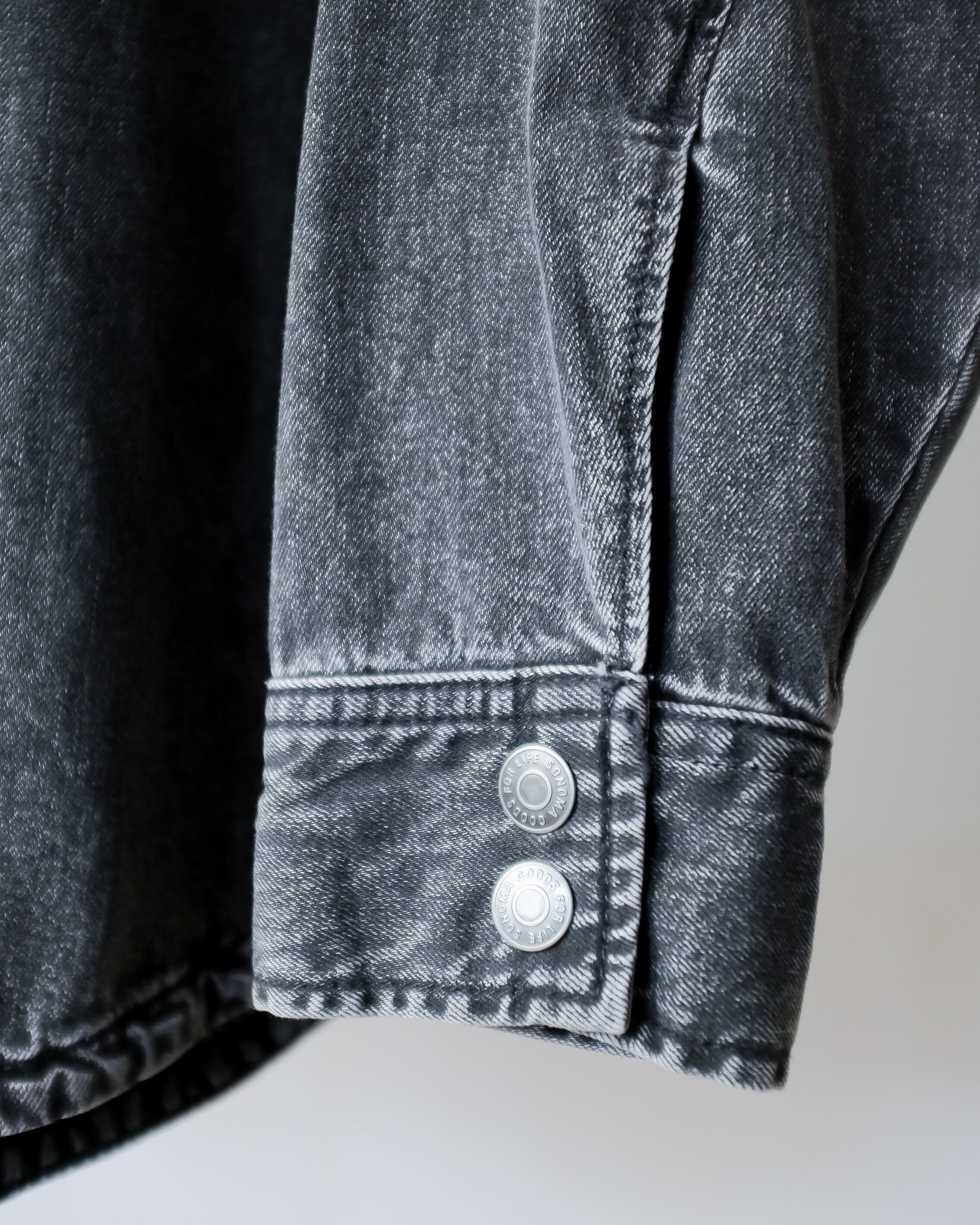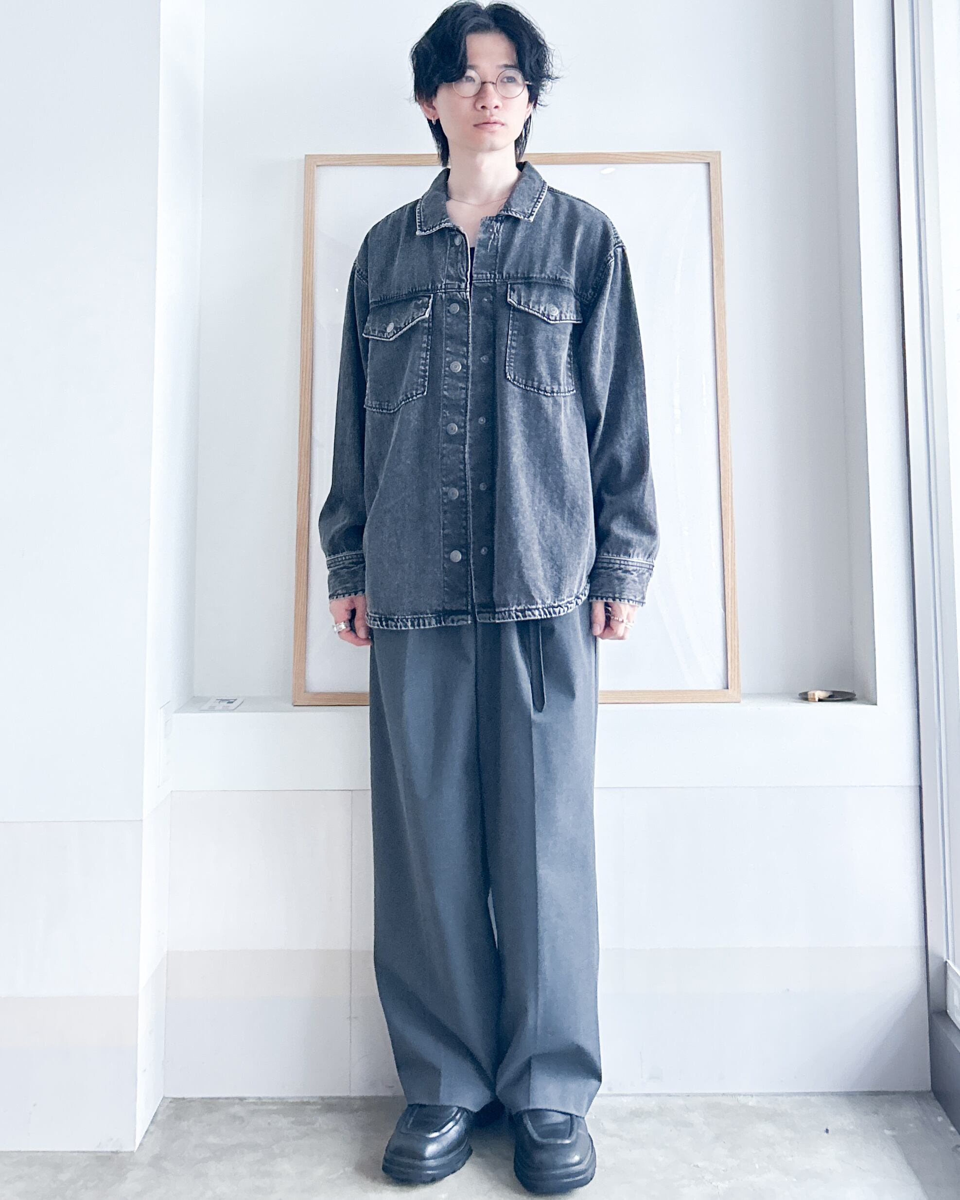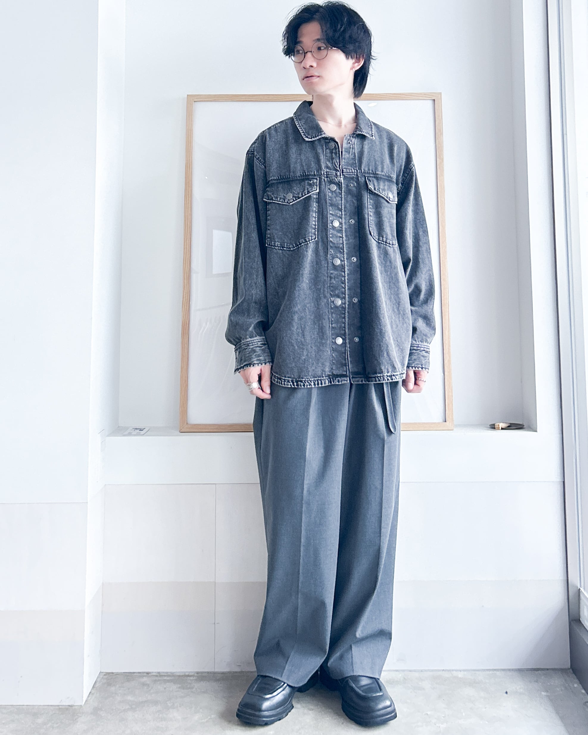 デニムらしい風合いがありつつ、落ち着いたググレーの色味でカジュアルすぎずに着こなすことが可能です。