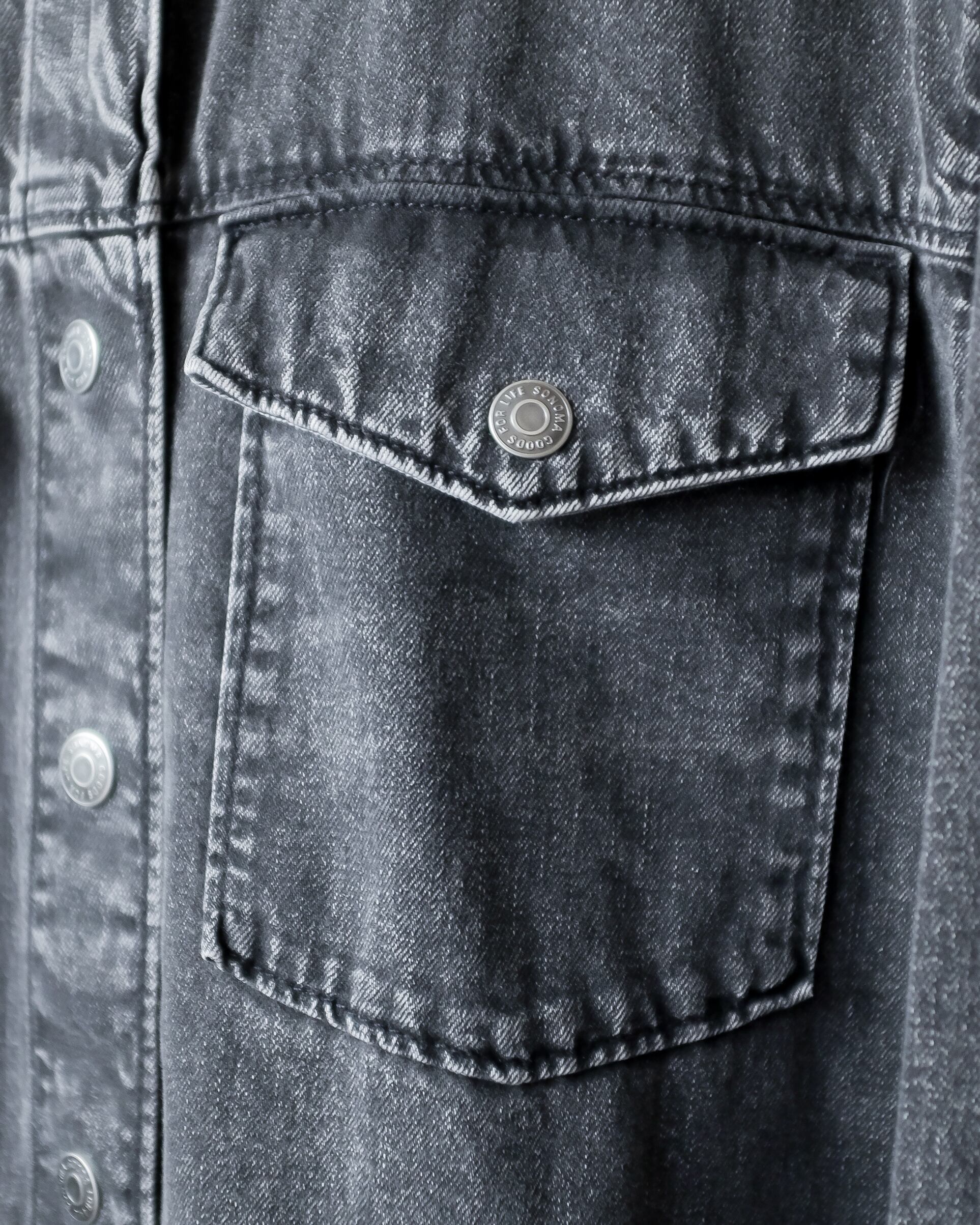 がっしりしたデニムを使用したレギュラーカラーシャツ。