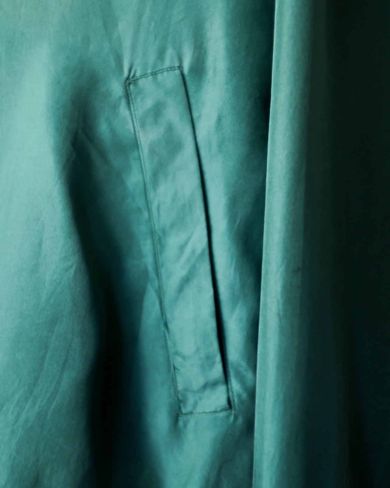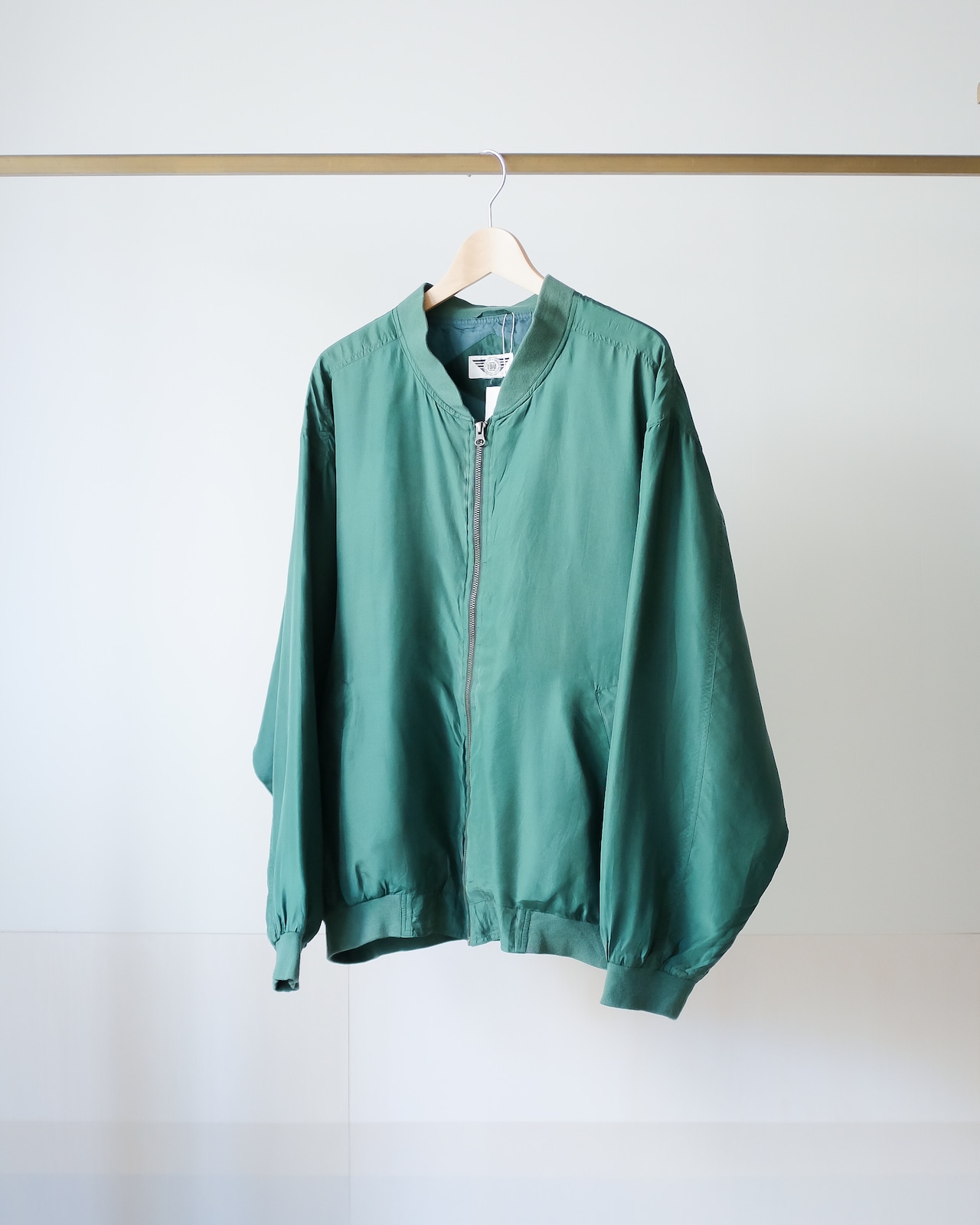 シルク素材で高級感のある艶と落ち感があるブルゾン。