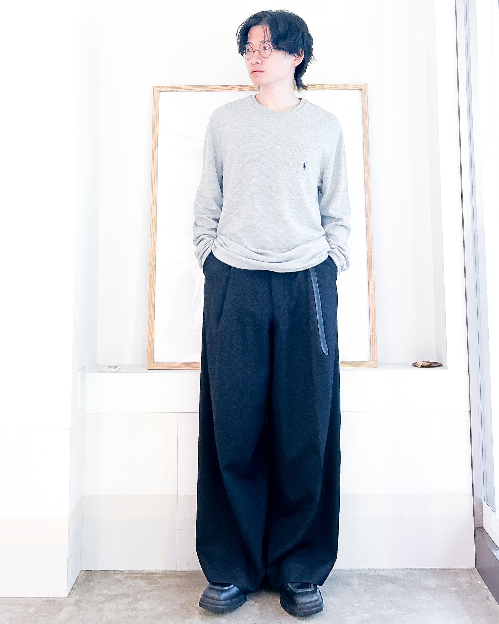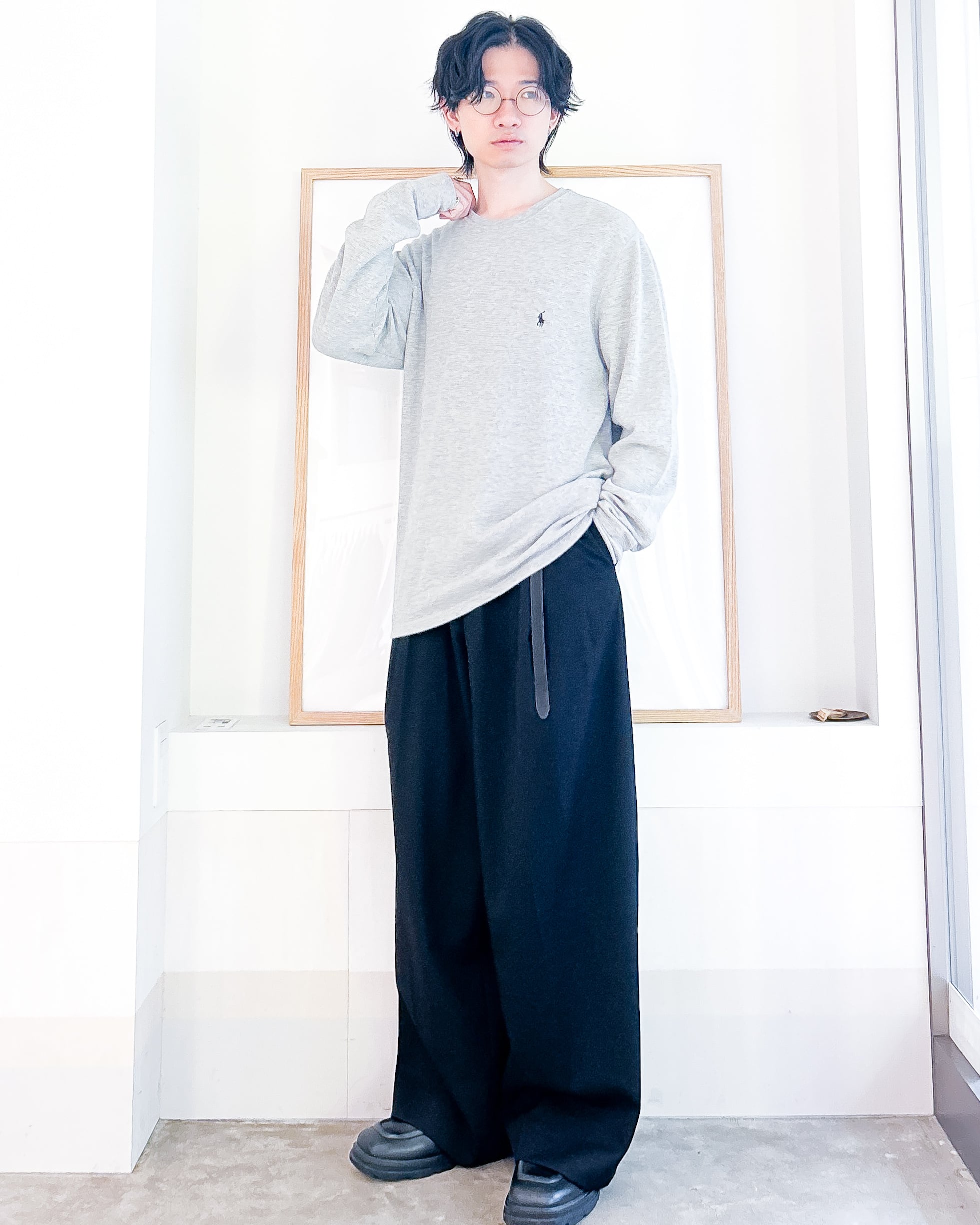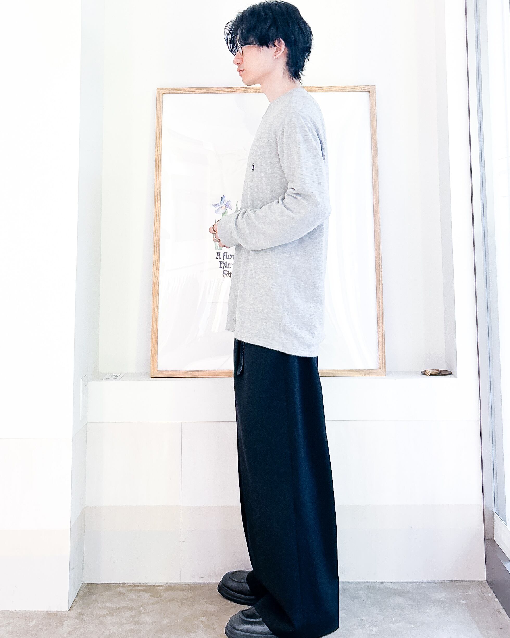 ロンTとして一枚で着るも良し、シャツやジャケット、コートのインナーとして着るも良しの万能アイテムです。