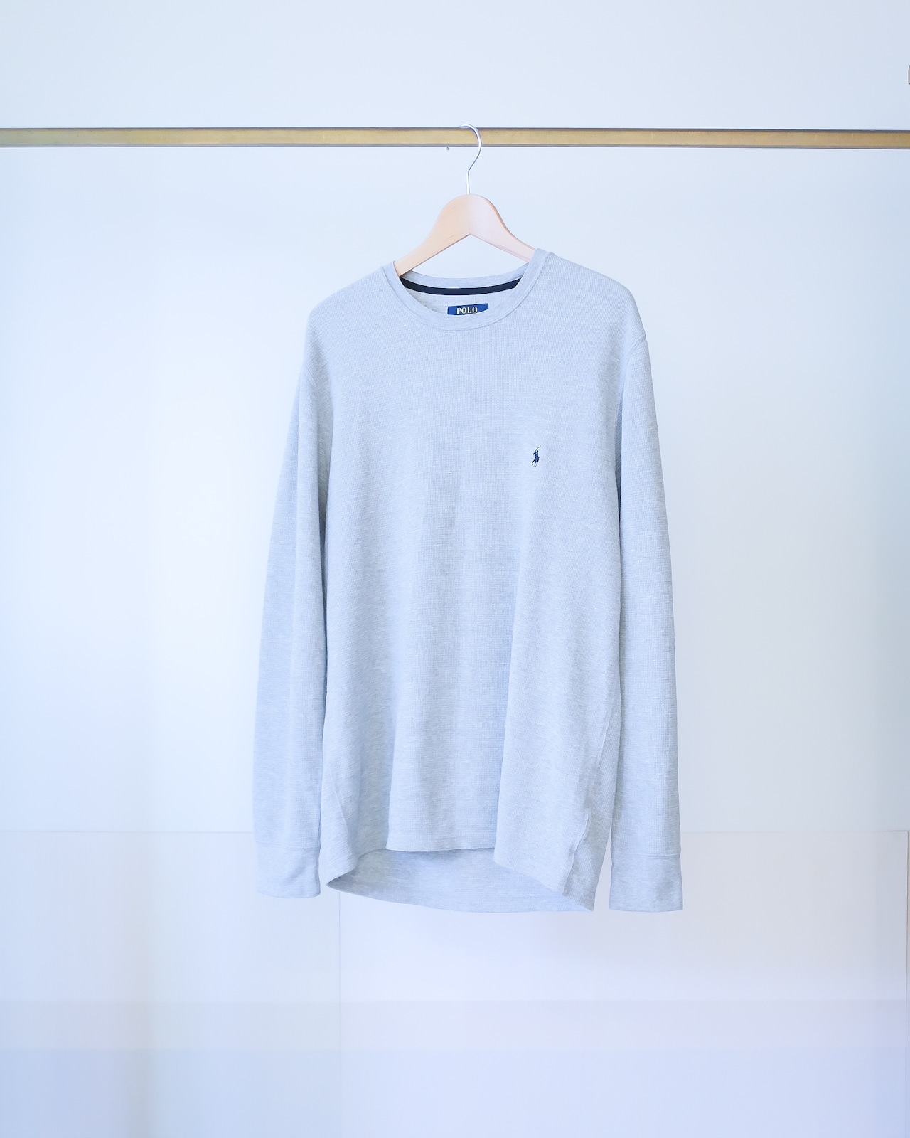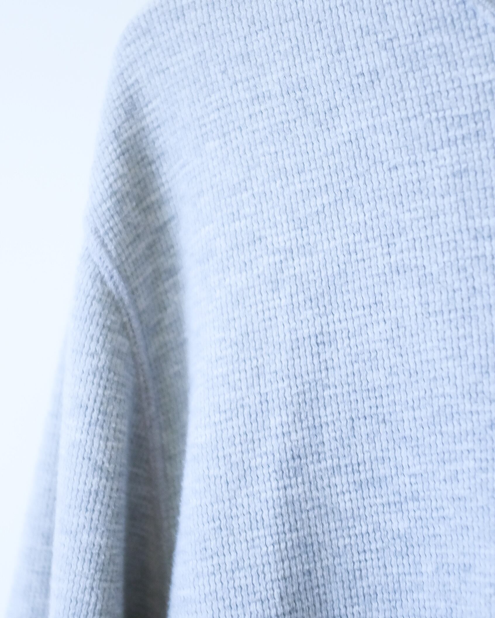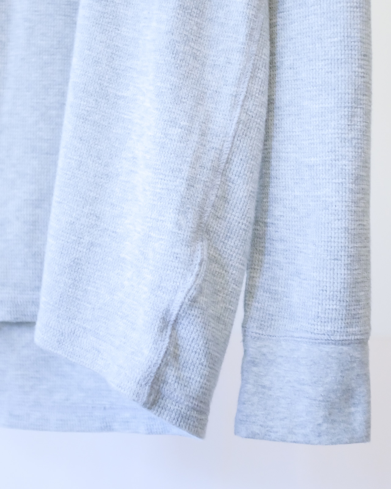 ボディはワッフル生地、袖はジャージー生地の切り替えになっていて、さりげなくアクセントを加えてくれます。