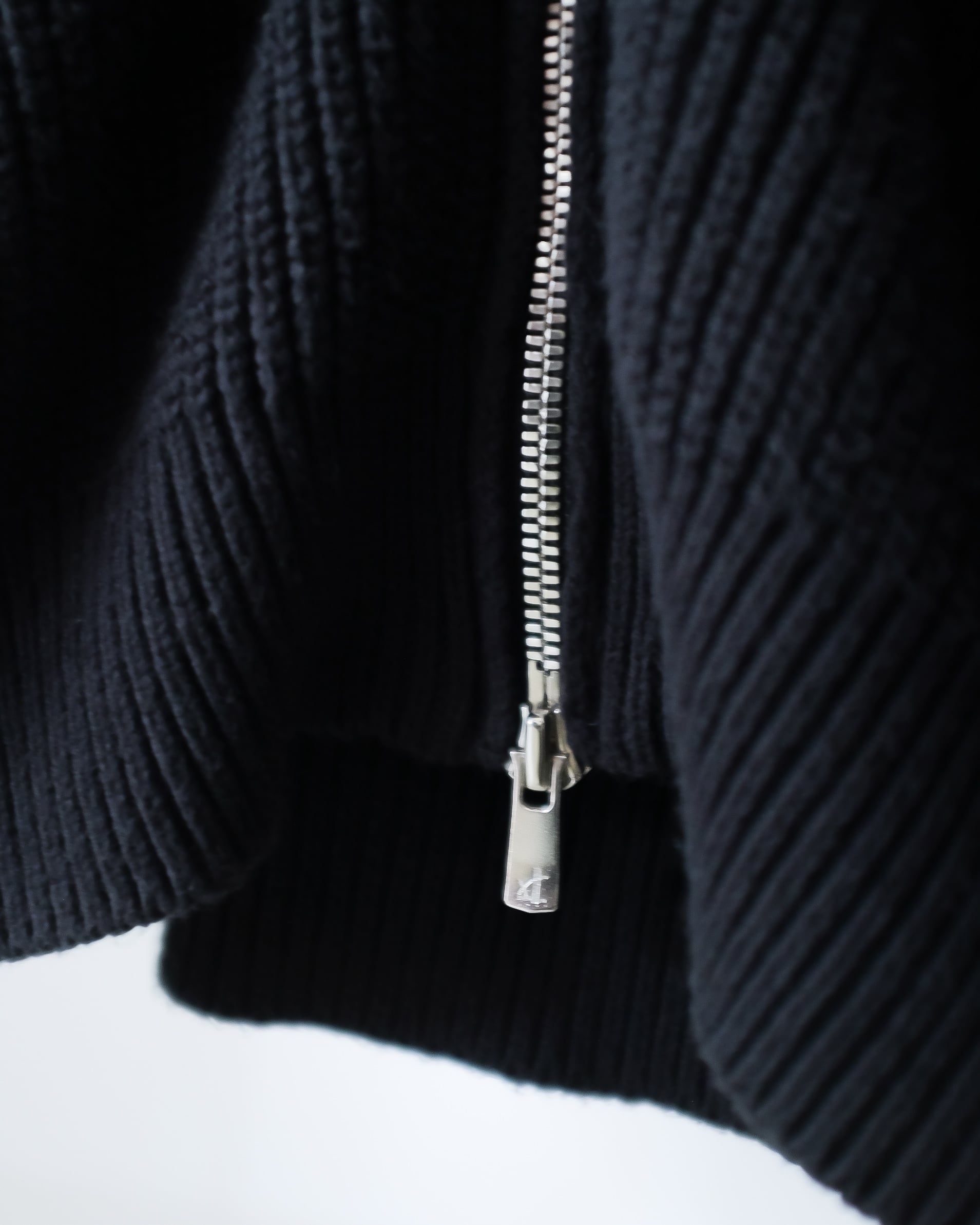 特に今回のようなシンプルなドライバーズニットだからこそ、このエクセラジップの魅力を最大限引き立てています。