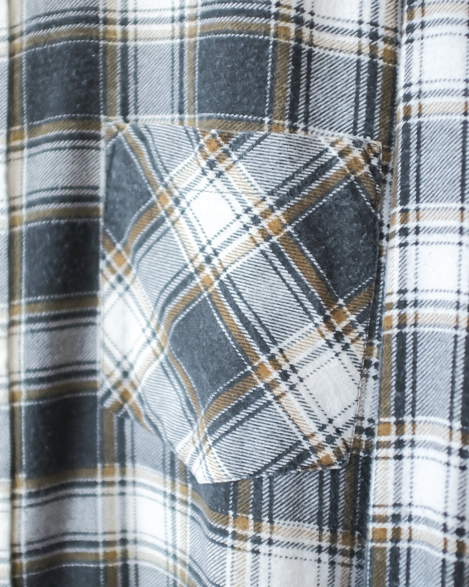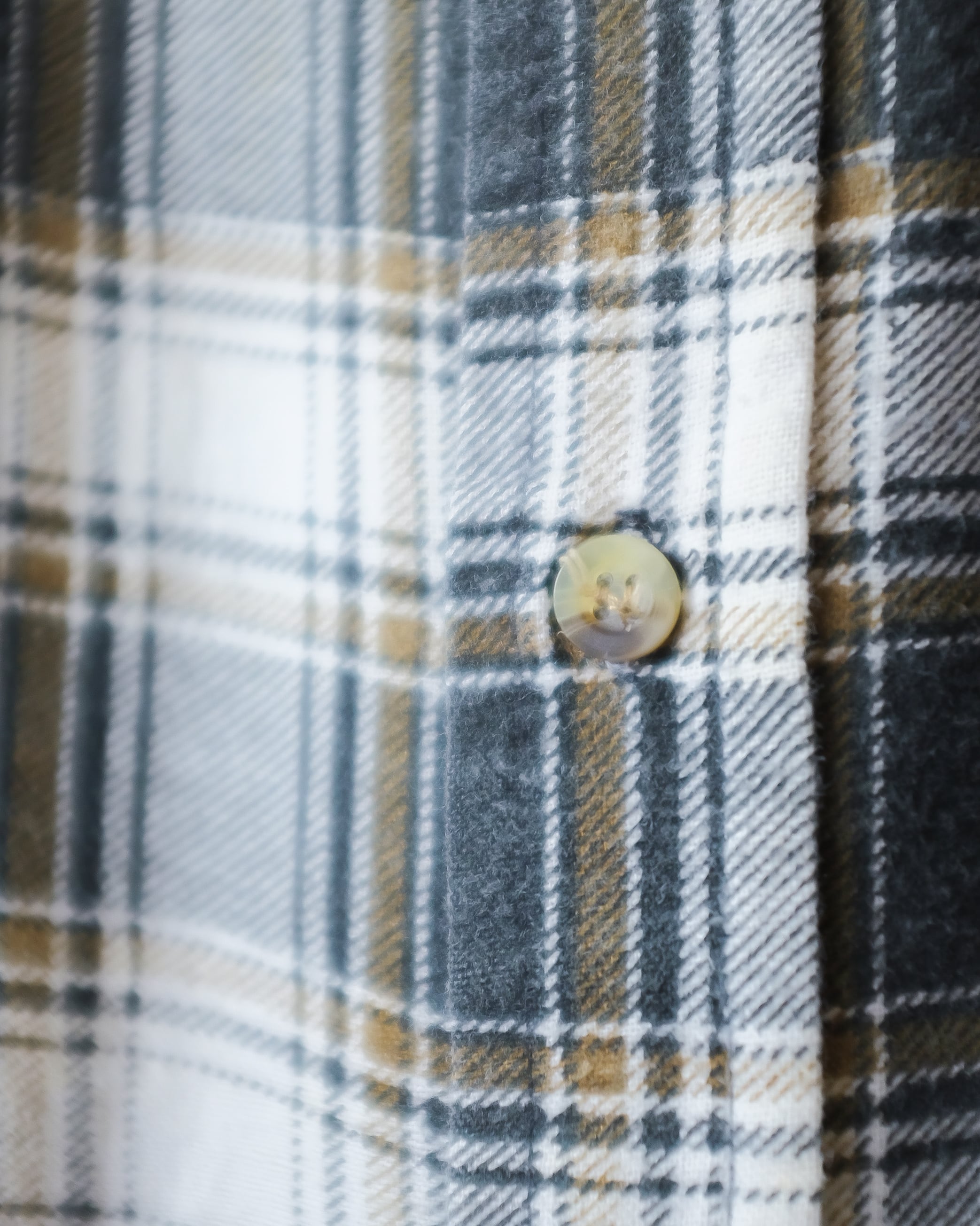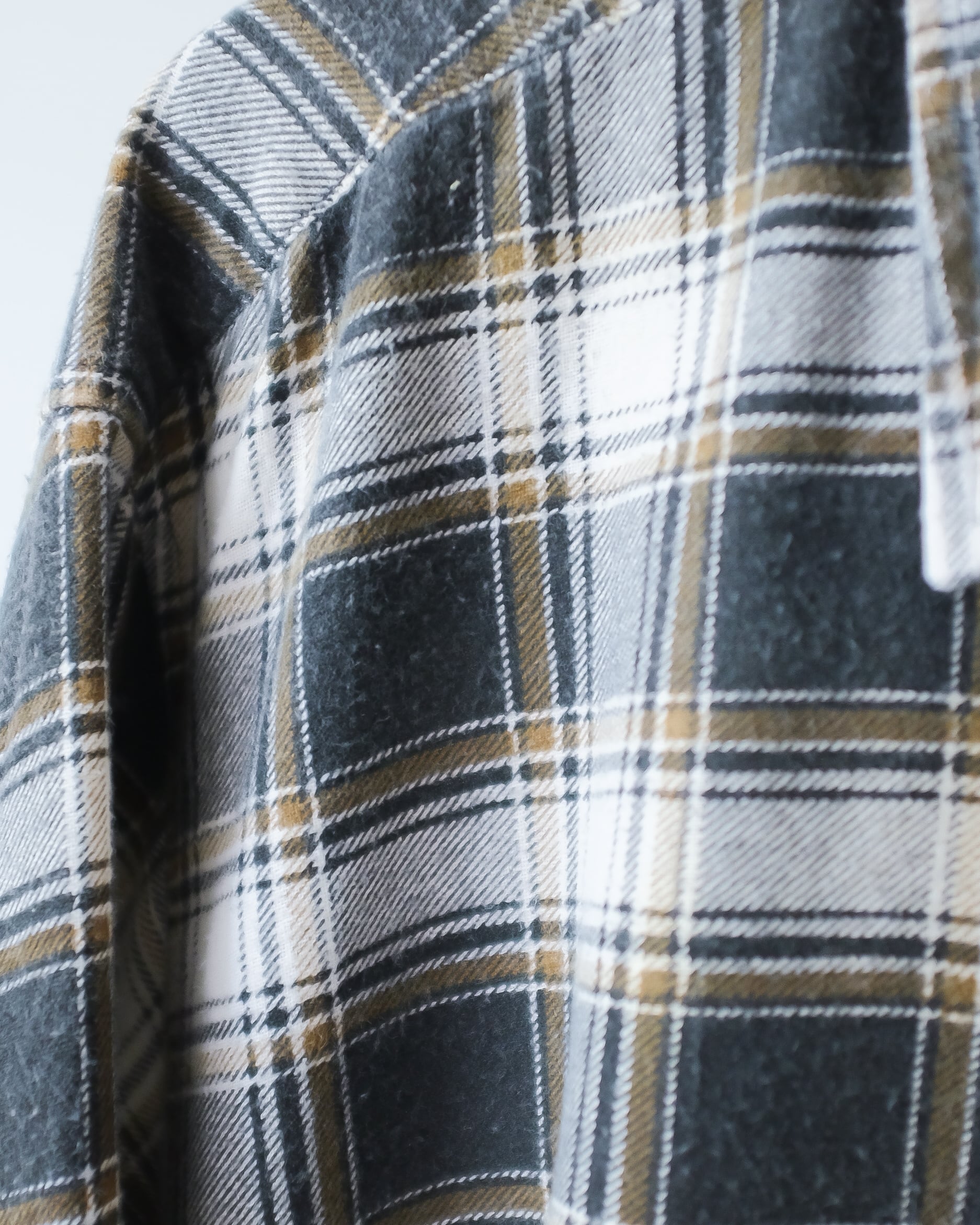 柔らかいトーンのグラデーションで表現されたチェック柄が特徴的なシャツ。