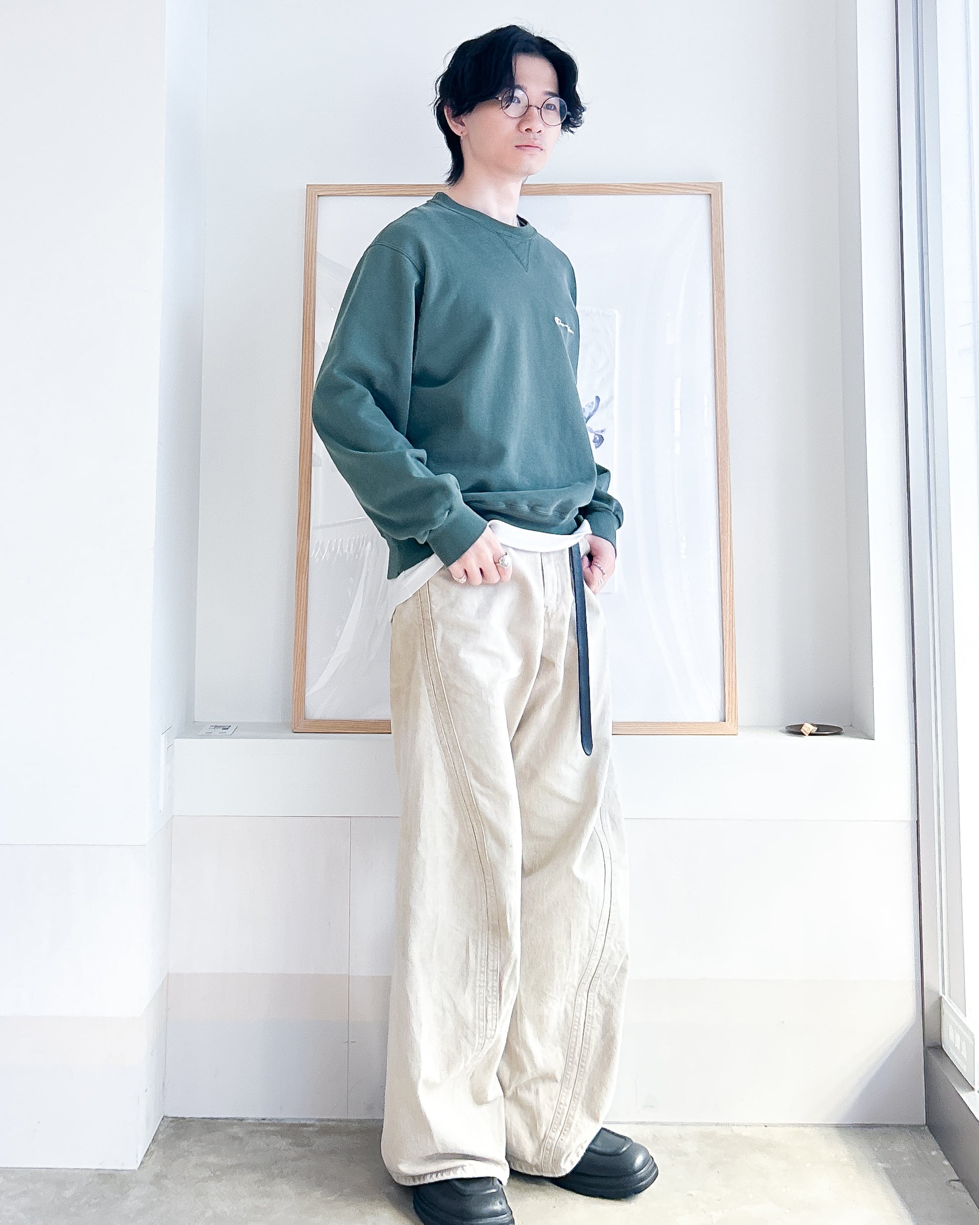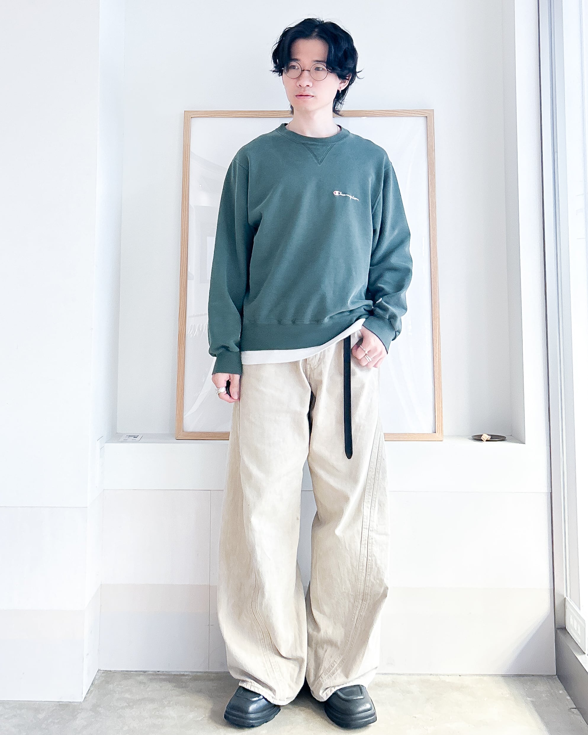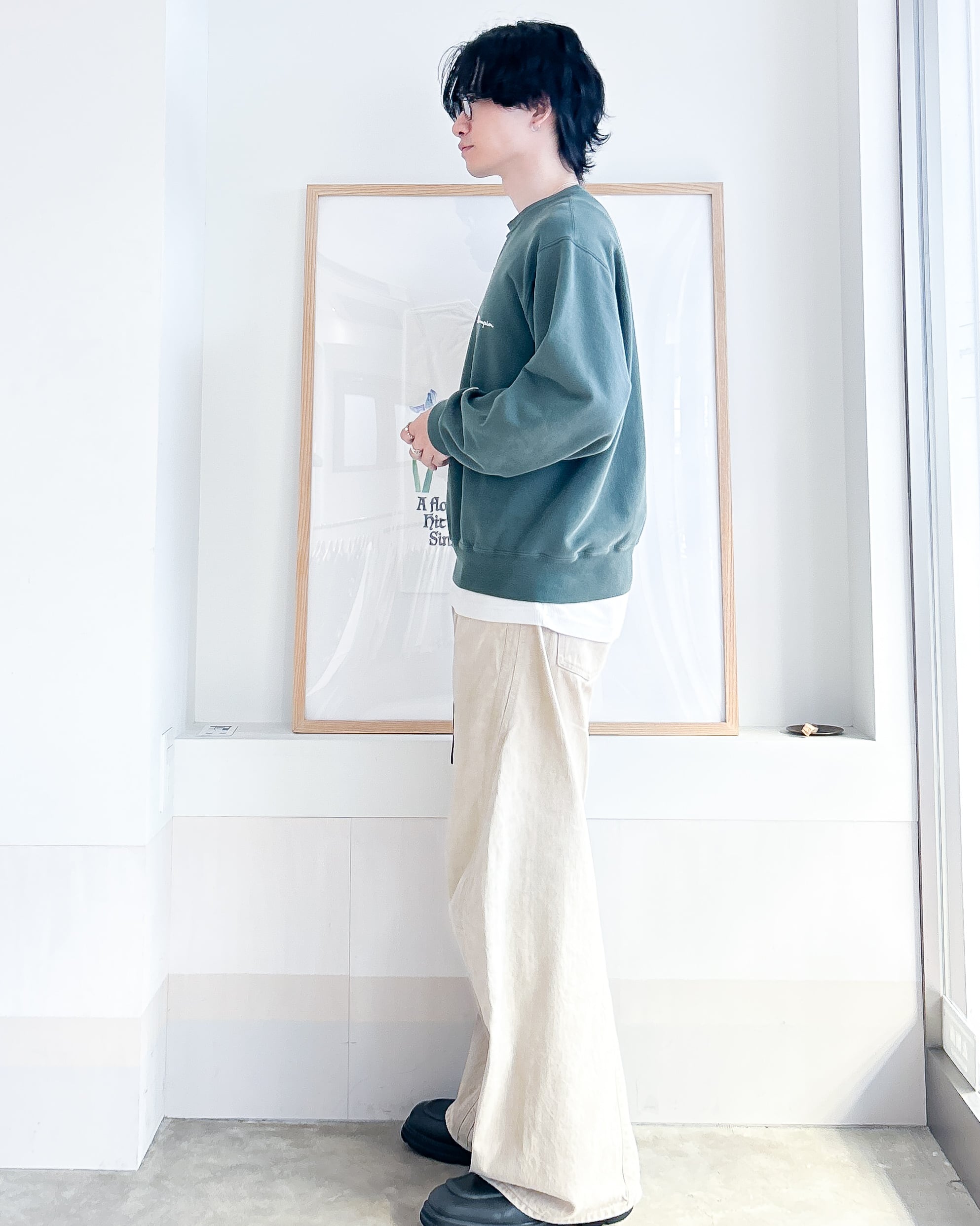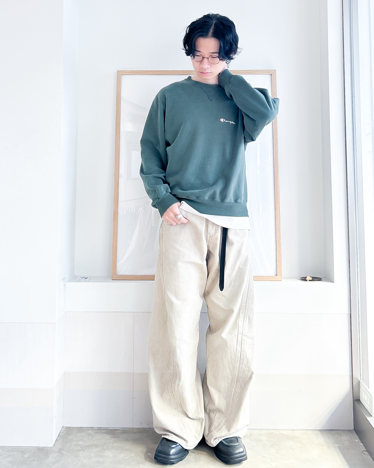 しっかりしたスウェット生地が経年変化で柔らかく馴染んでいて、古着らしい雰囲気と着心地の良さが両立されています。
