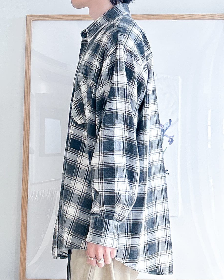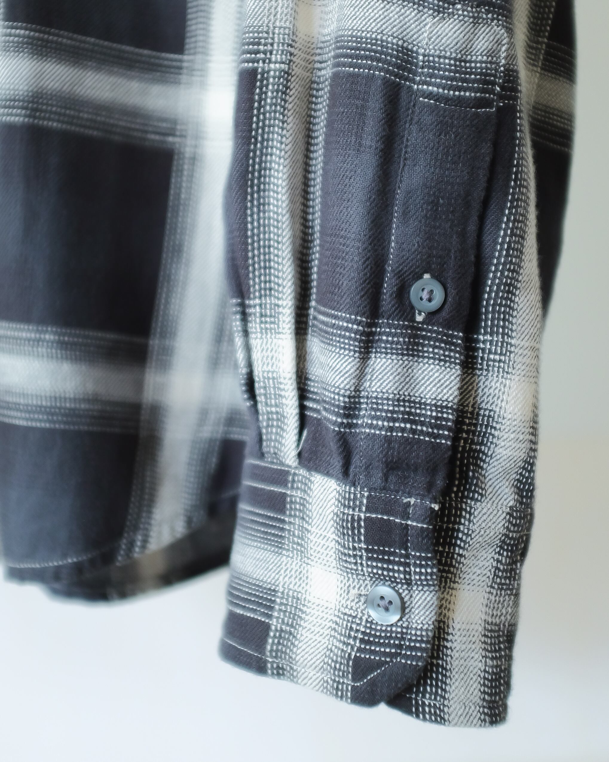 グラデーションで表現されたチェック柄が特徴的なシャツ。