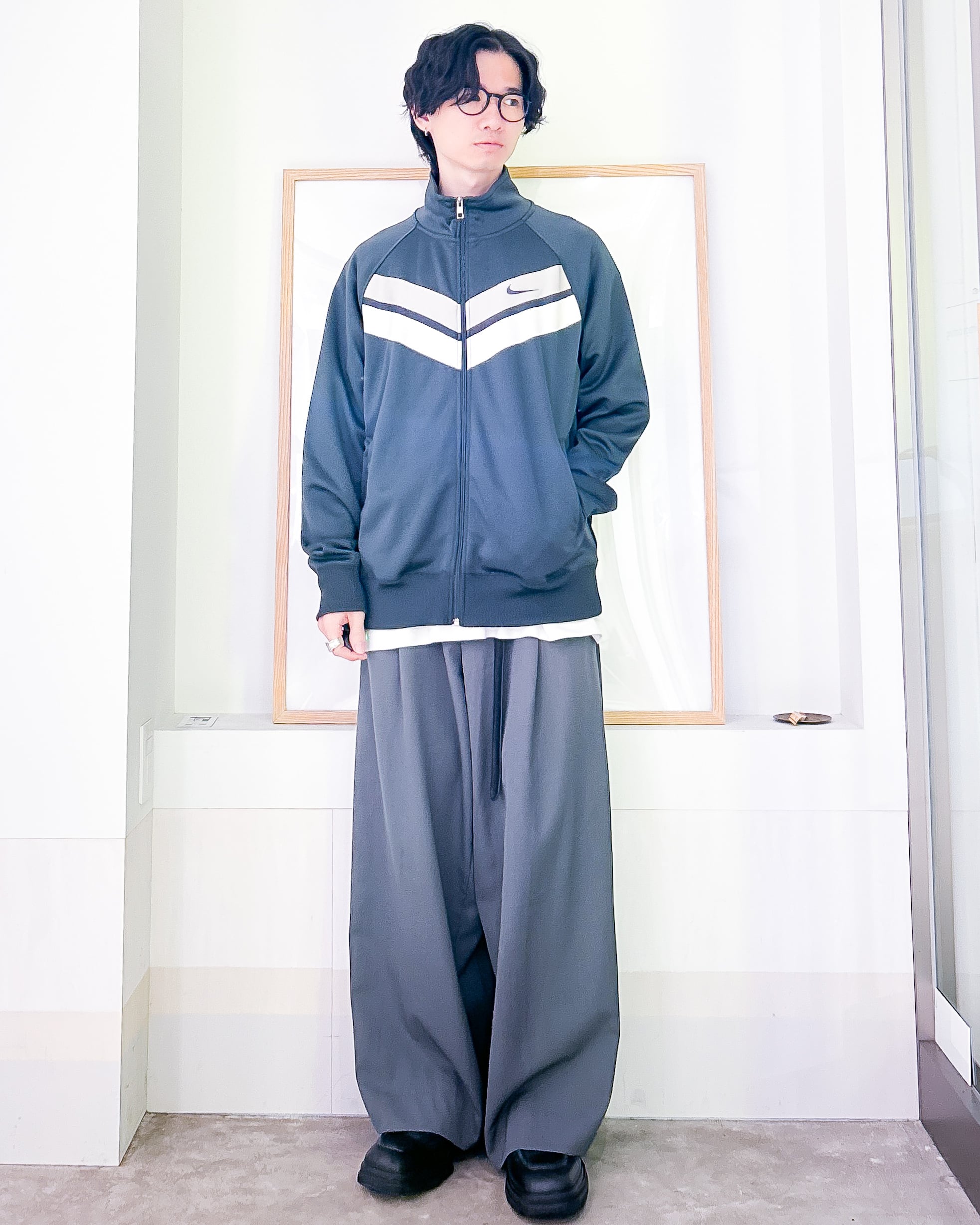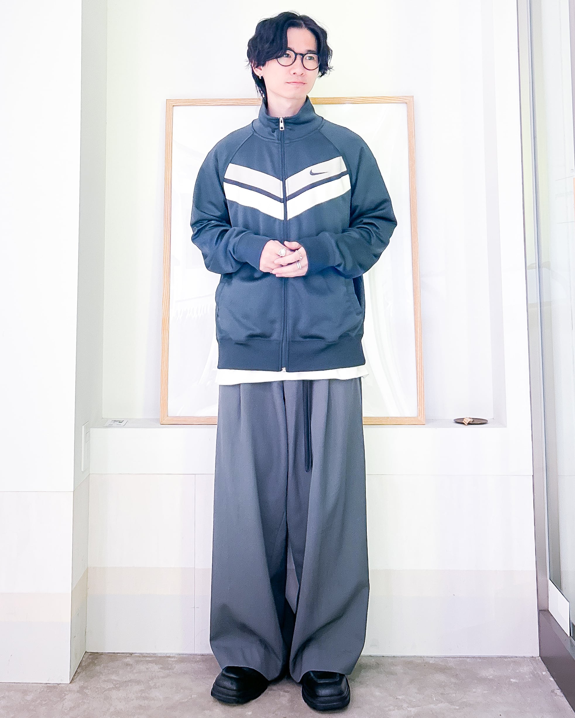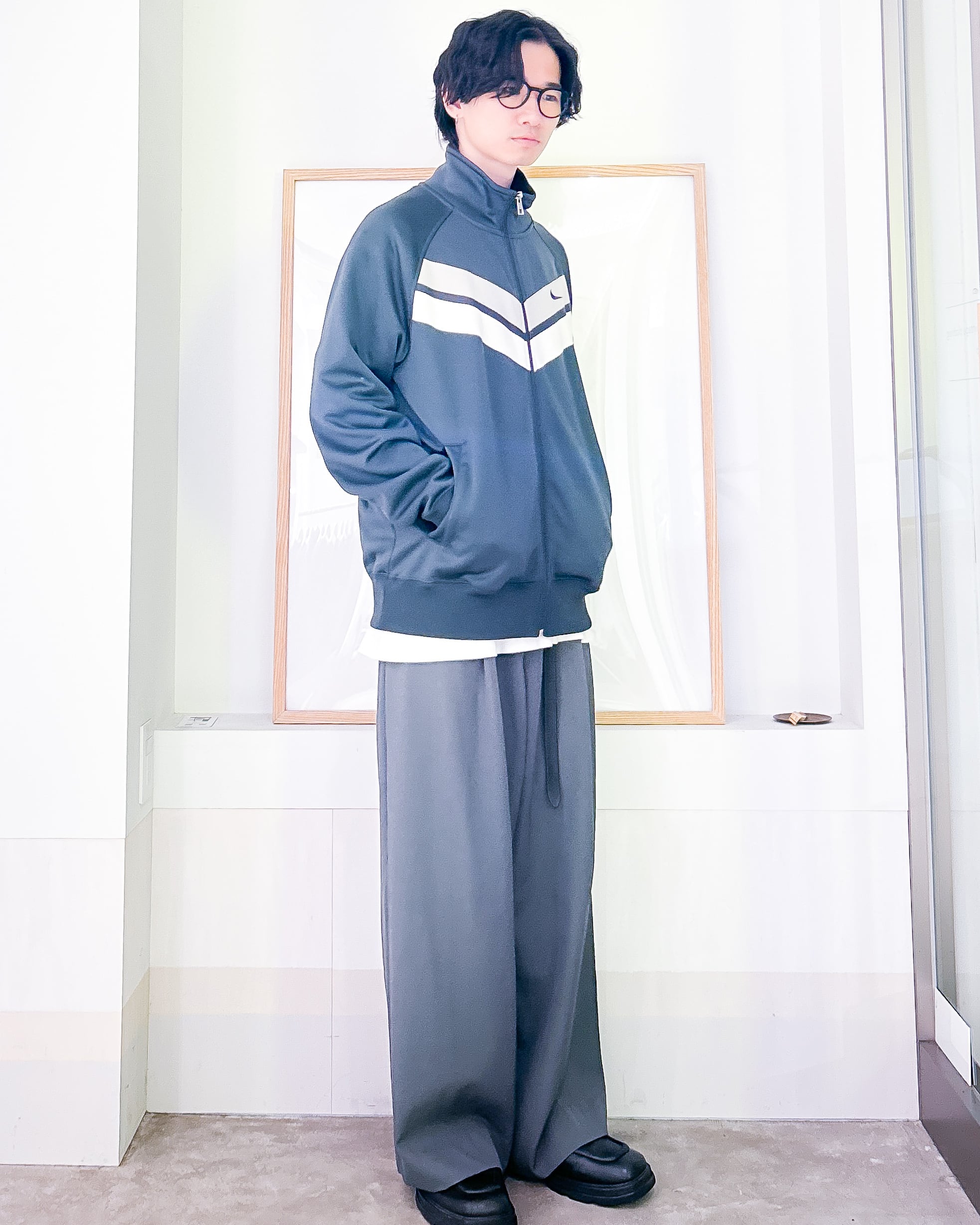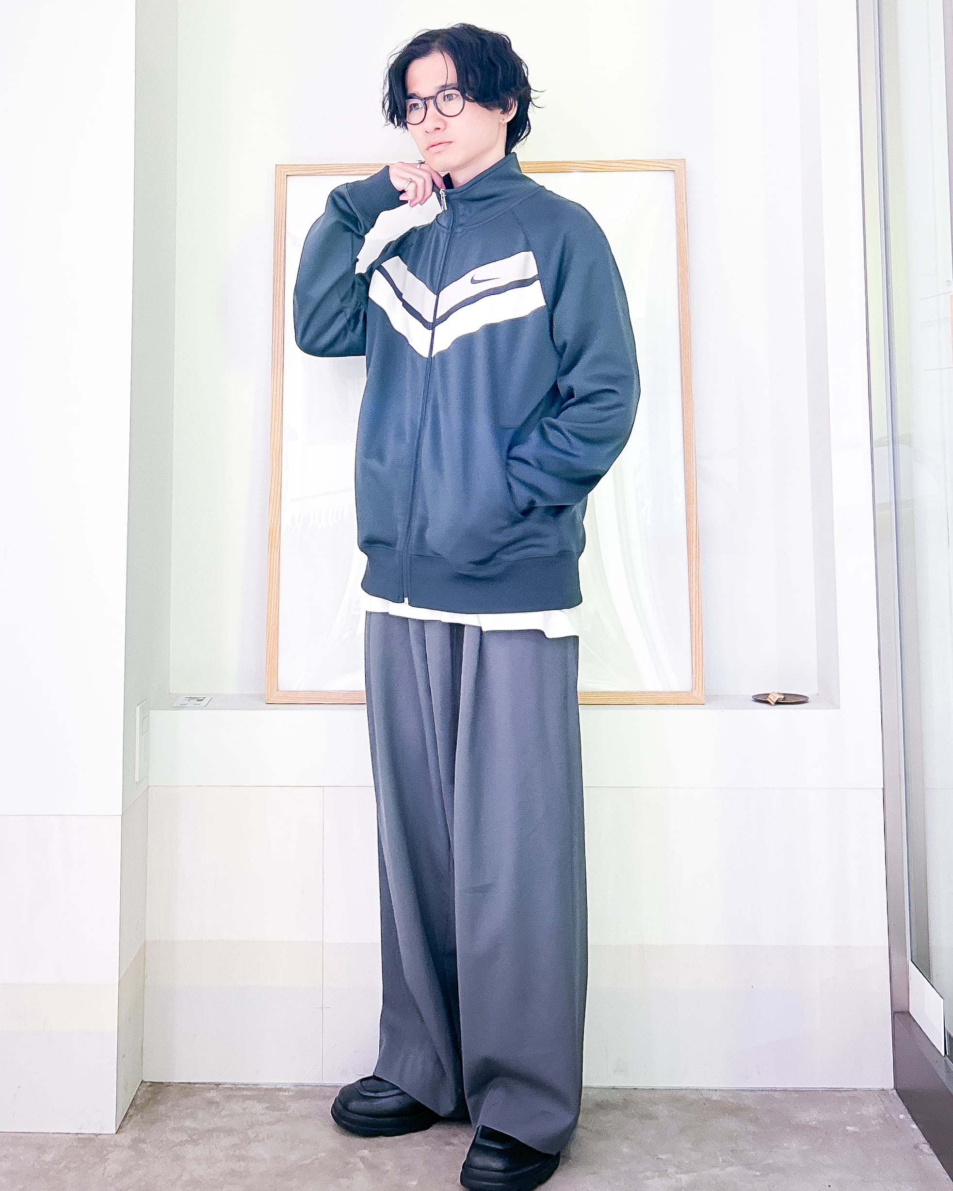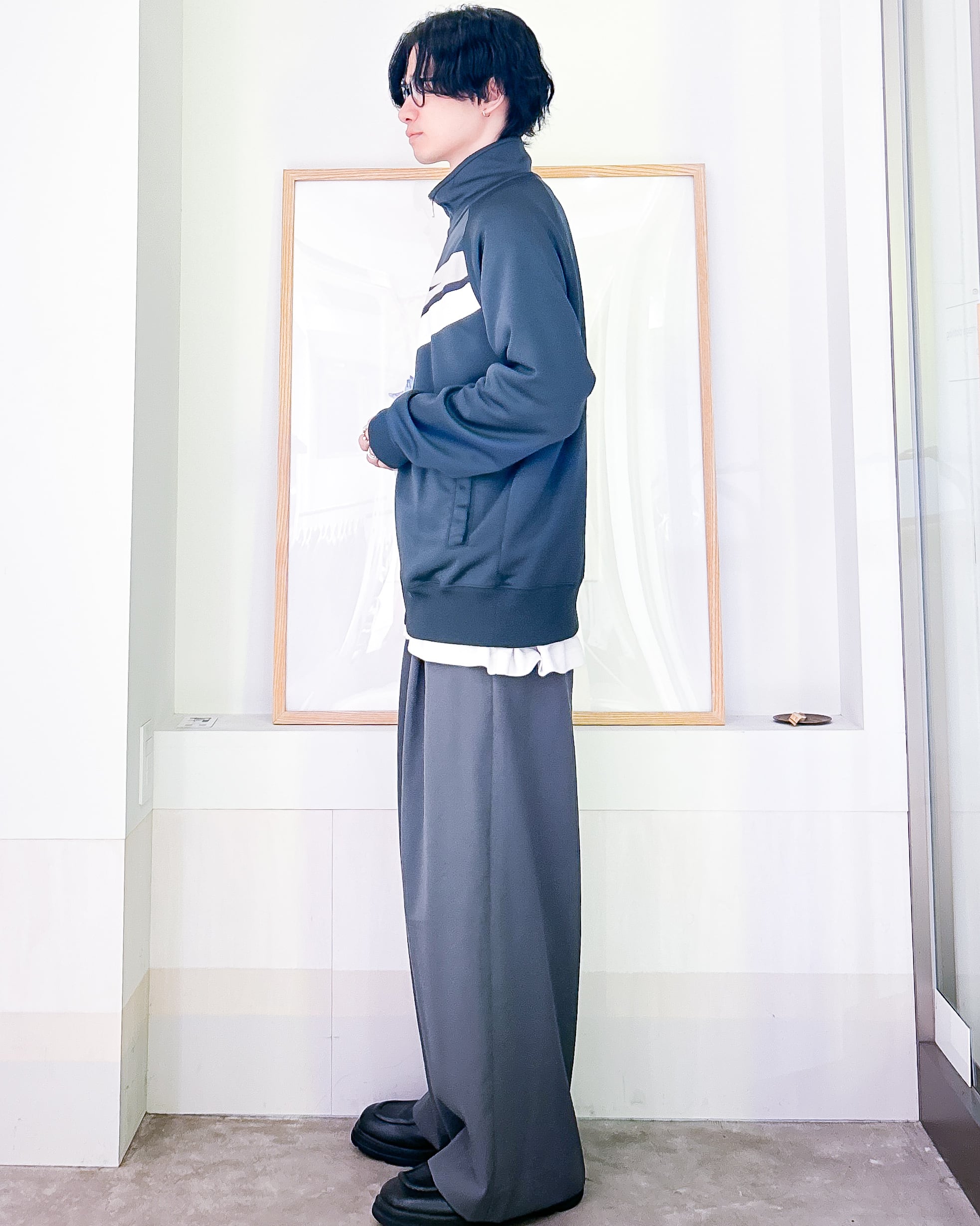 スポーティな装飾性がありつつ、全体がモノトーンで統一されていてカジュアル過ぎない印象で着用できます。