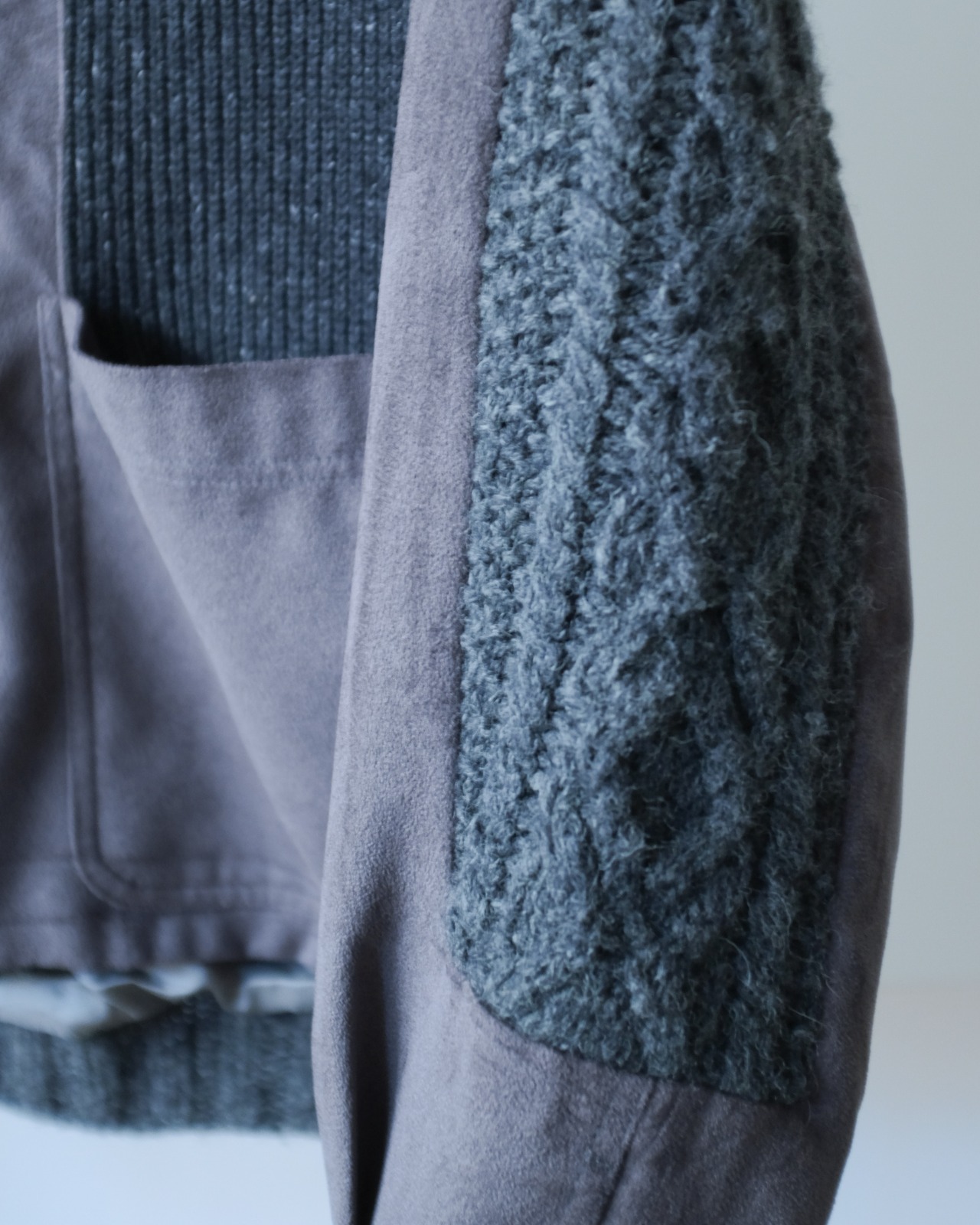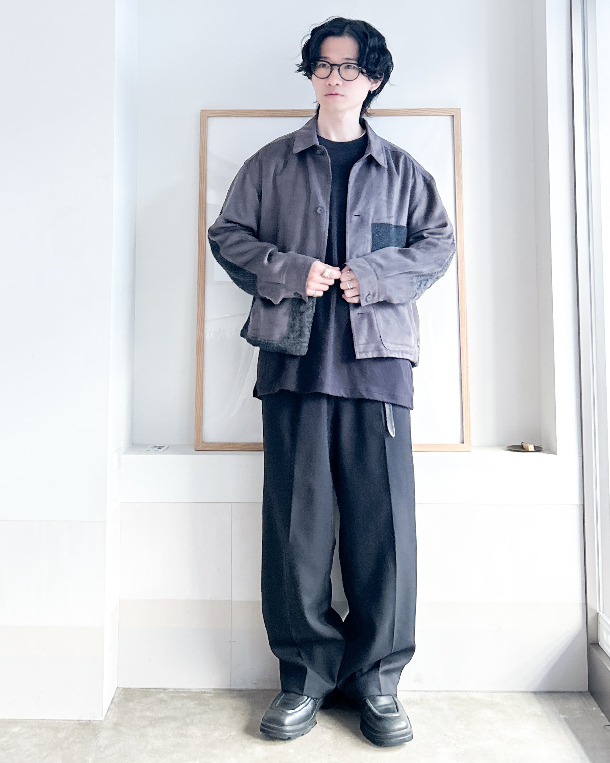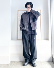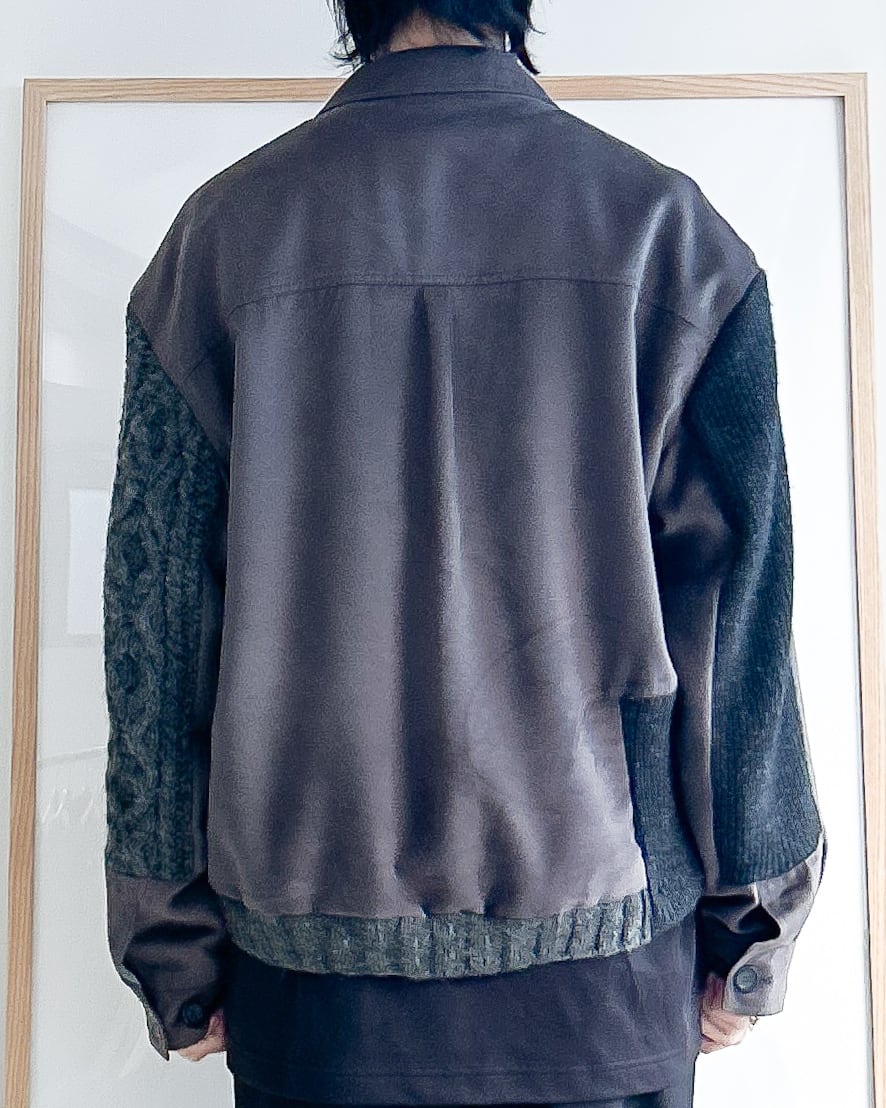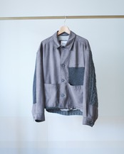 生地感が異なるアイテムを再構築リメイクしたジャケット。