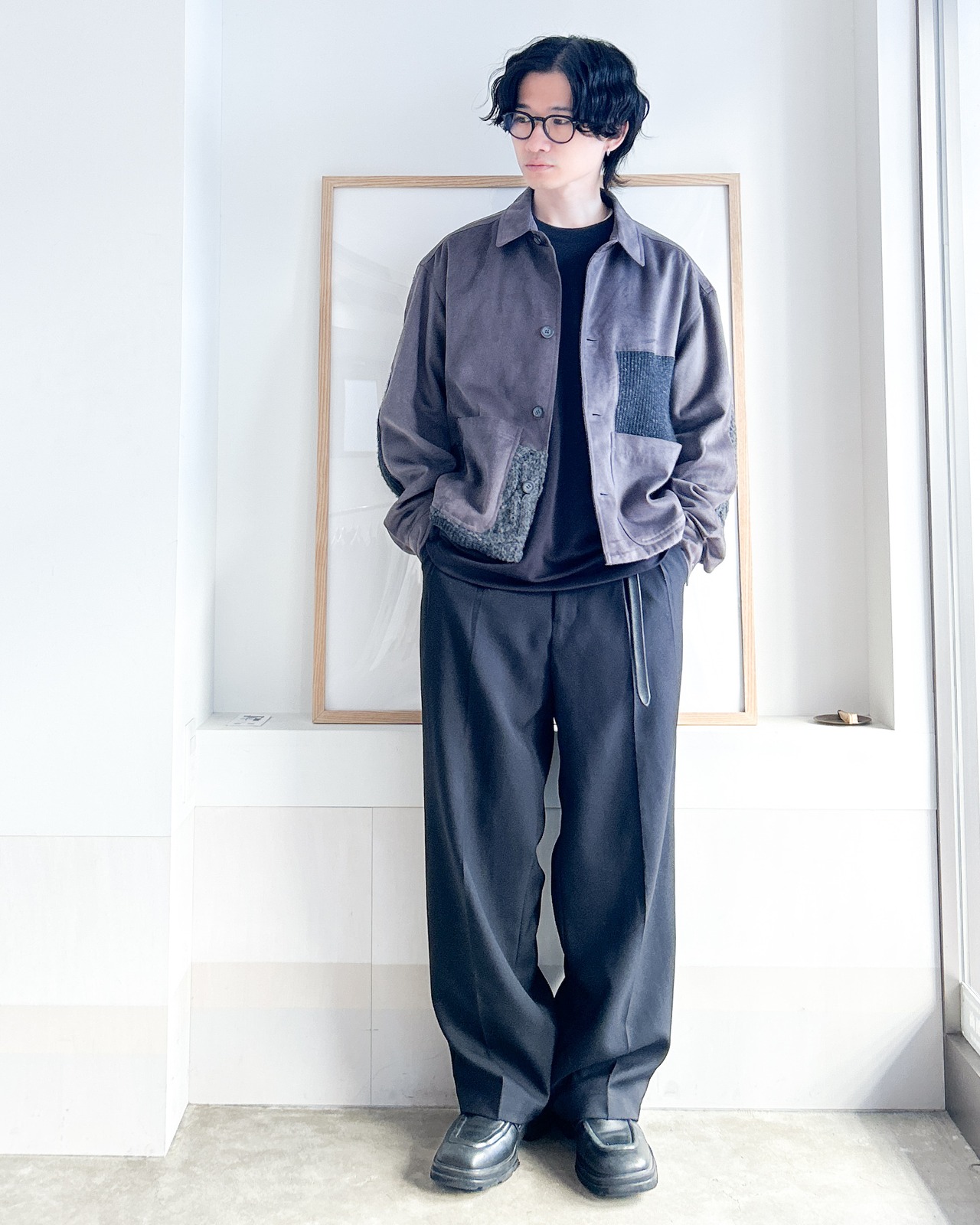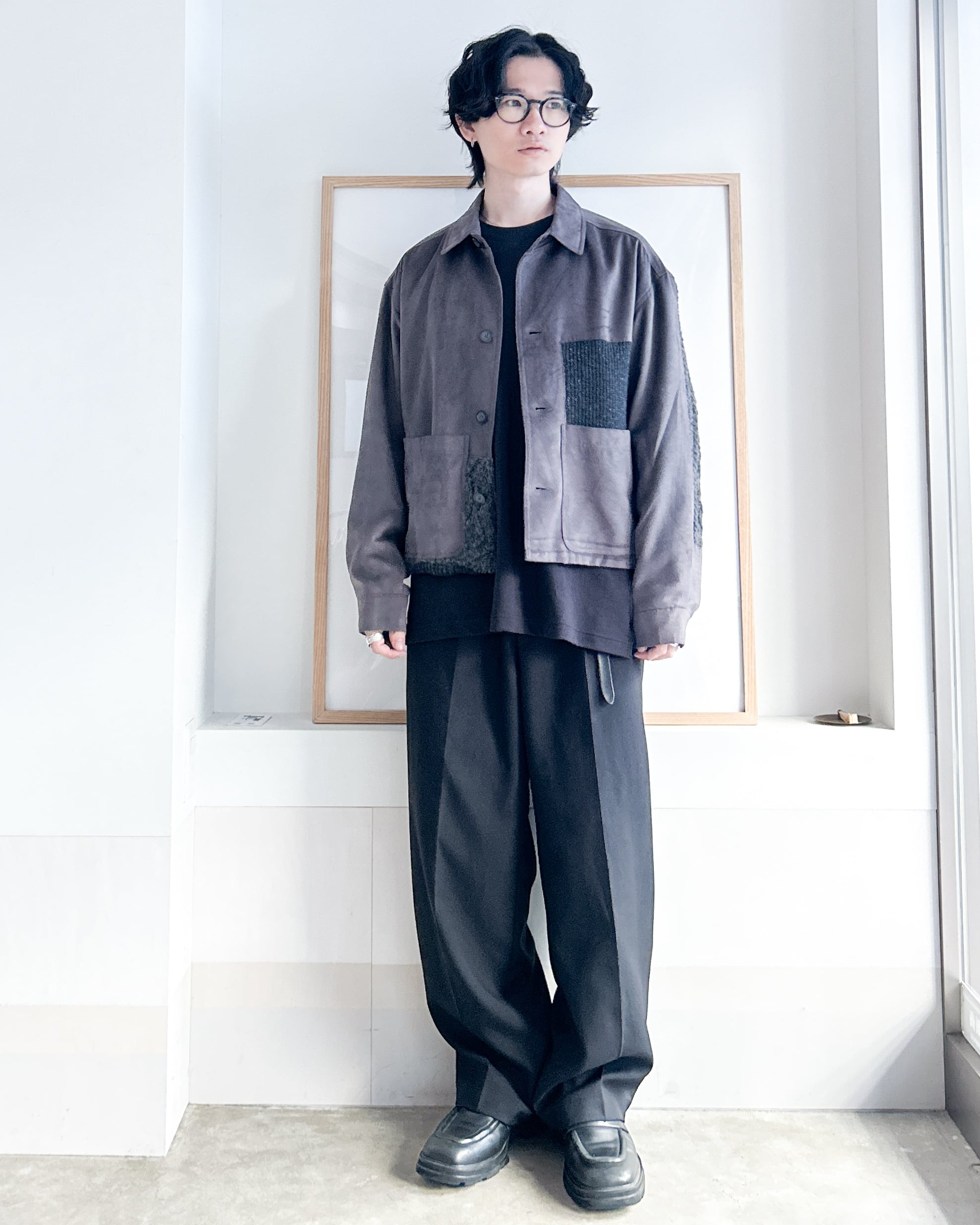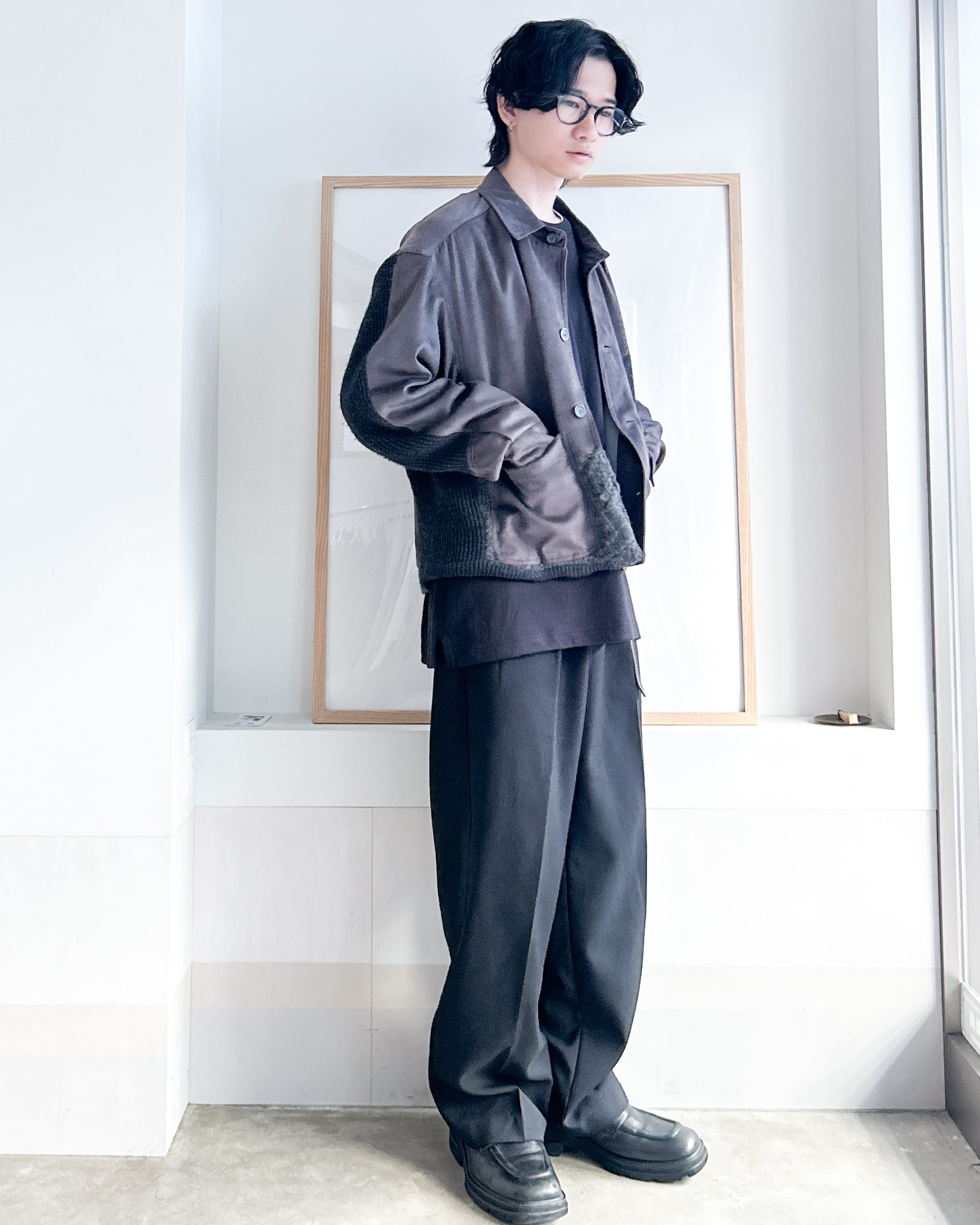 編み方の異なるニットとスウェード調の組み合わせは古着のもつ「一点もの」というメリットをさらに強化し、着こなしに唯一無二の雰囲気を加えてくれます。