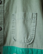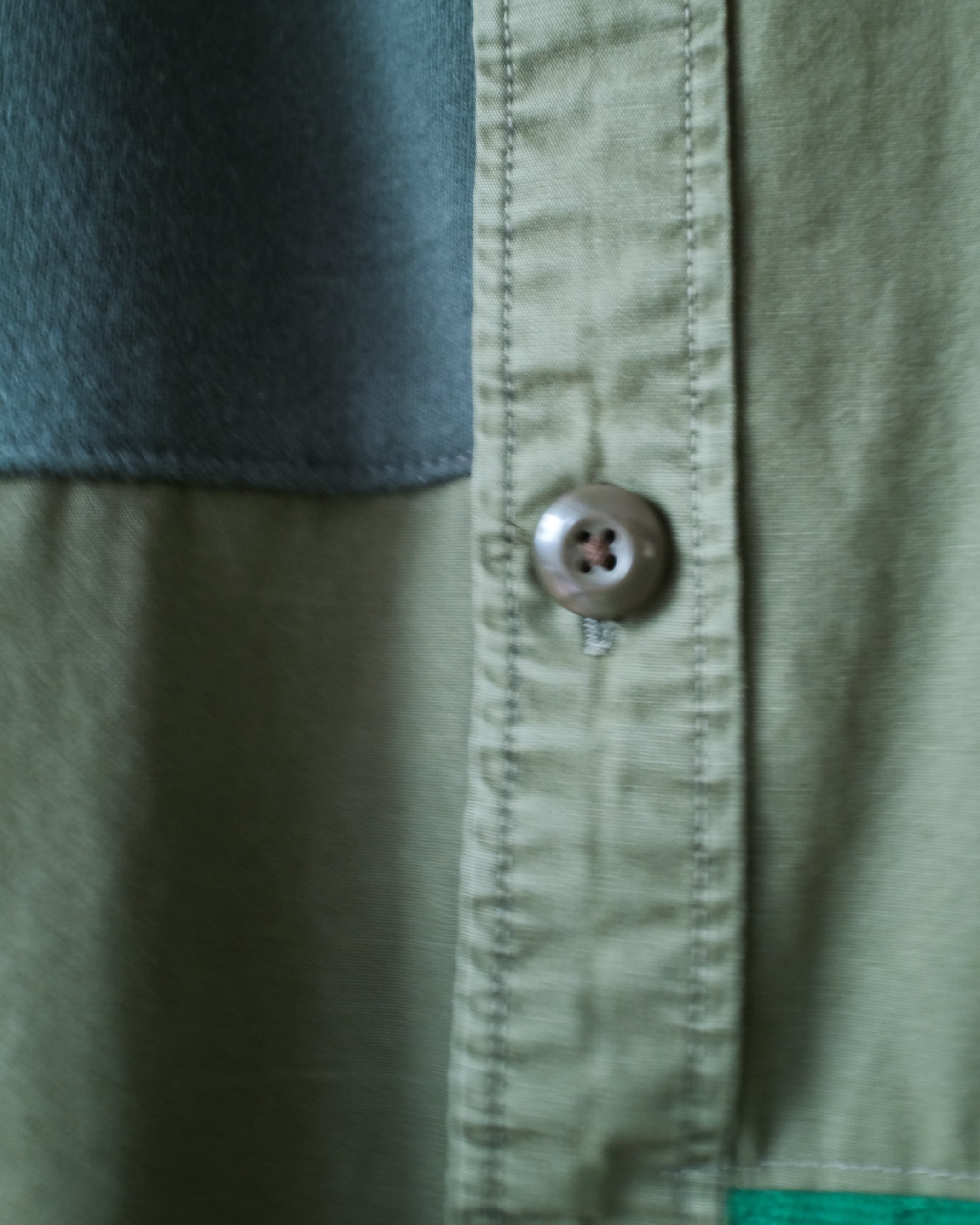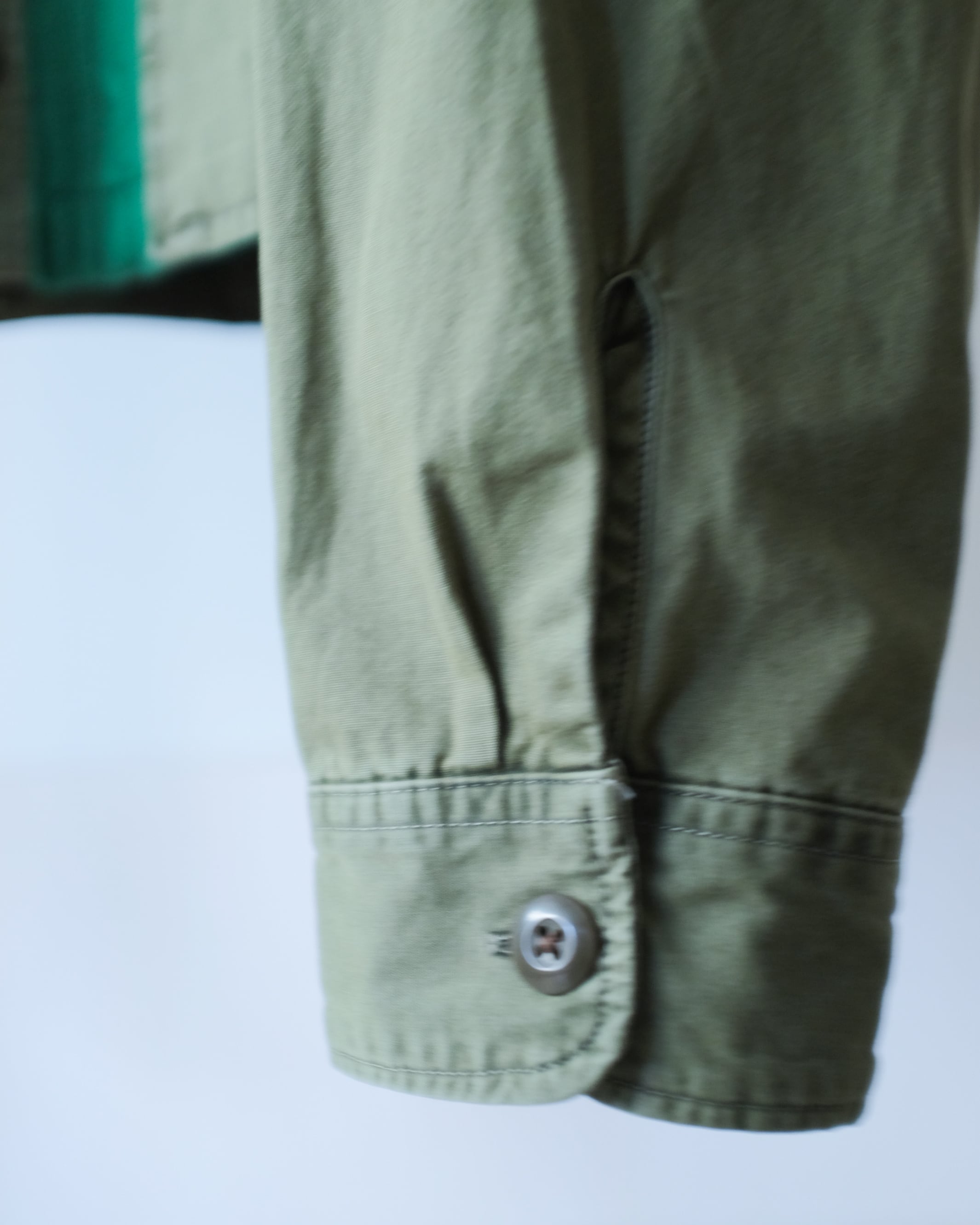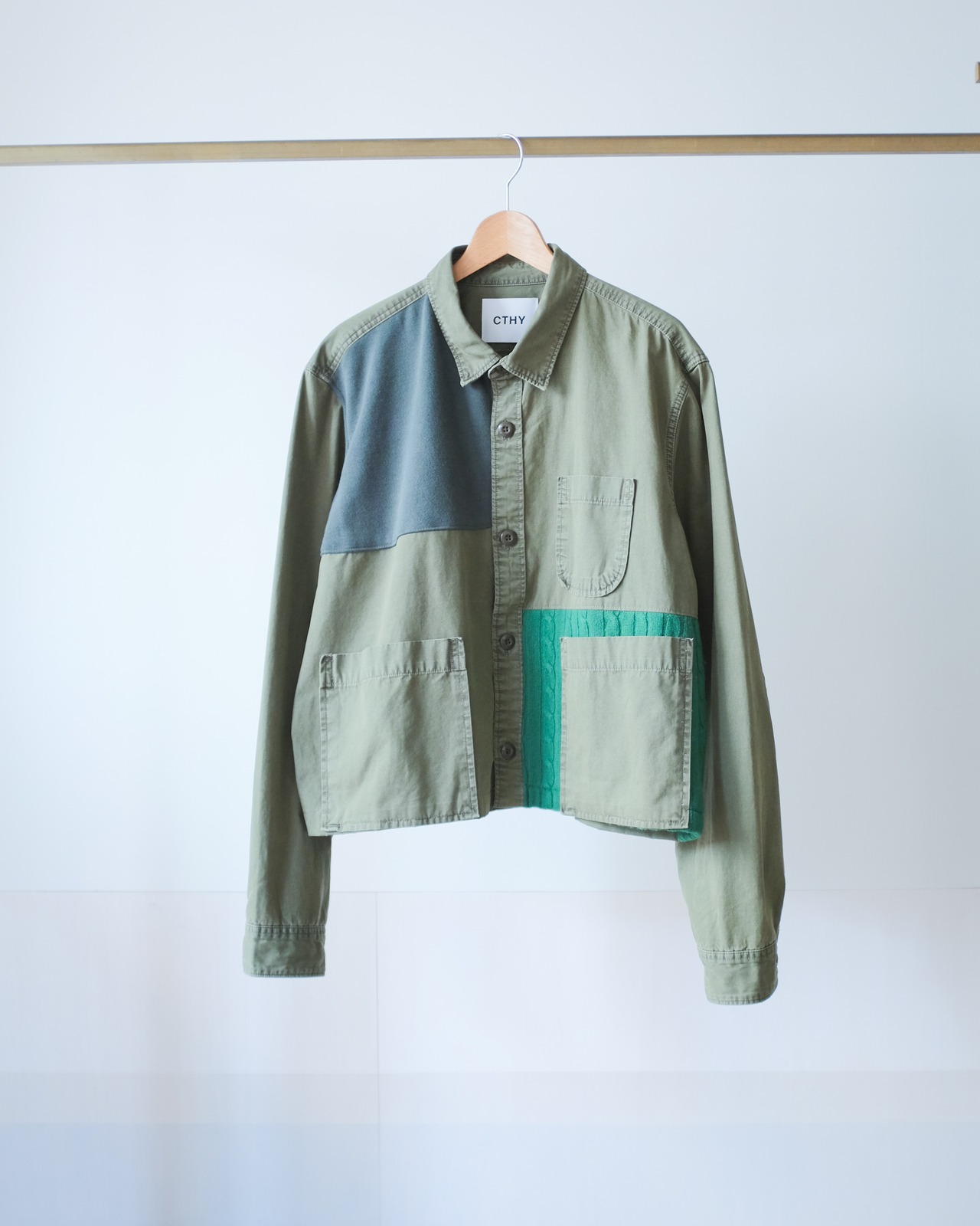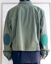 生地感が異なるアイテムを再構築リメイクしたジャケット。