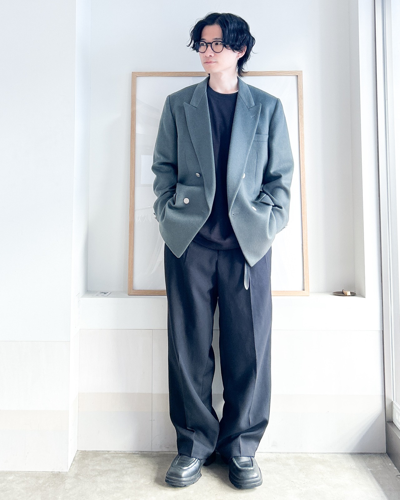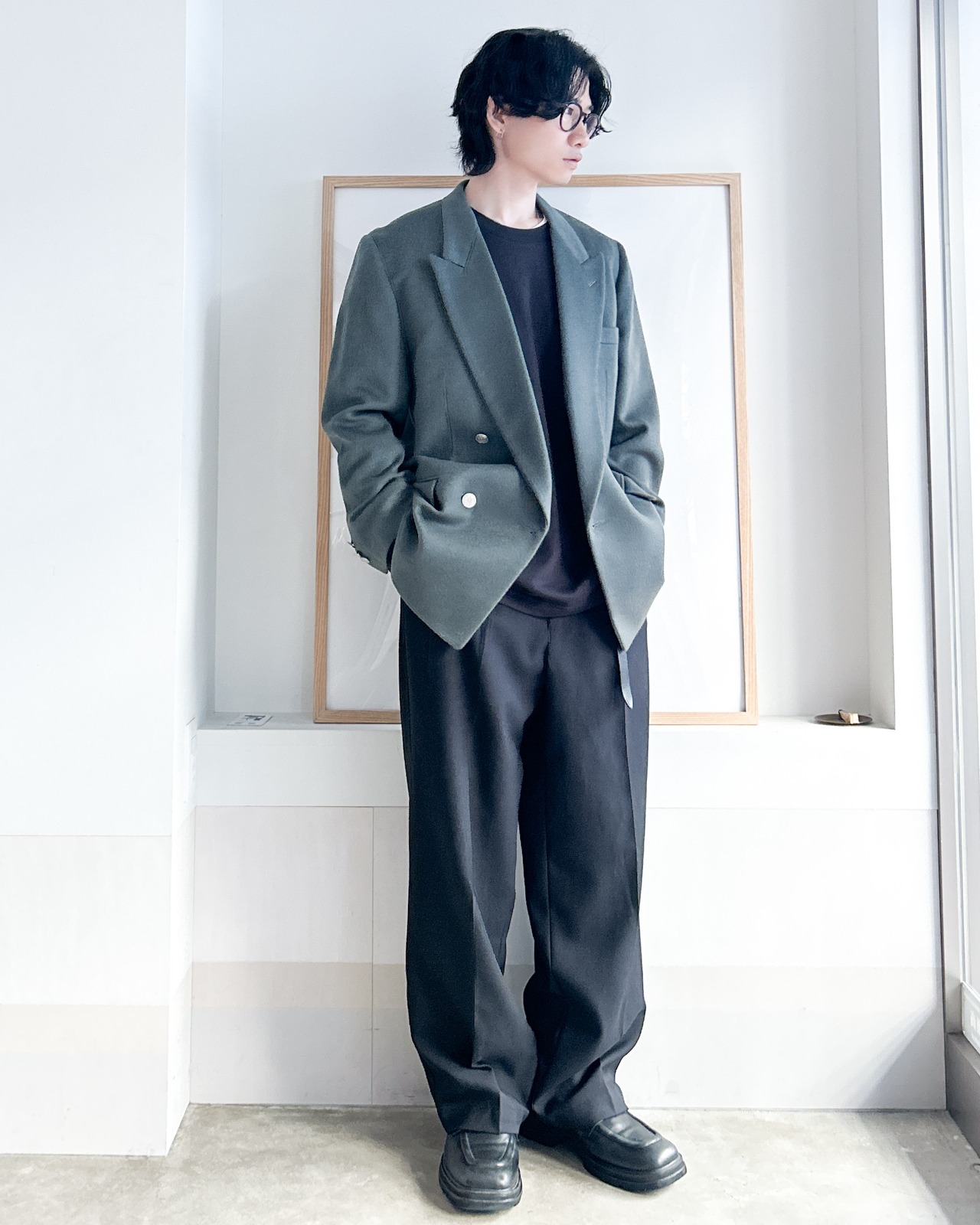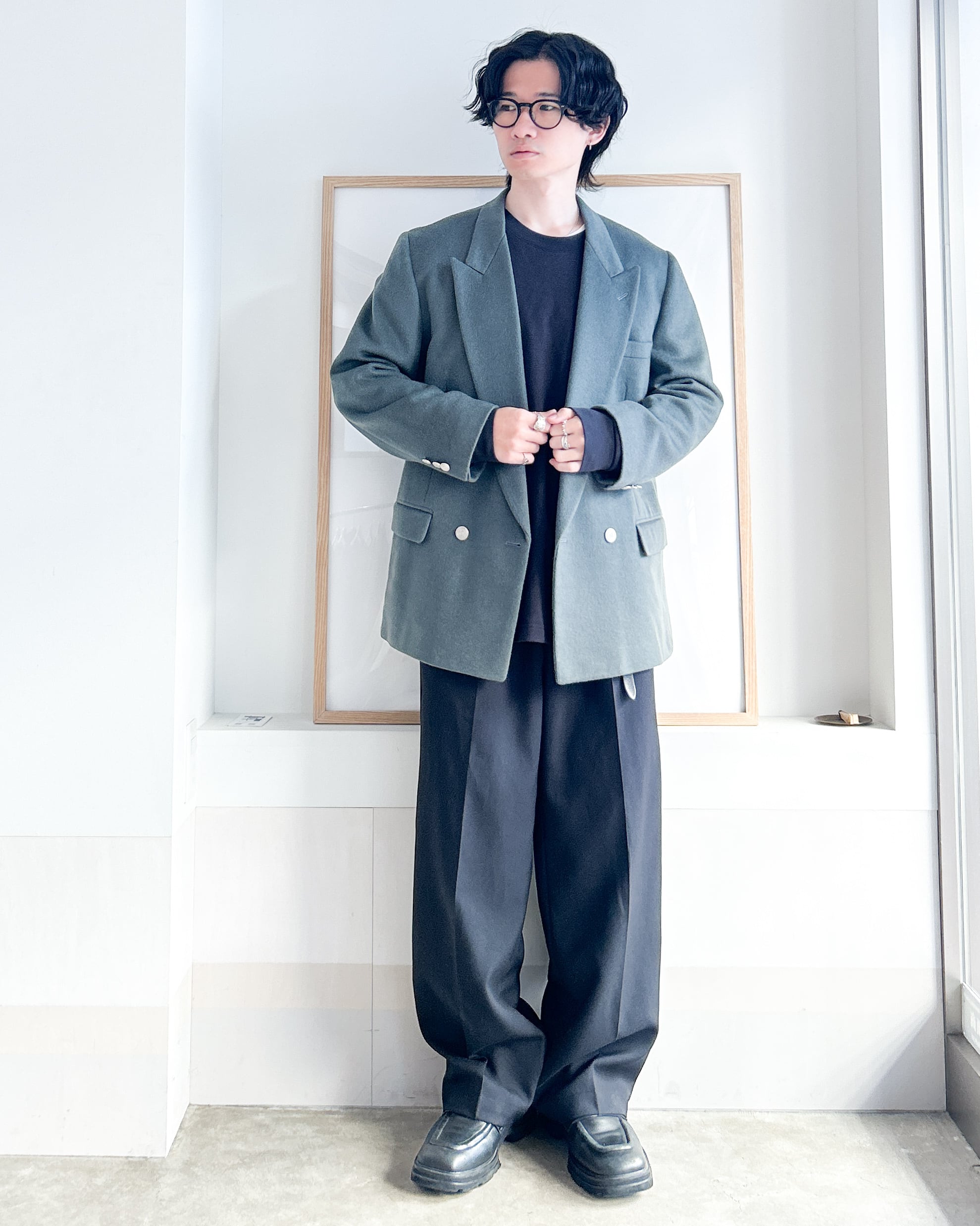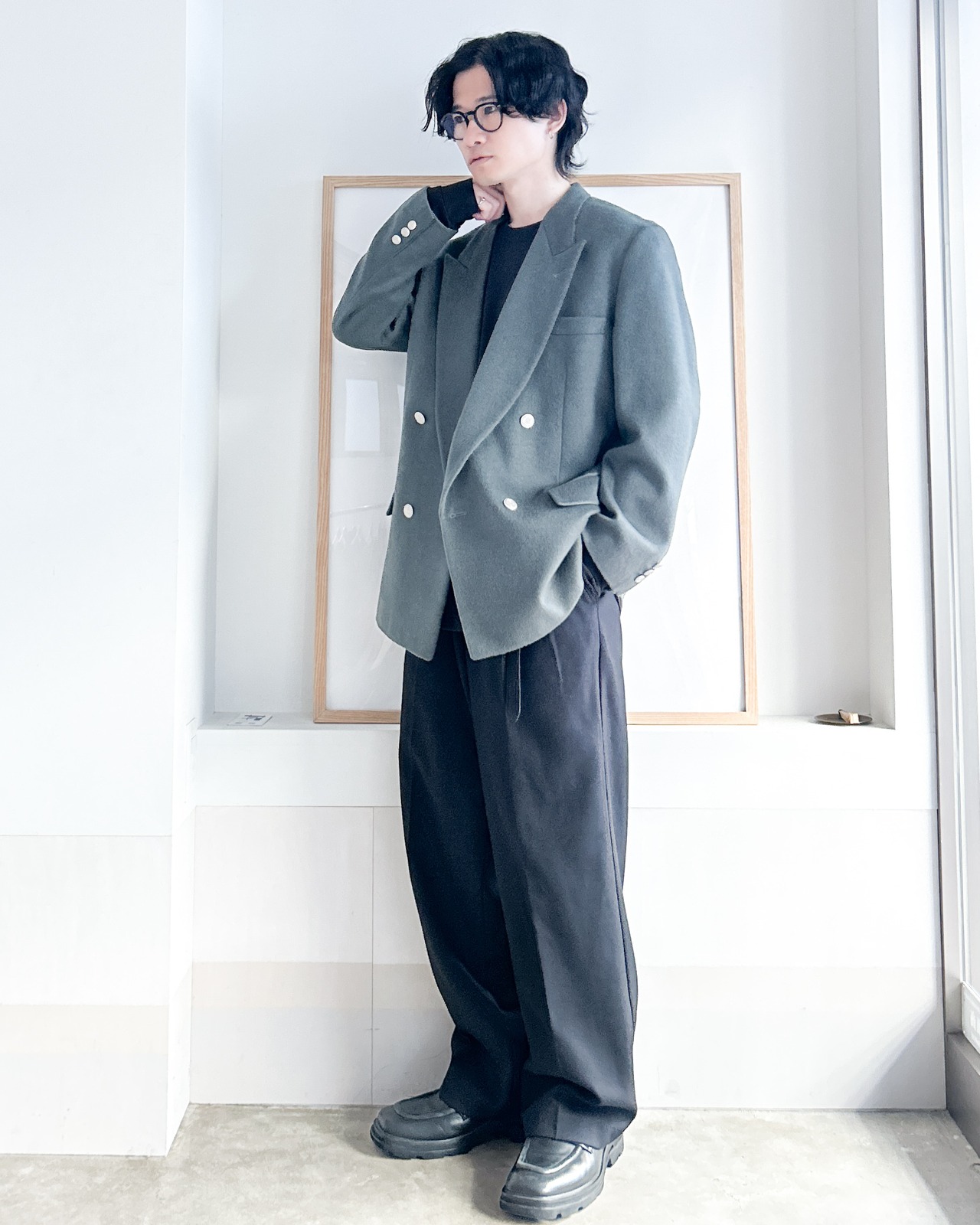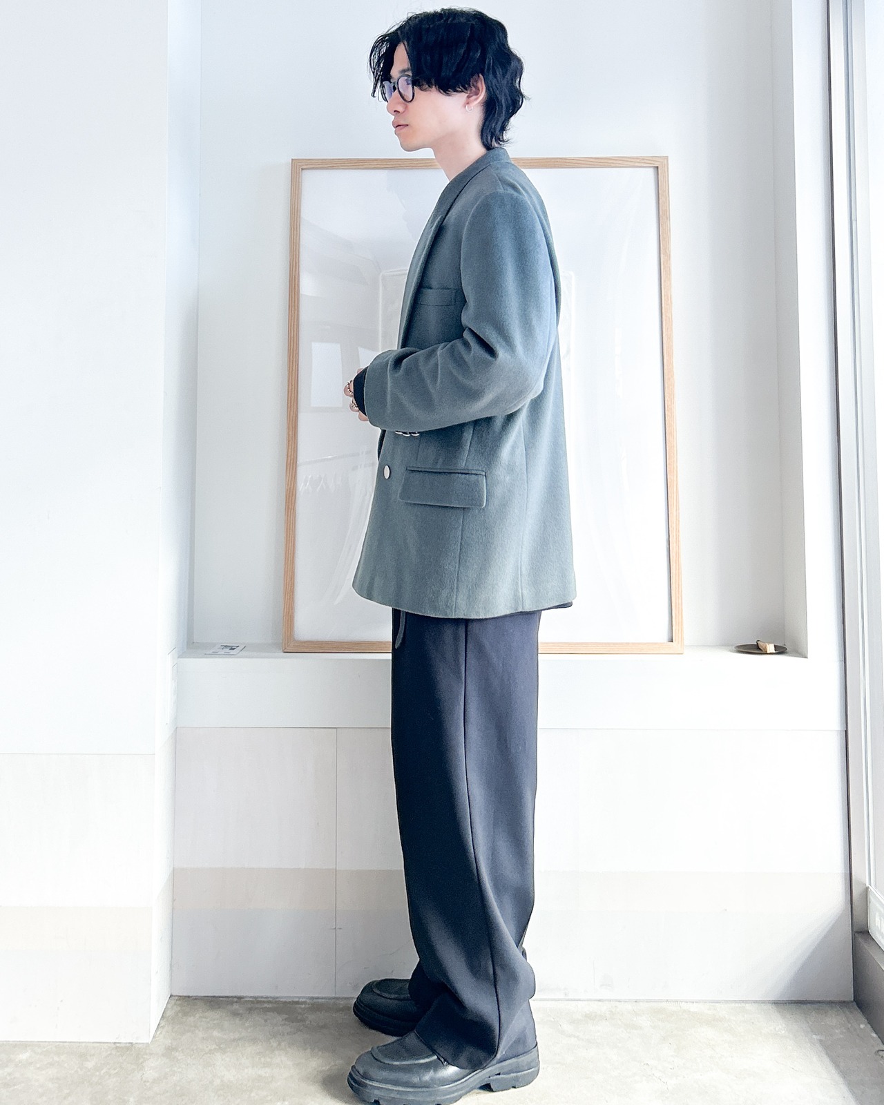 古着のテーラードジャケットは肩が張りすぎて、着こなしが難しいものが多いです。