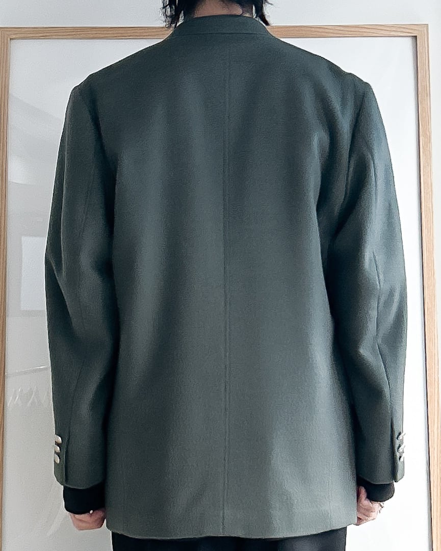 そこでこちらのリメイクでは肩パットを薄いものに変更、肩幅や身幅、アームホールをリサイズすることでテーラードらしいかっちり感を残しつつ、着用しやすくしました。