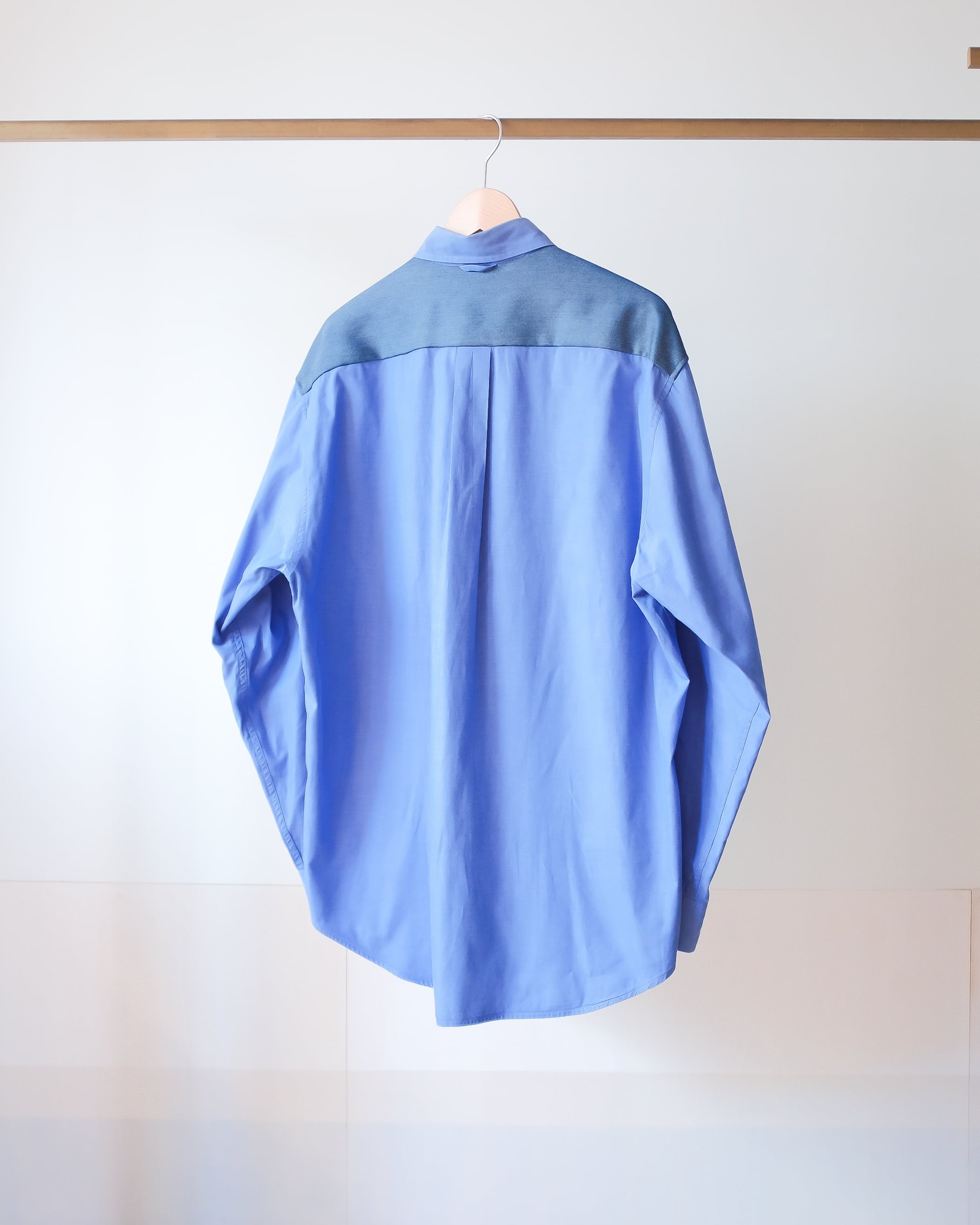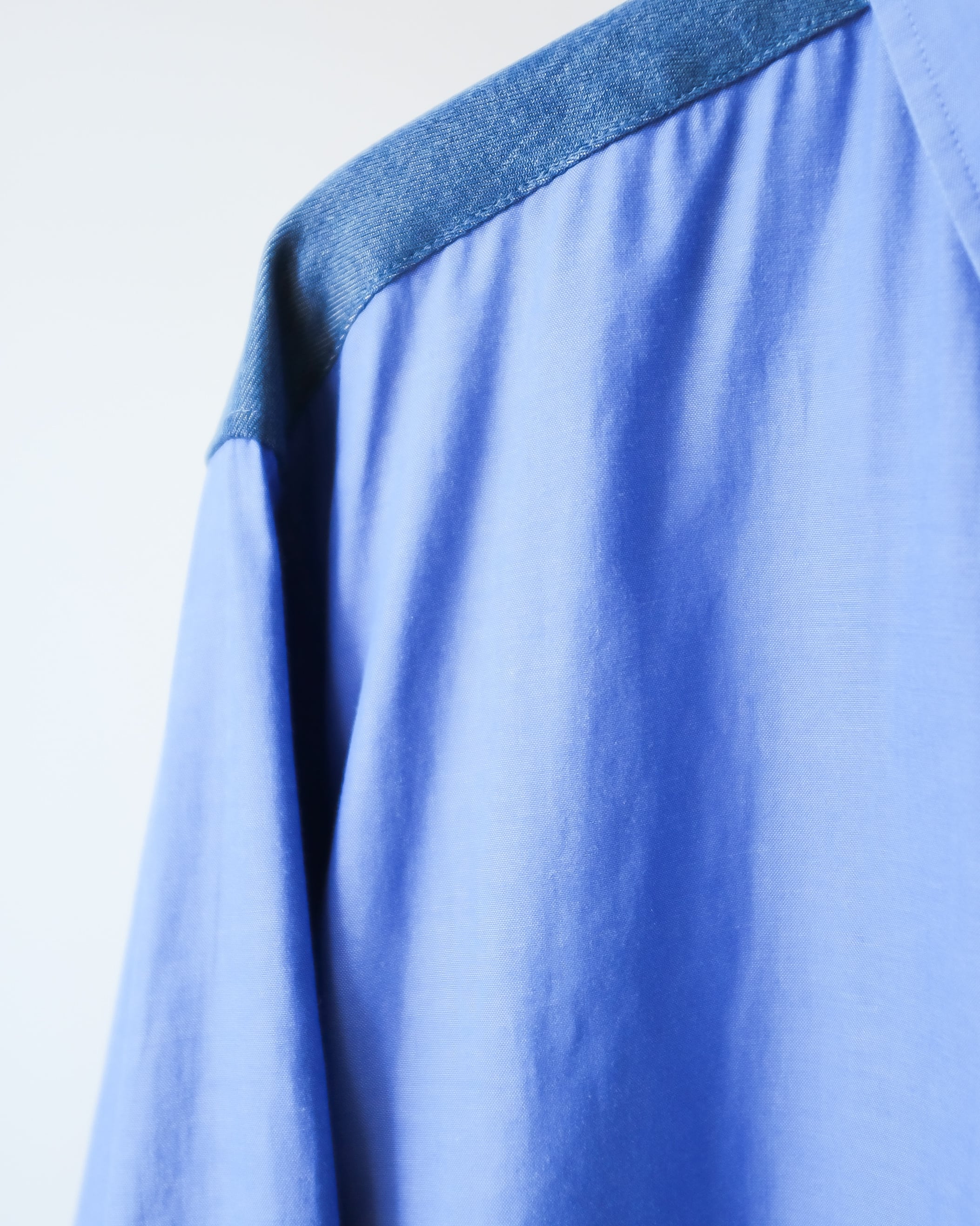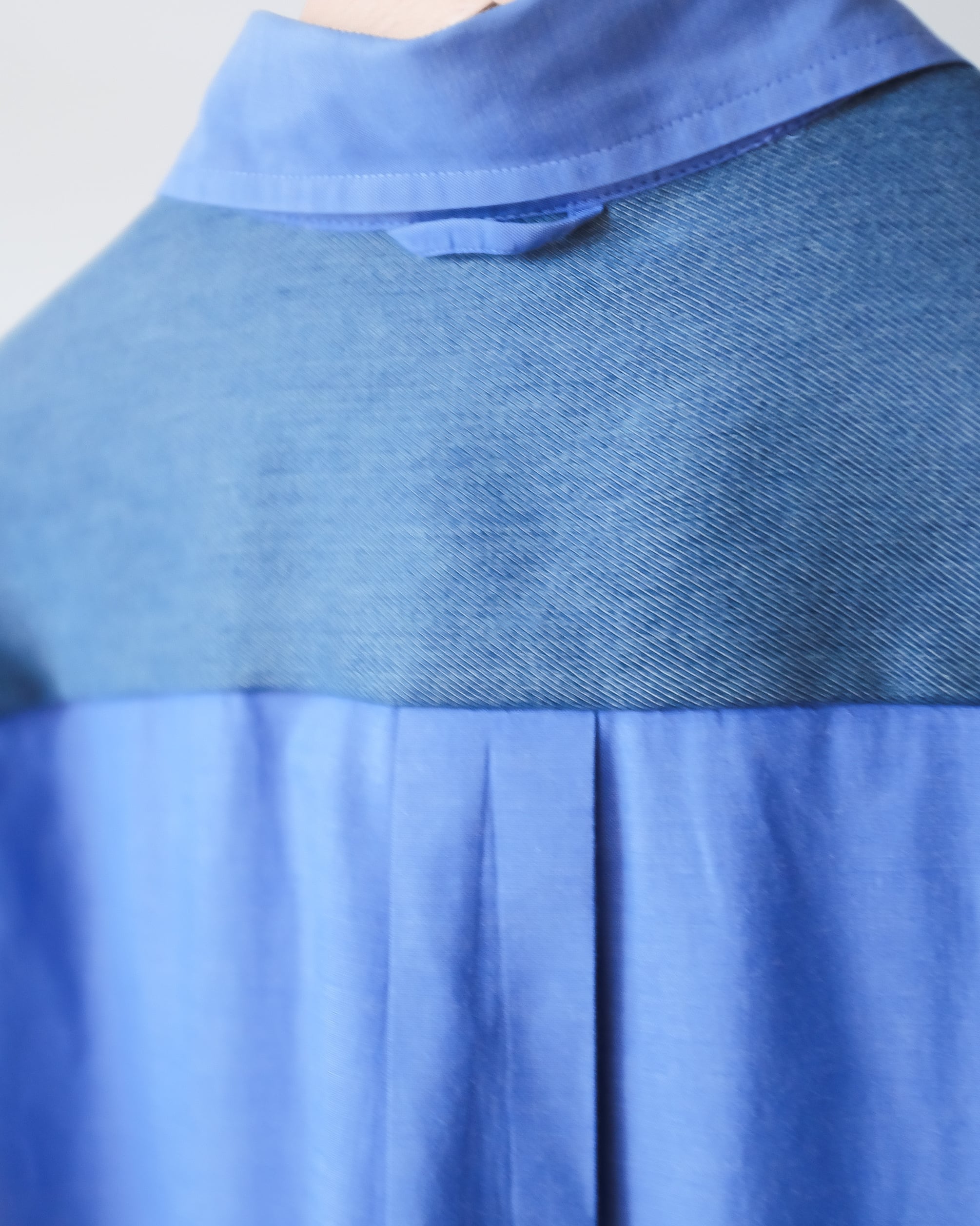 シャツのバックヨークにデニム生地をドッキングしたリメイク。