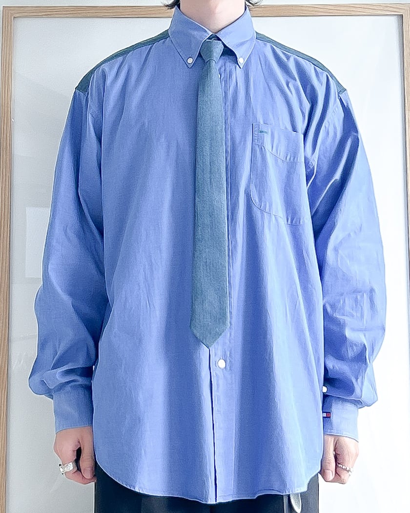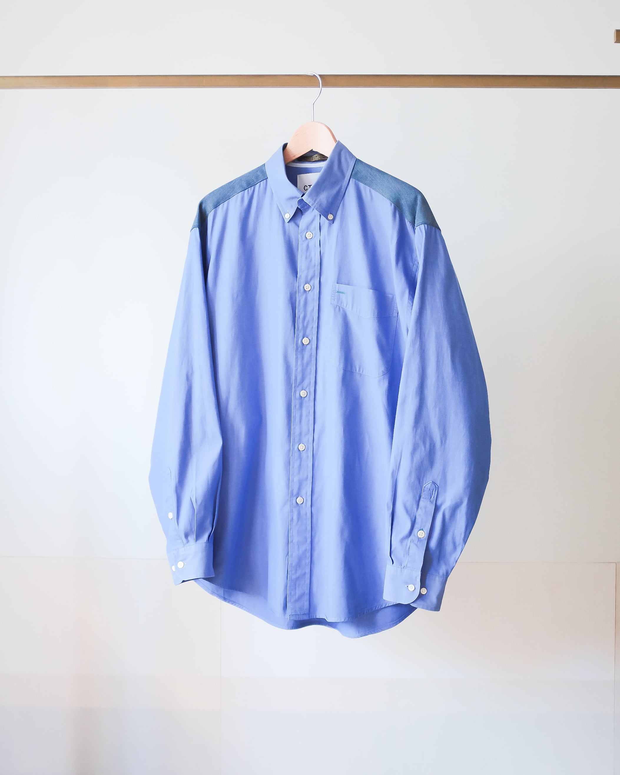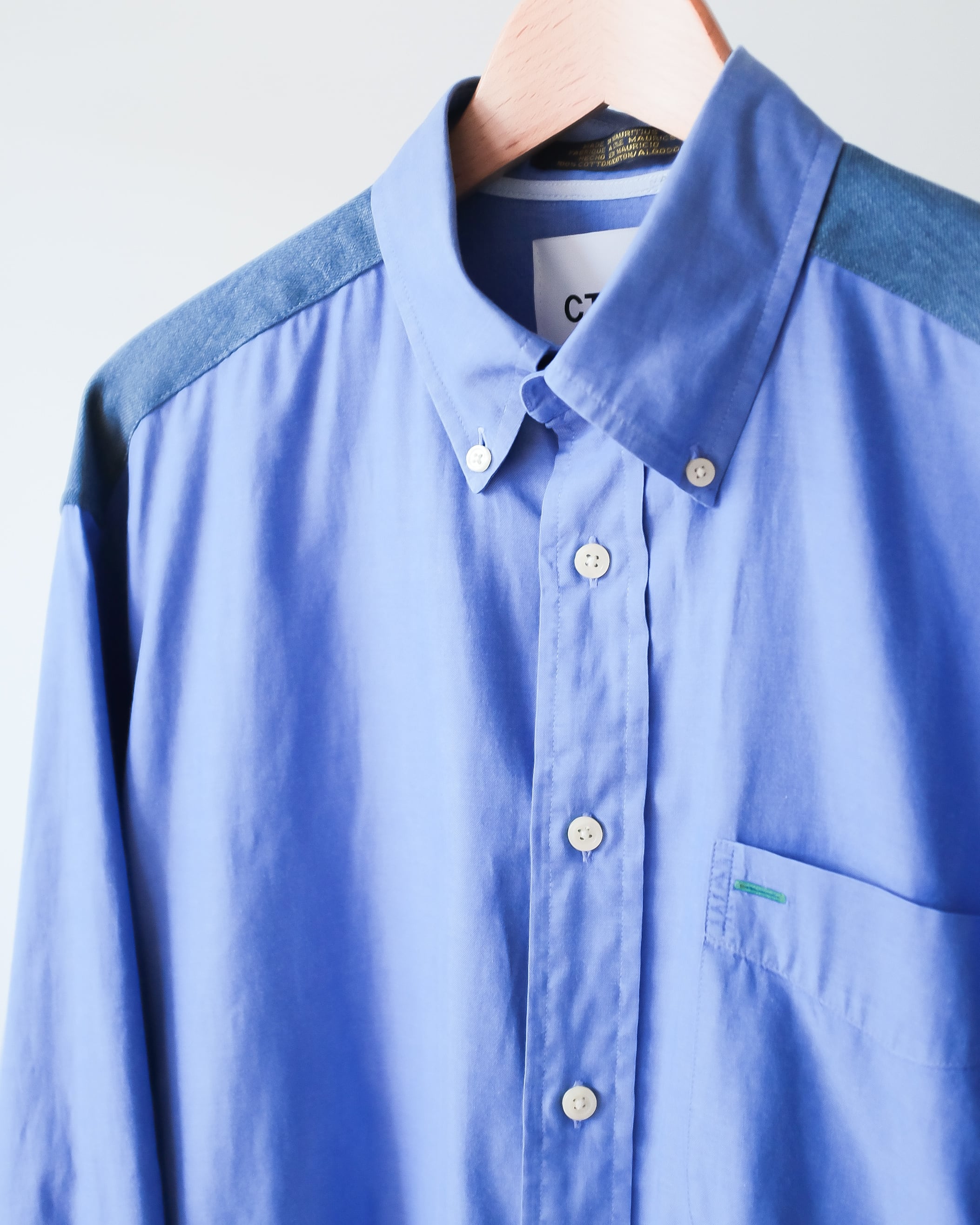シャツのバックヨークにデニム生地をドッキングしたリメイク。