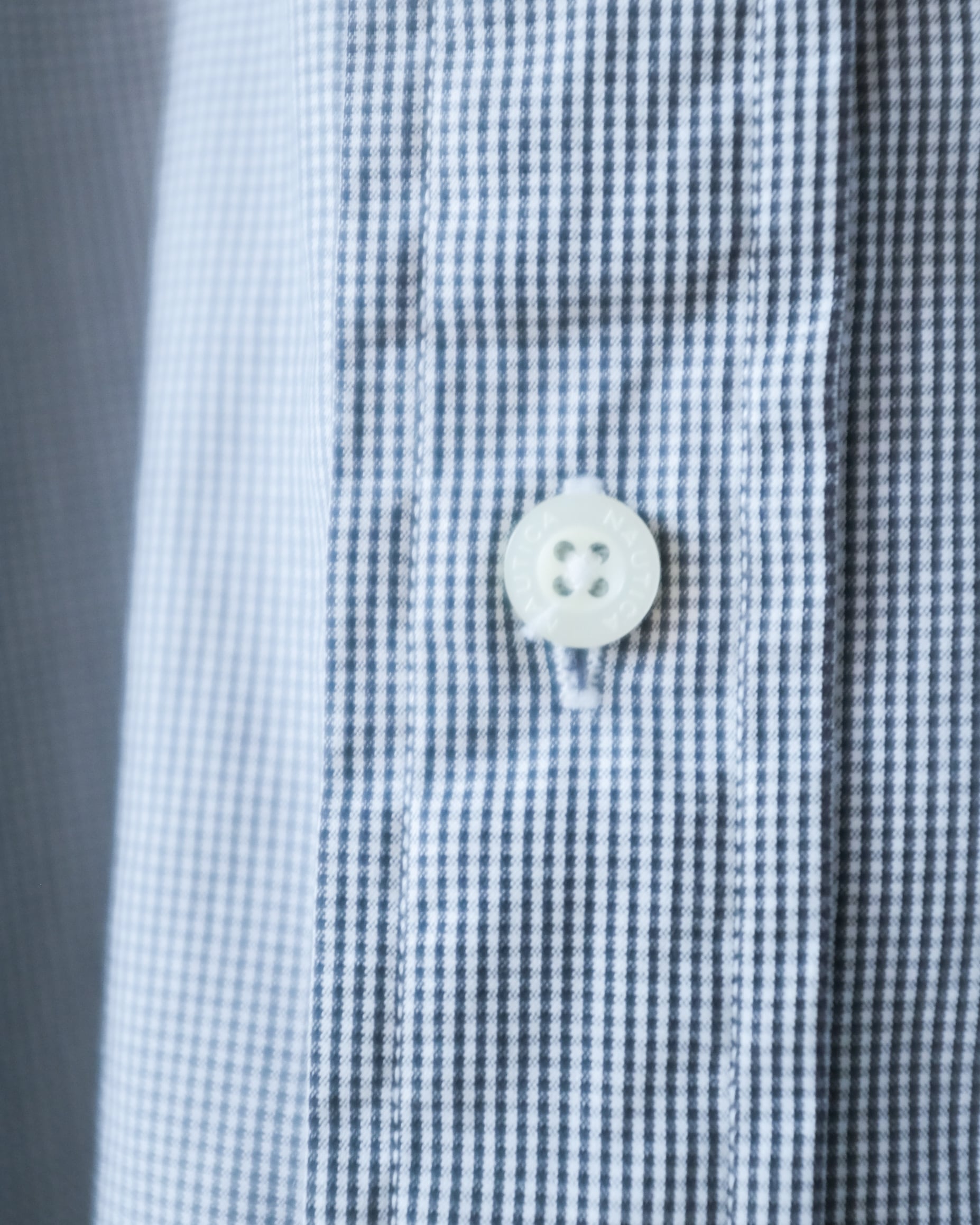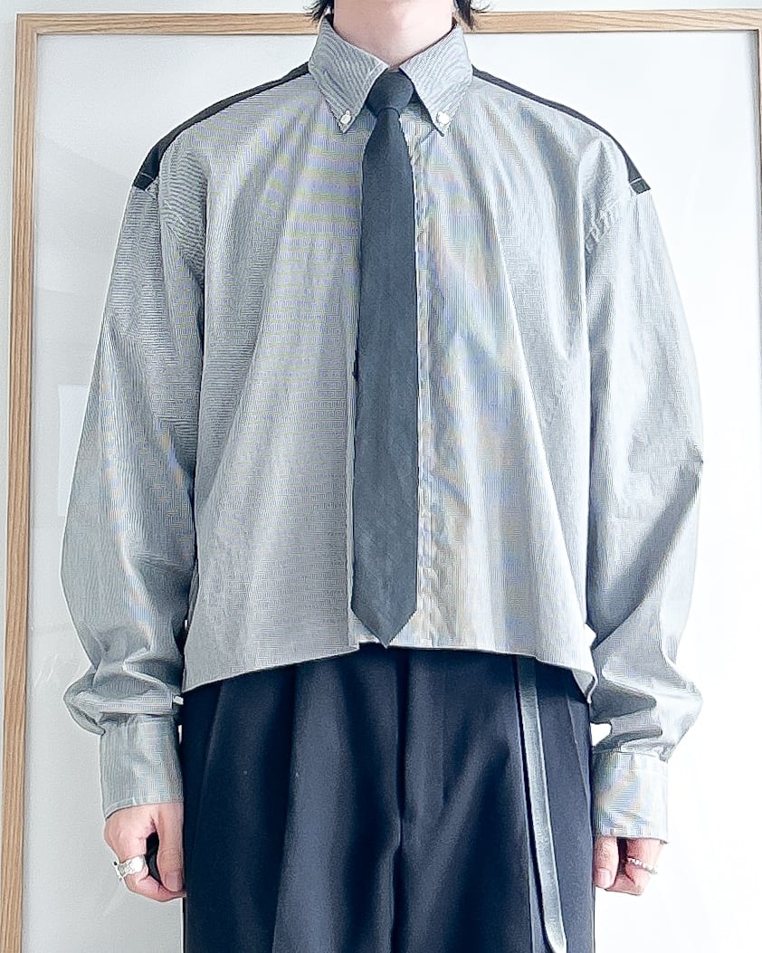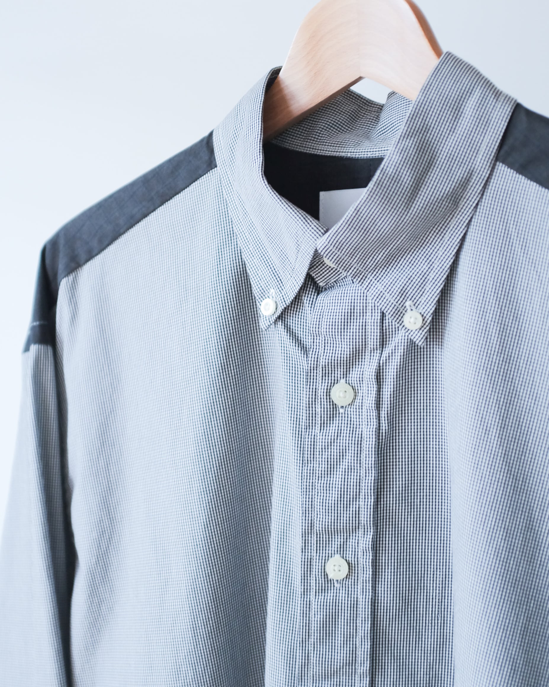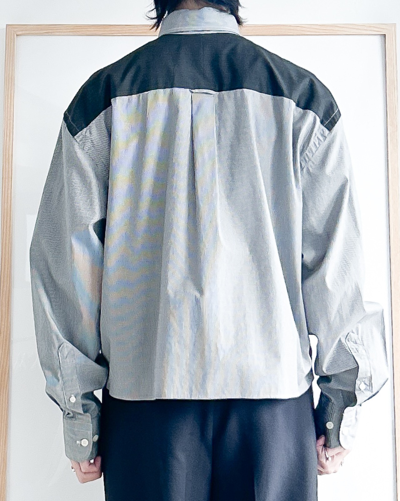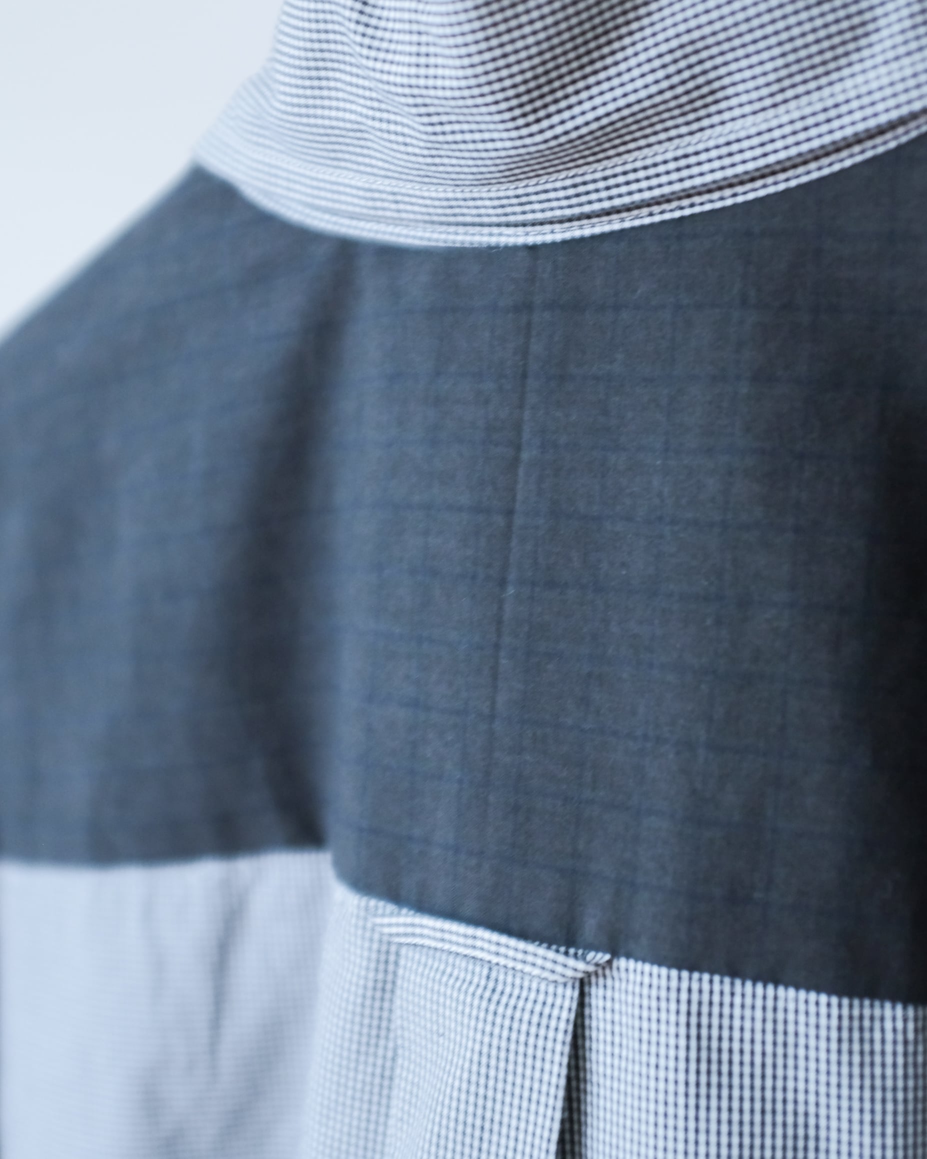 シャツのバックヨークに異なる生地をドッキングしたリメイク。