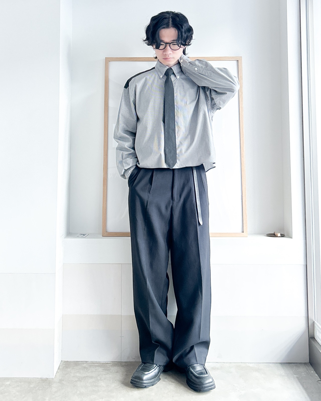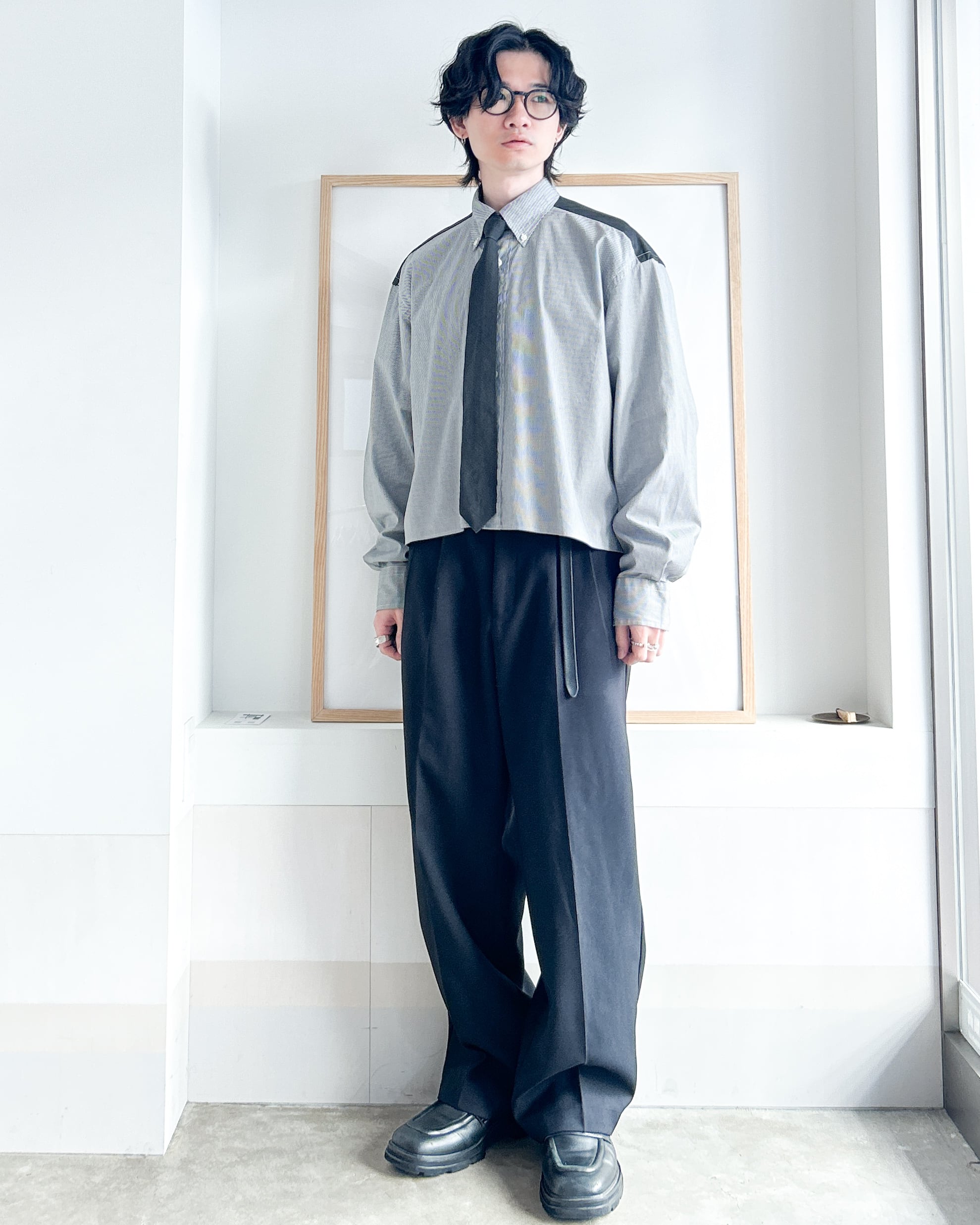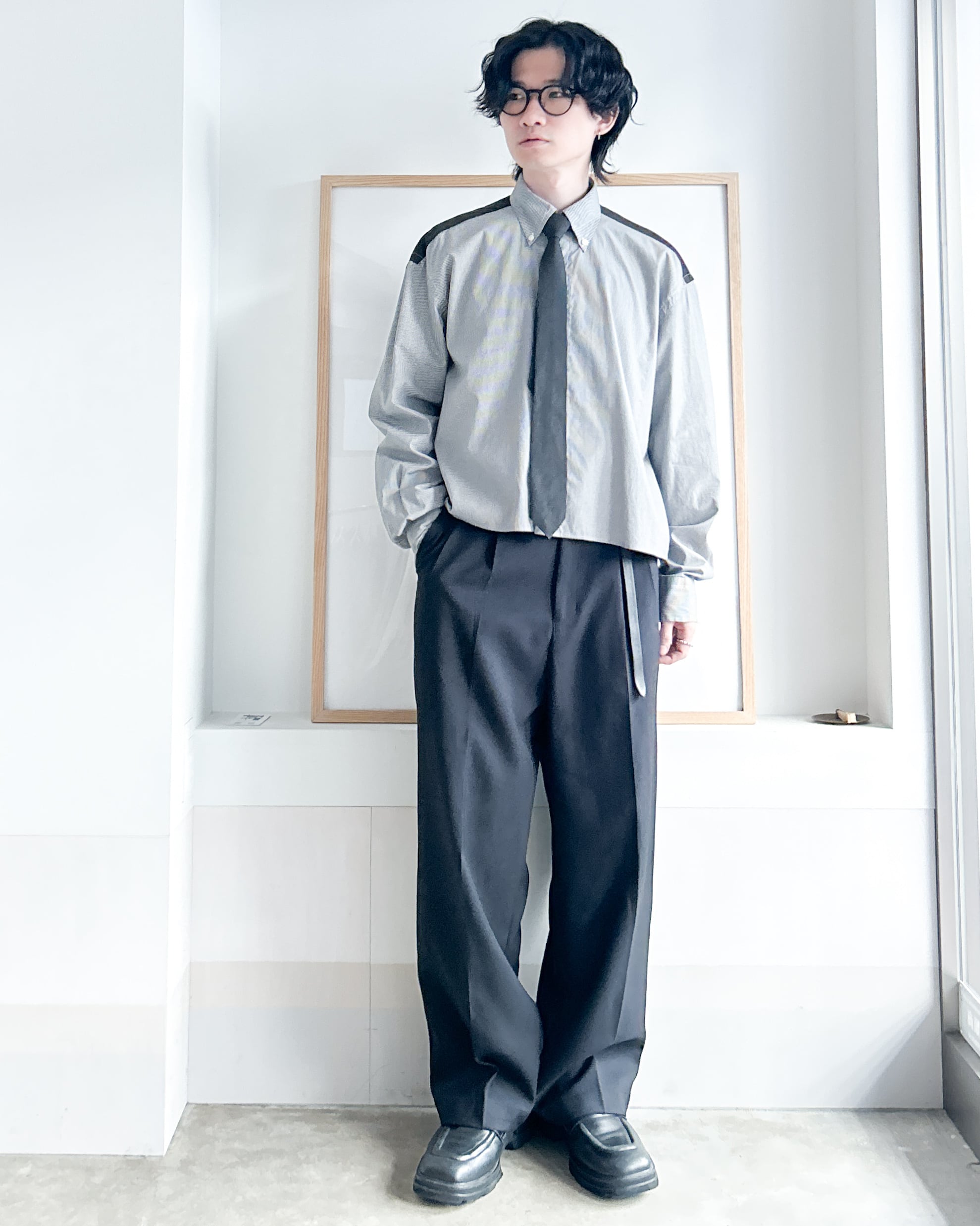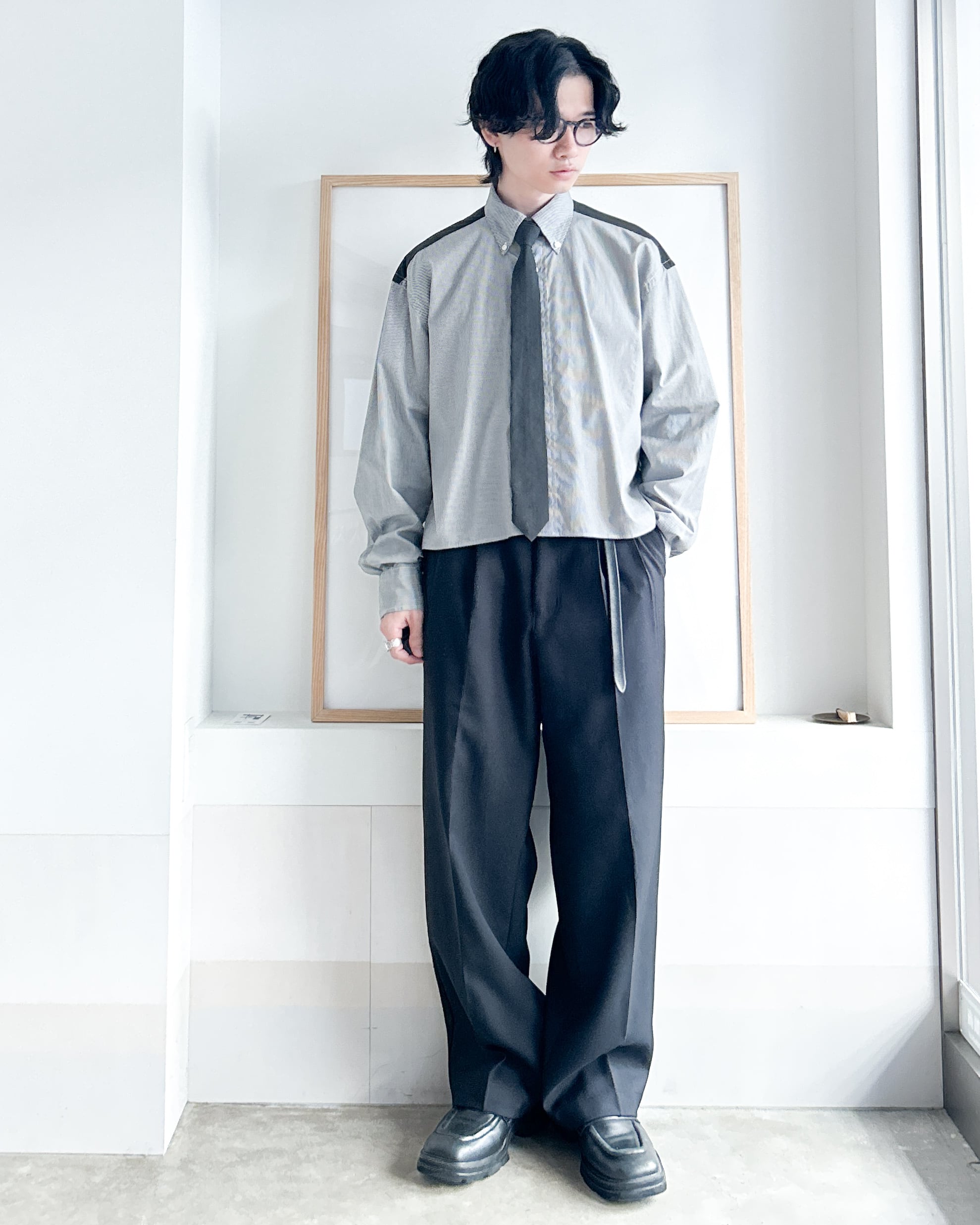 シャツのバックヨークに異なる生地をドッキングしたリメイク。