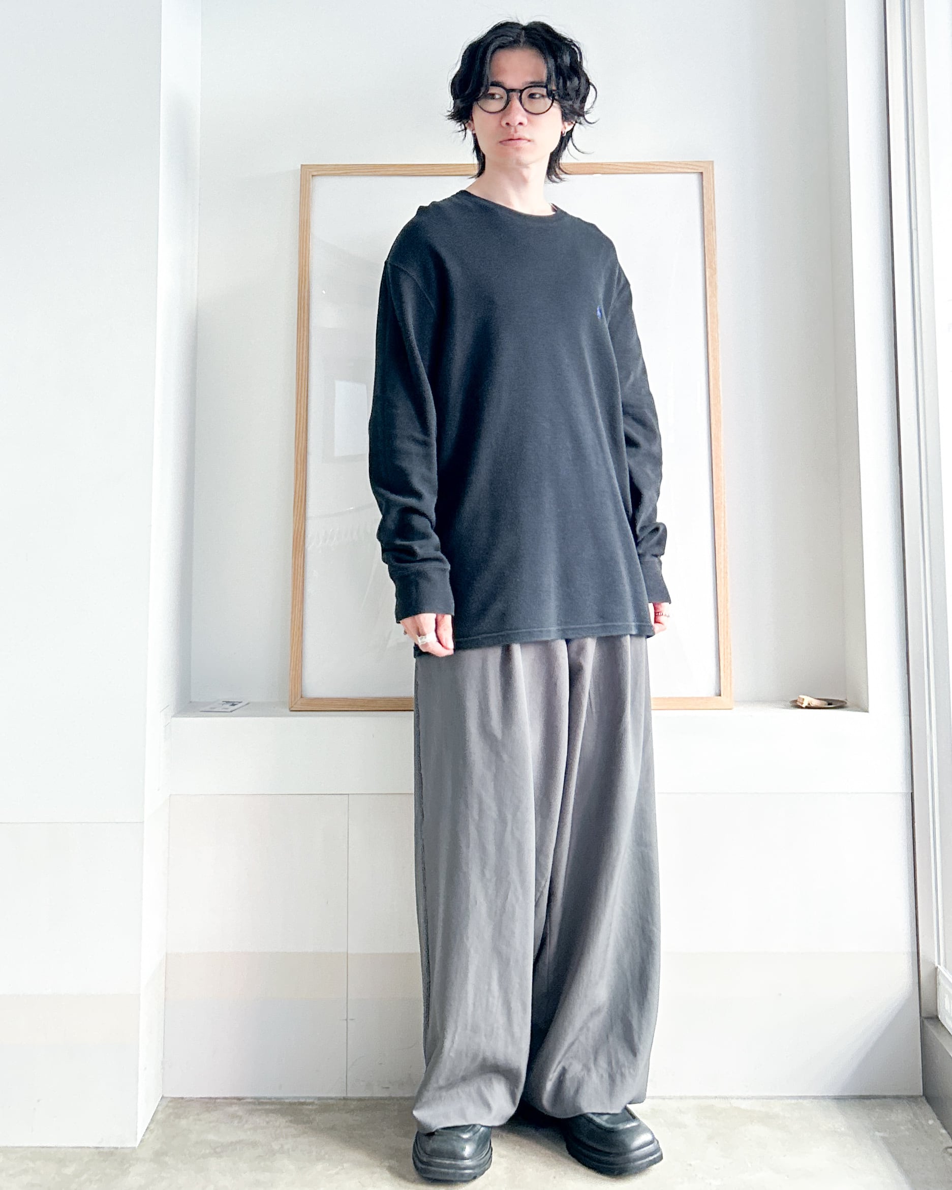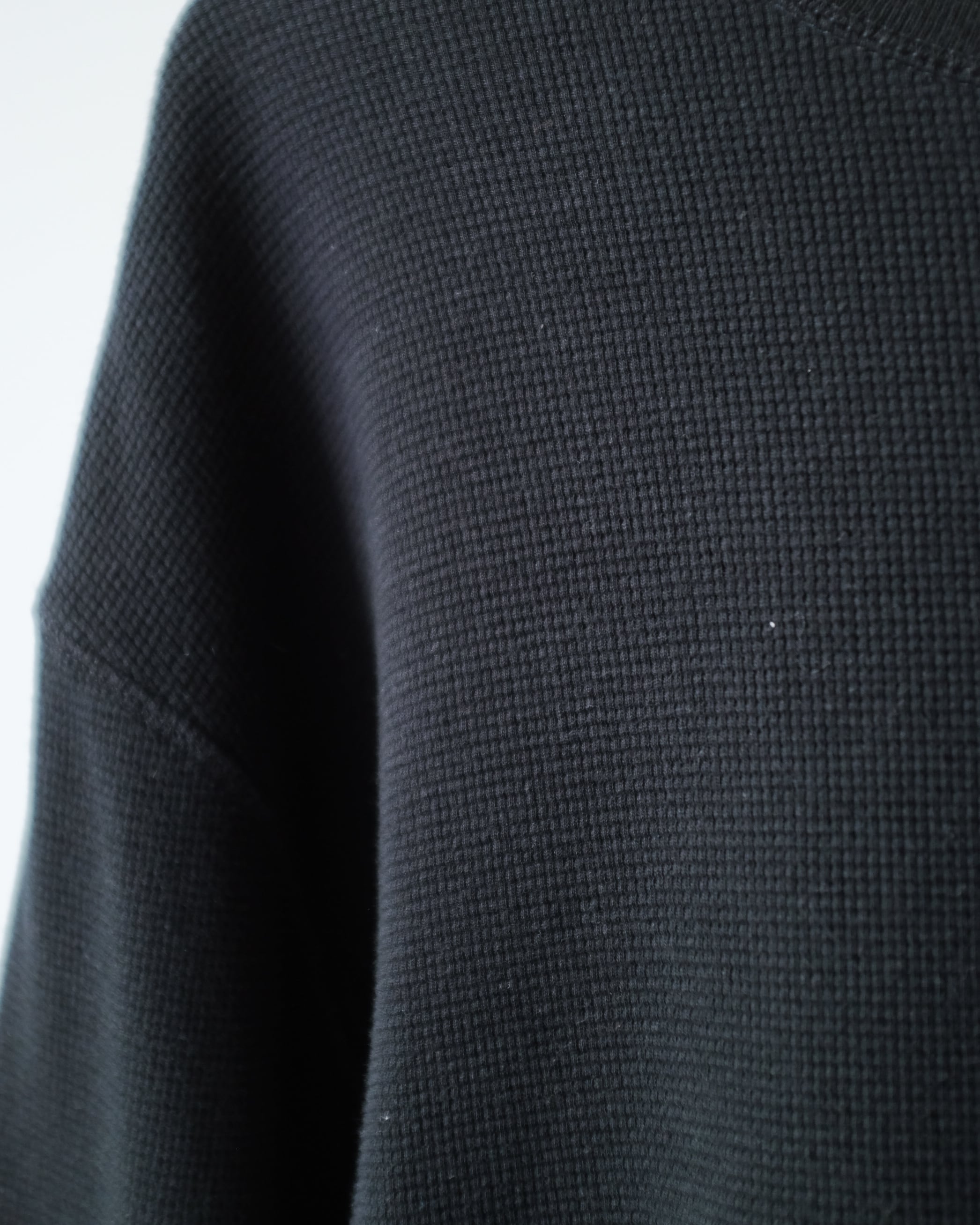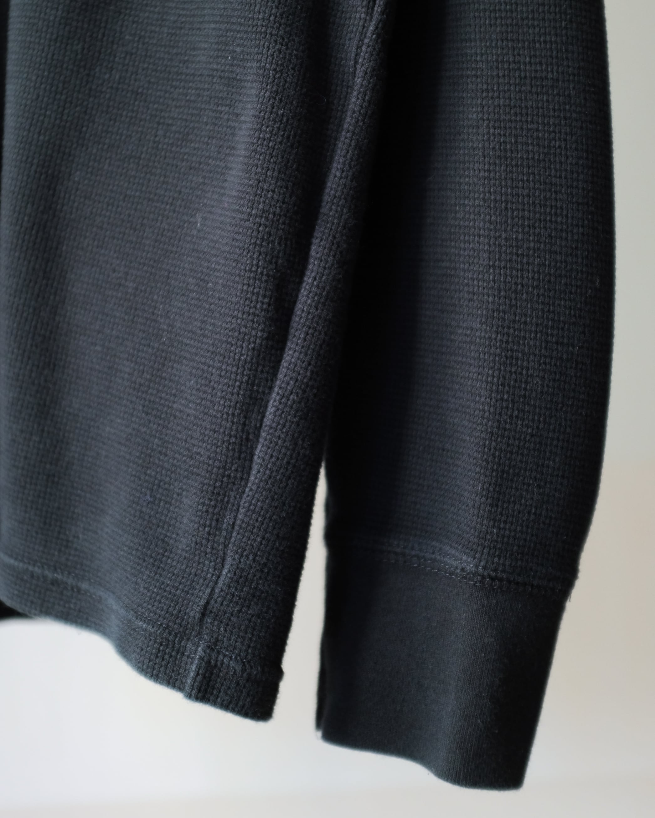 ボディはワッフル生地、袖はジャージー生地の切り替えになっていて、さりげなくアクセントを加えてくれます。