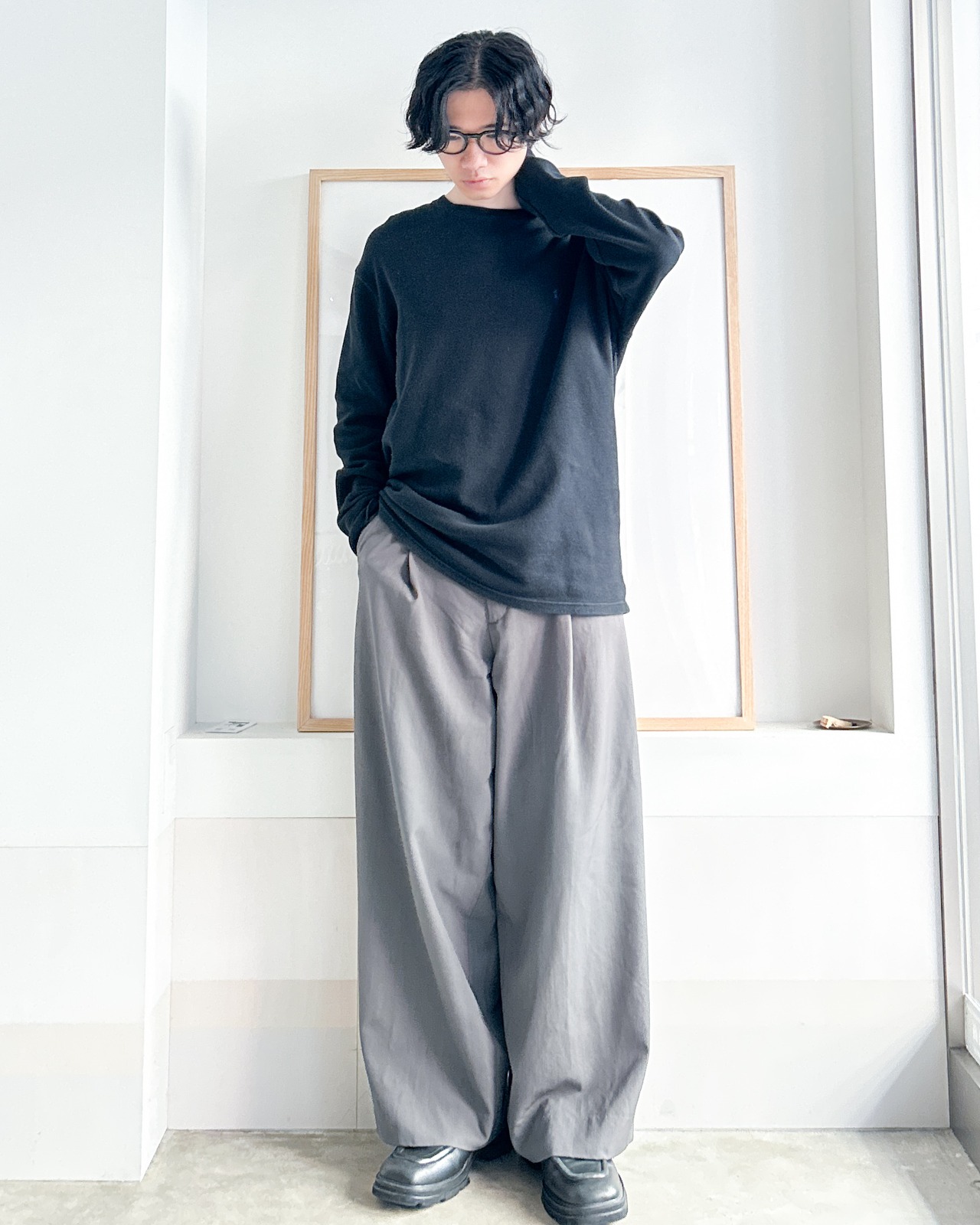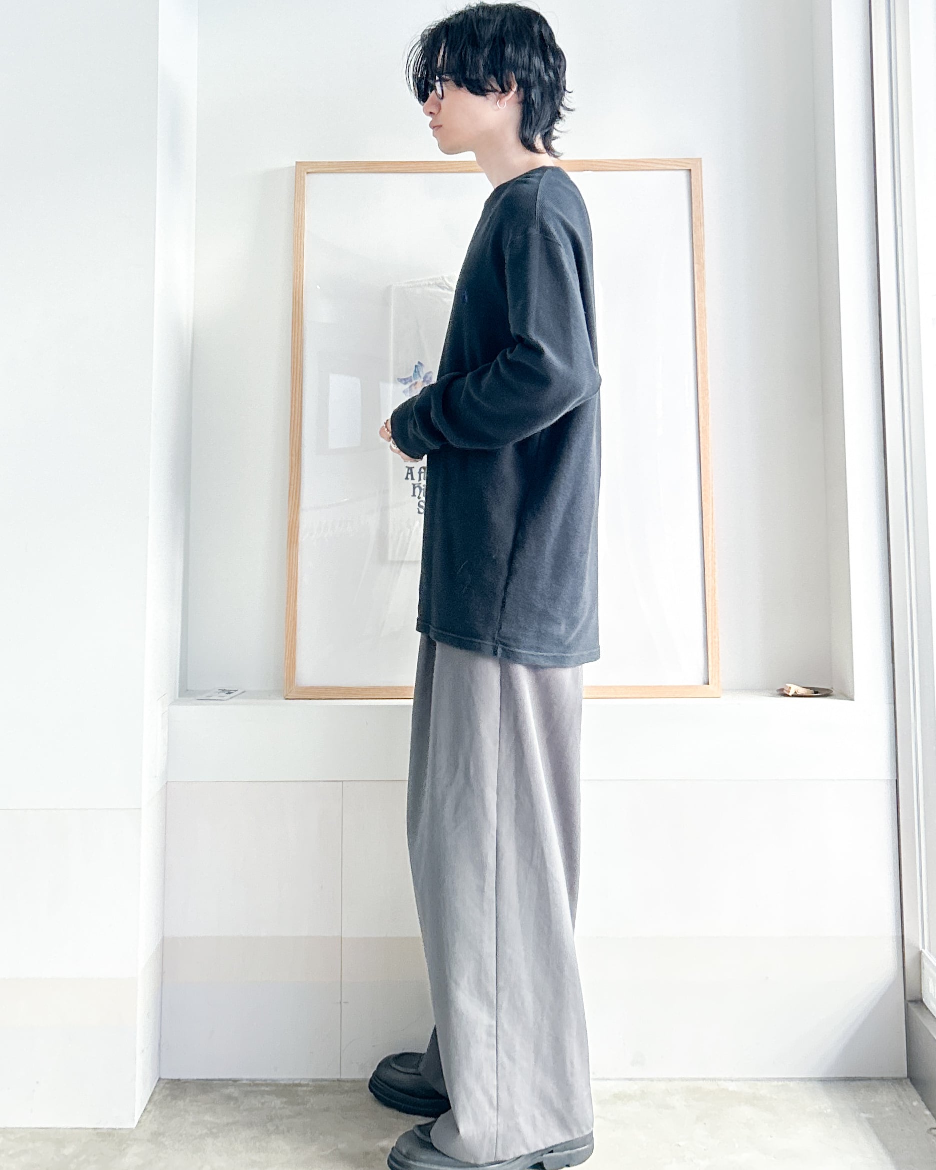 ロンTとして一枚で着るも良し、シャツやジャケット、コートのインナーとして着るも良しの万能アイテムです。