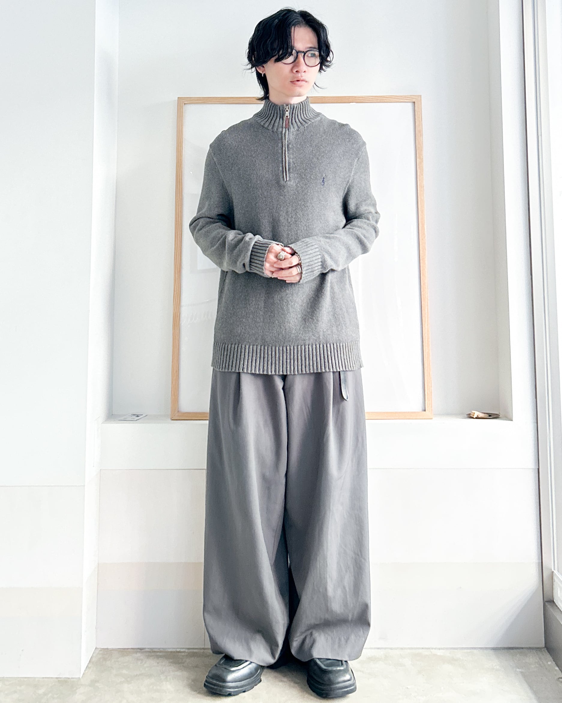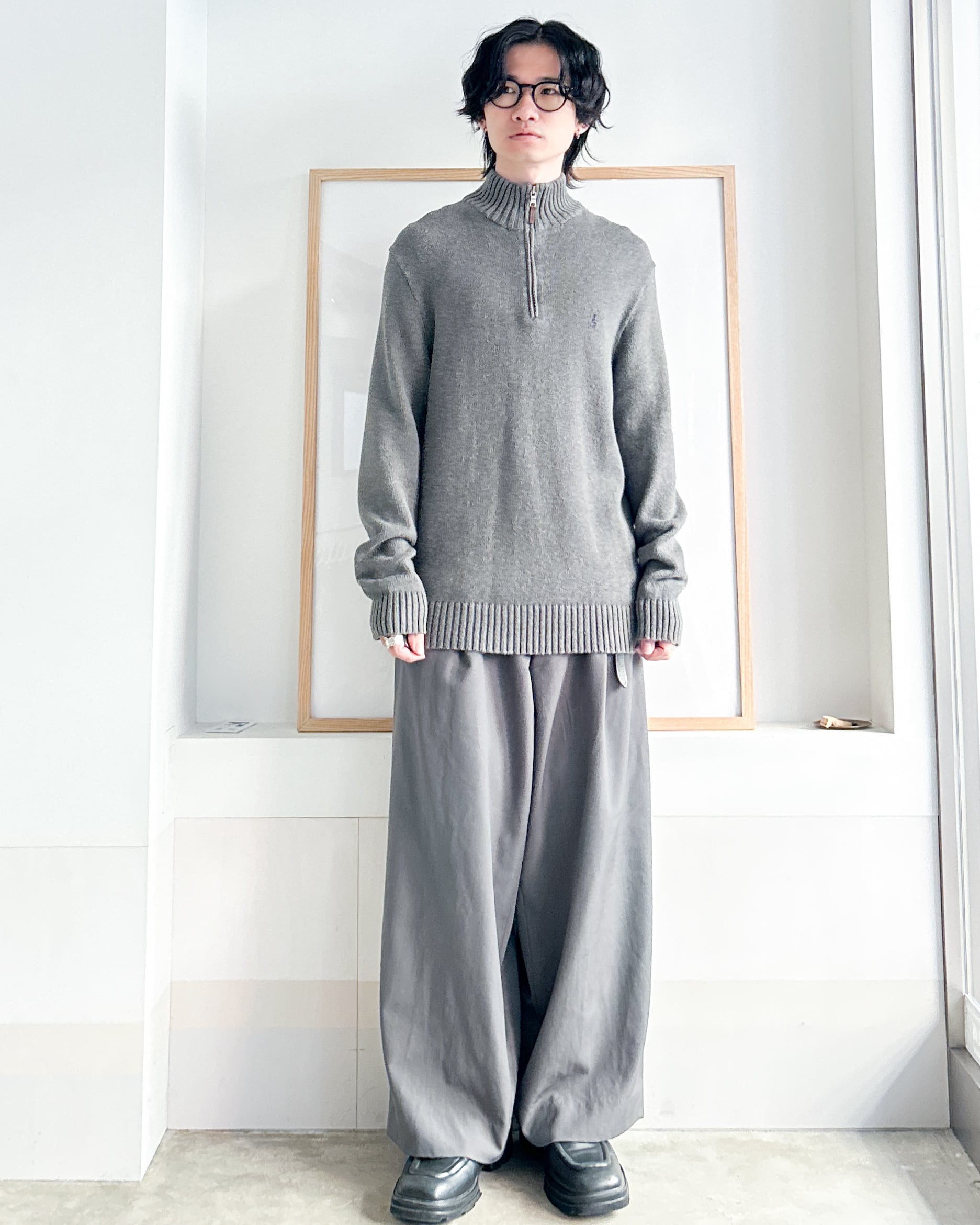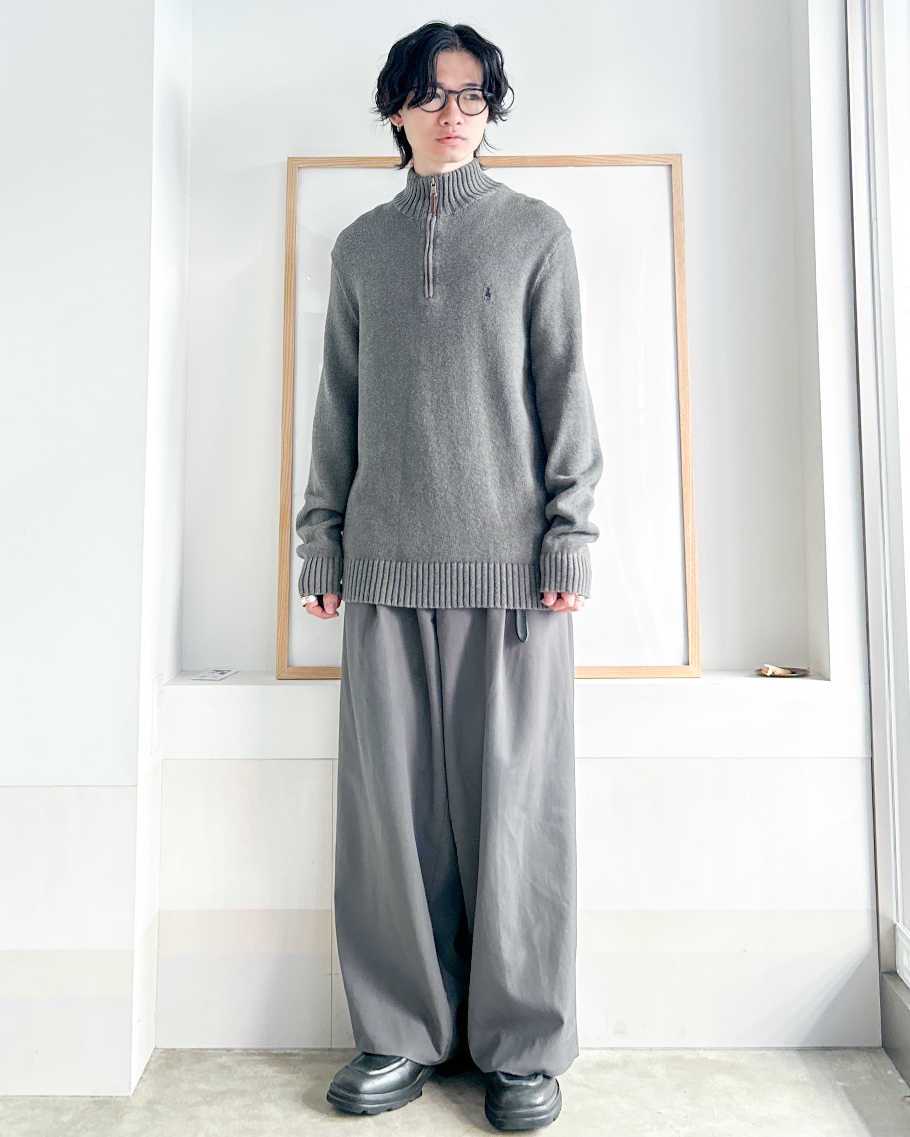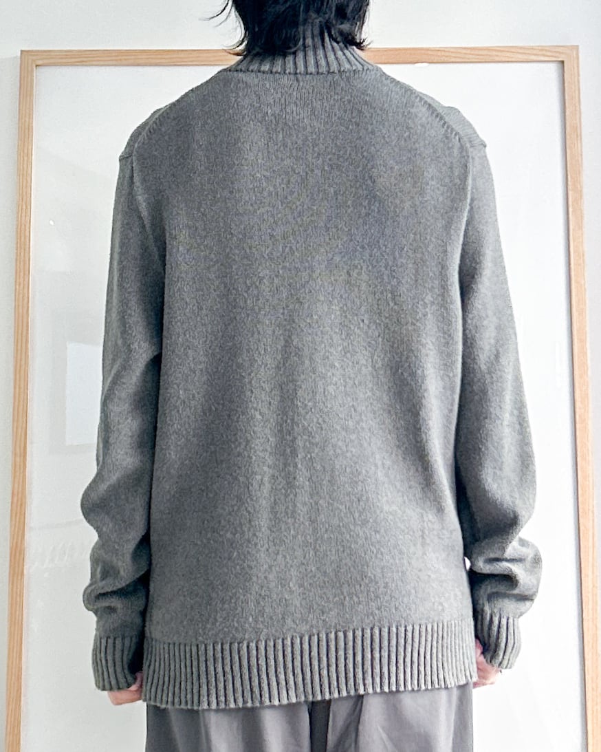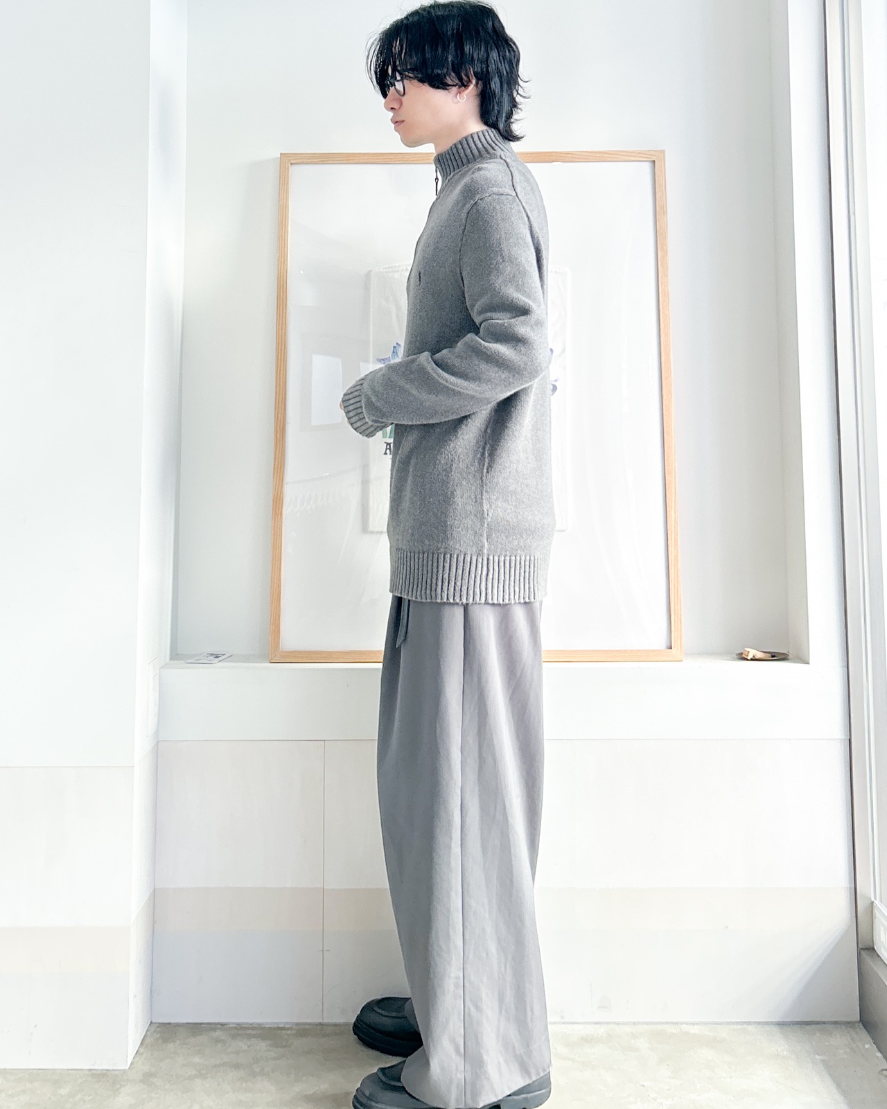 顔周りにあるZIPがアクセサリー代わりに機能してくれるハーフジップニット。