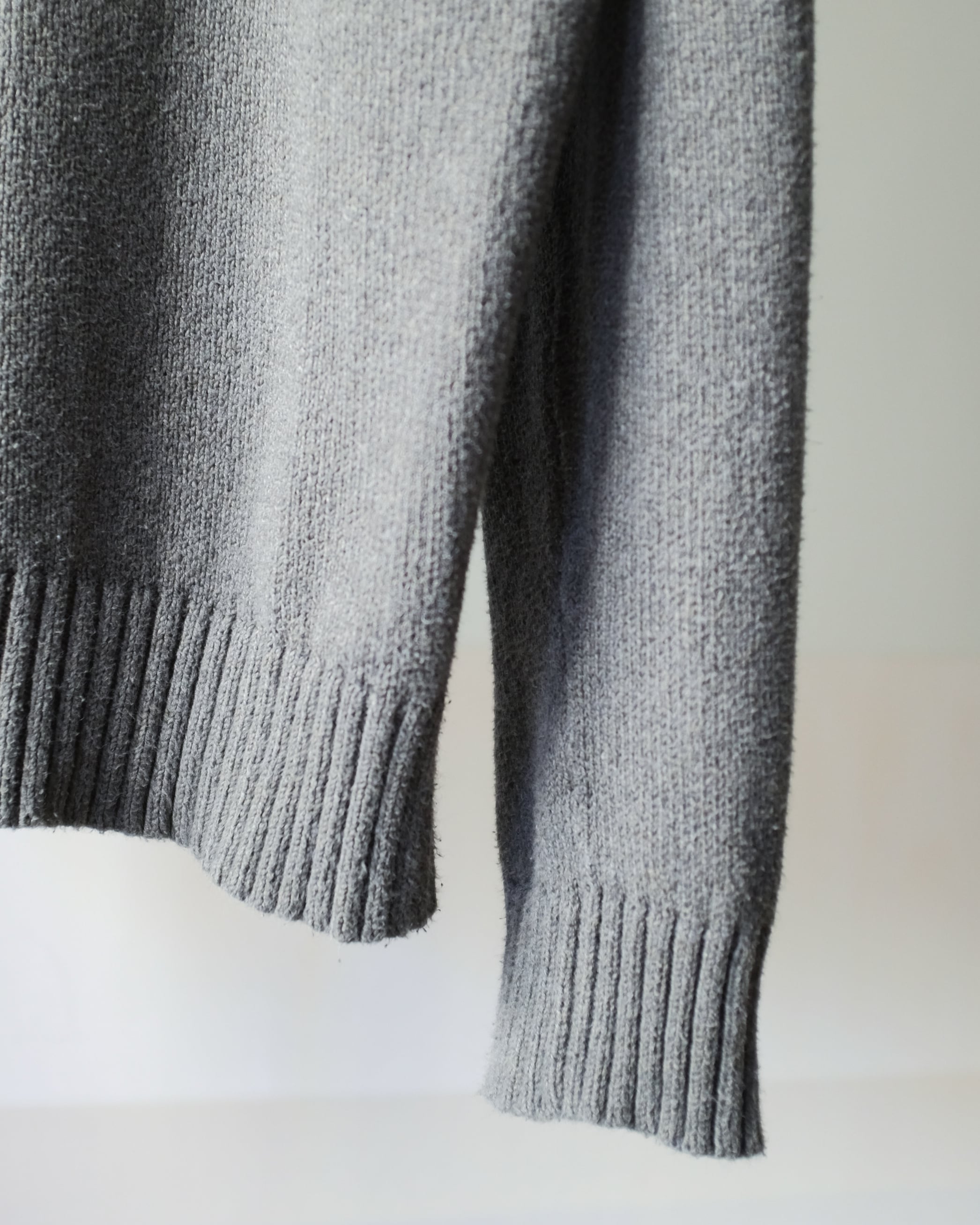 ミドルゲージのコットンニットで程よい厚みがあり、秋口から春までロングシーズン着用可能です。