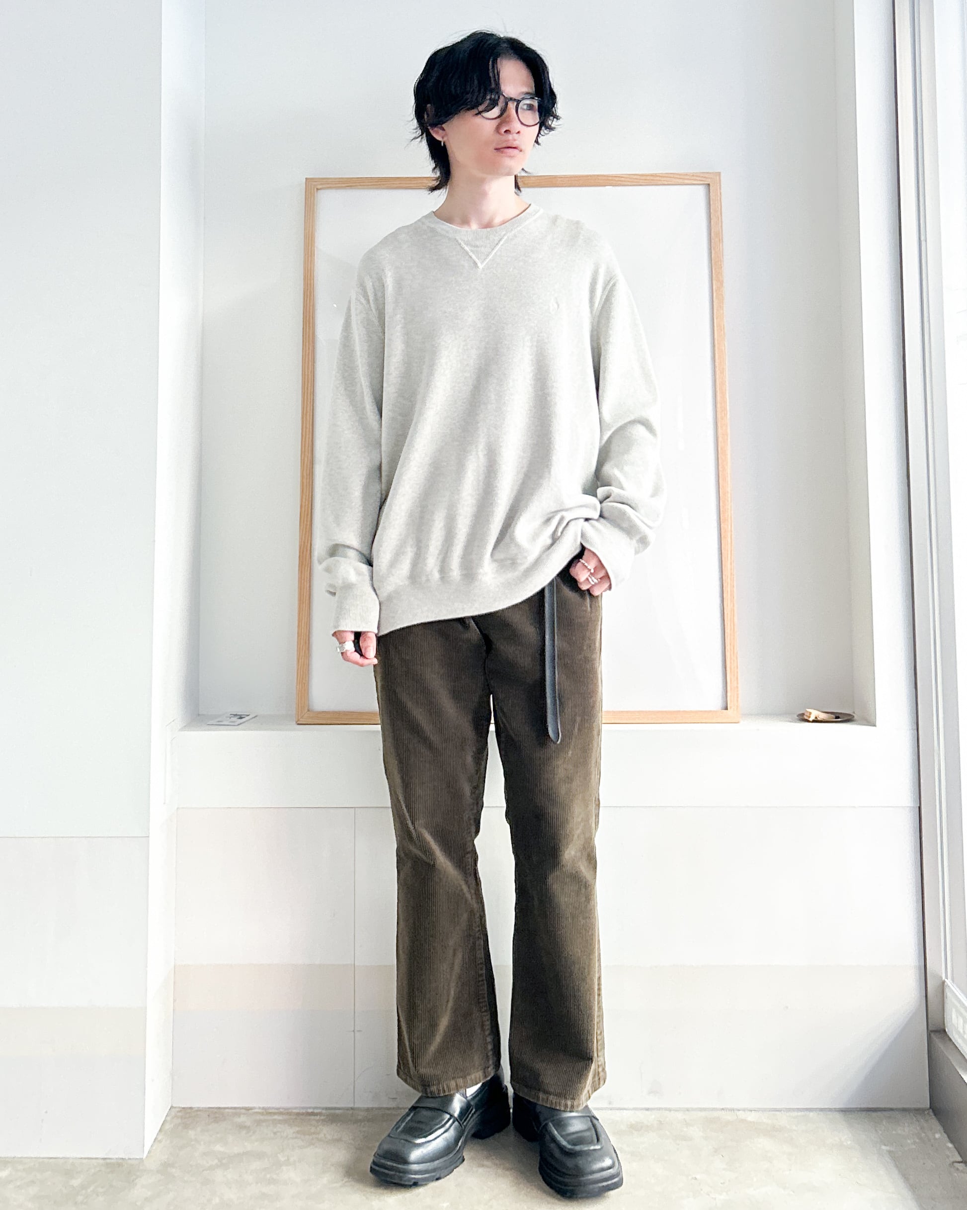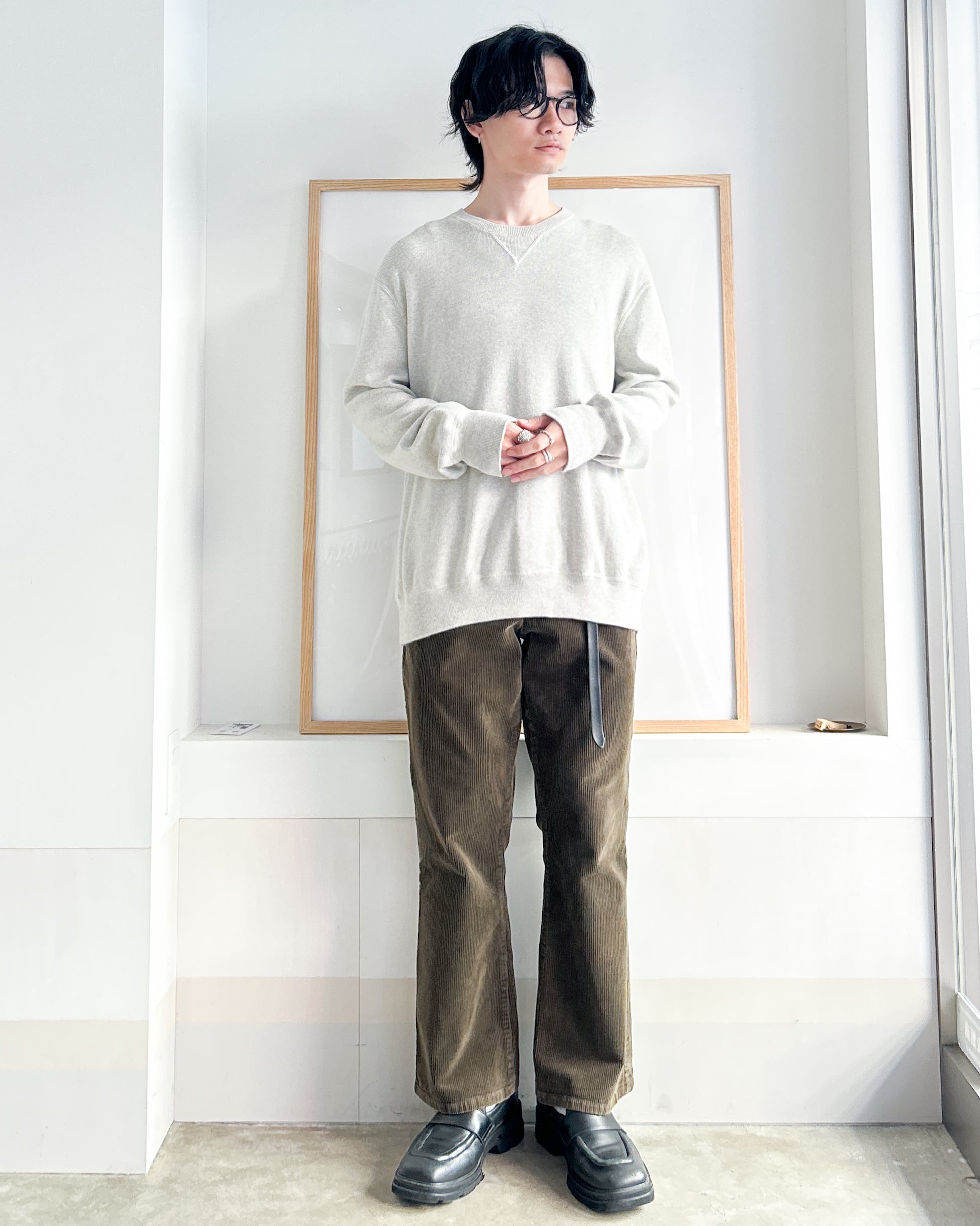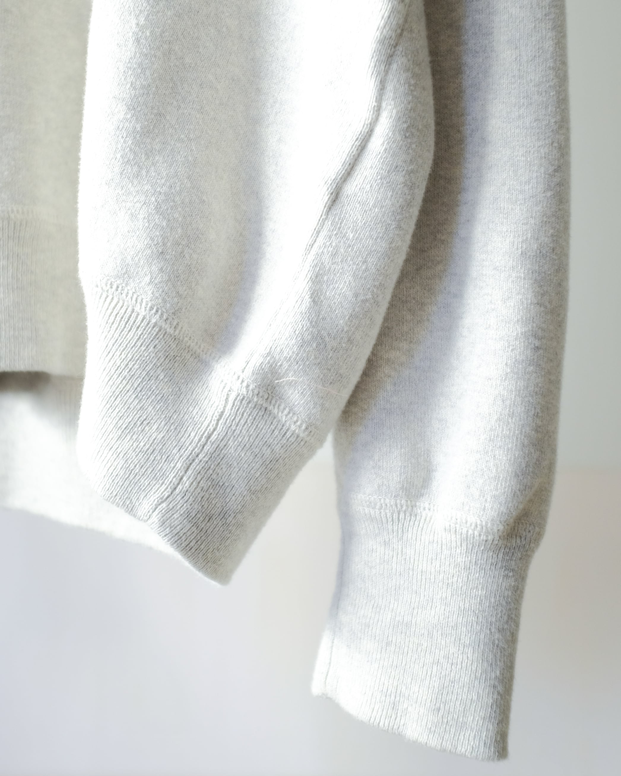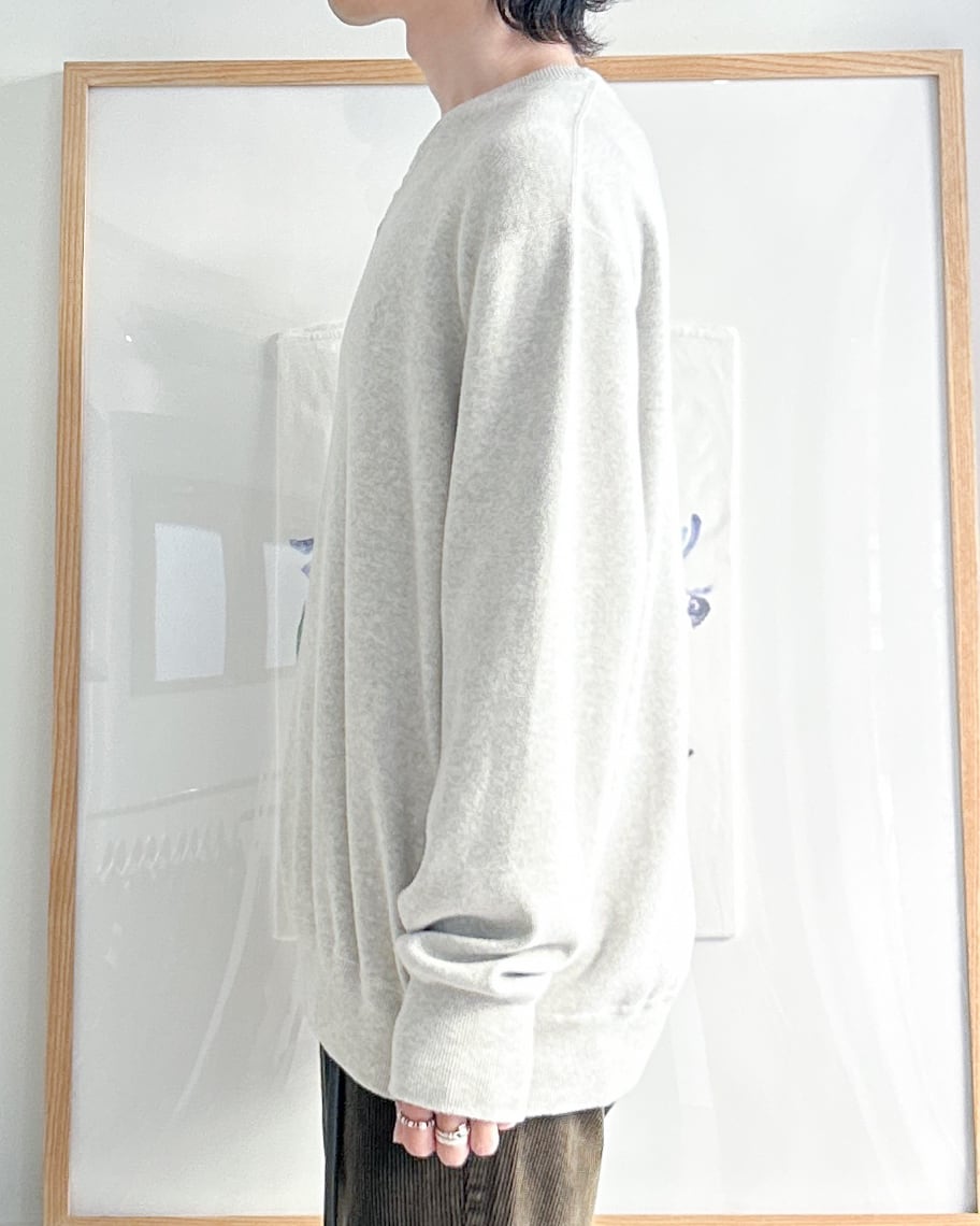スウェットのようなディテールでラフな雰囲気がありつつ、滑らかな落ち感のあるニット生地がきれいめな印象にしてくれます。