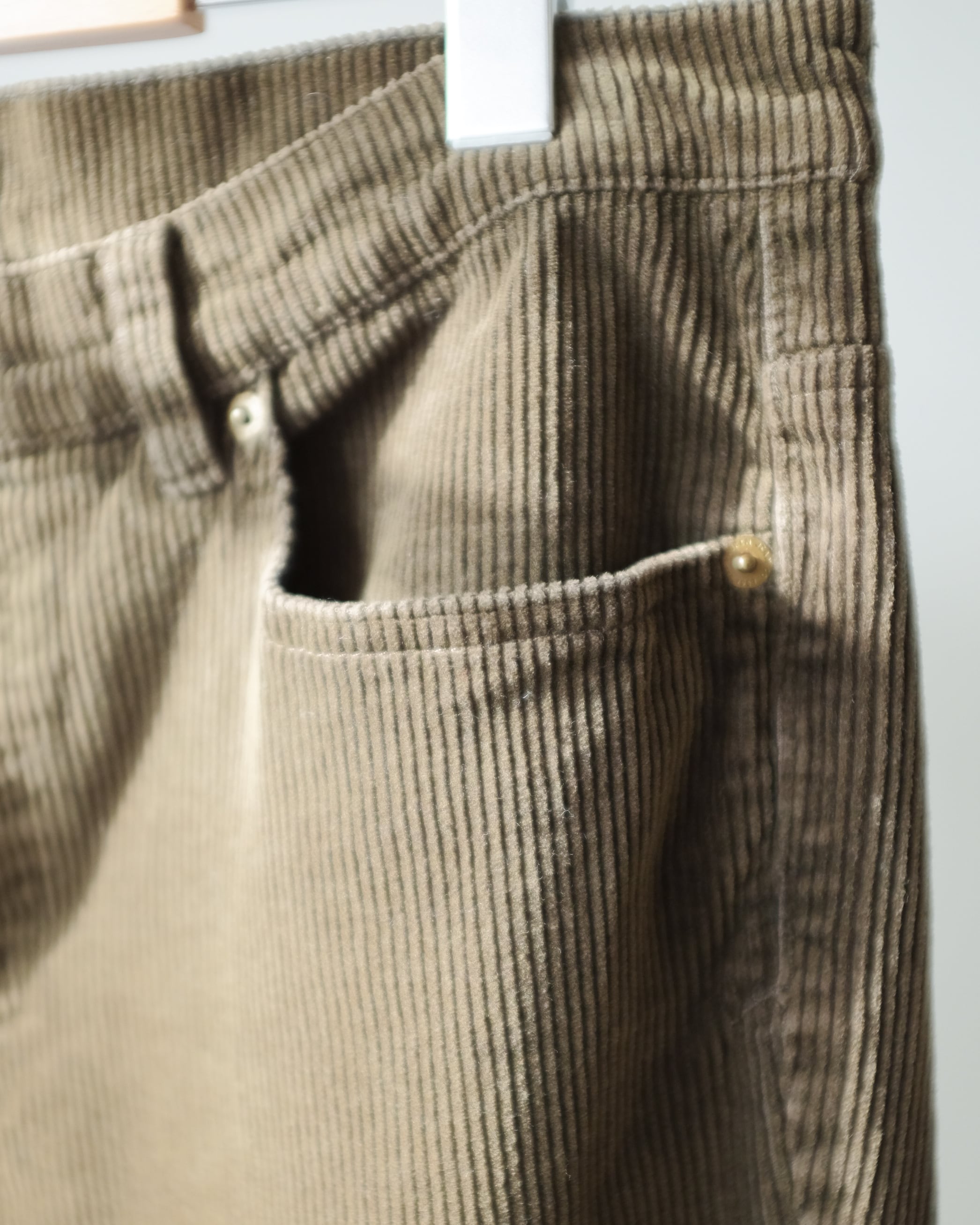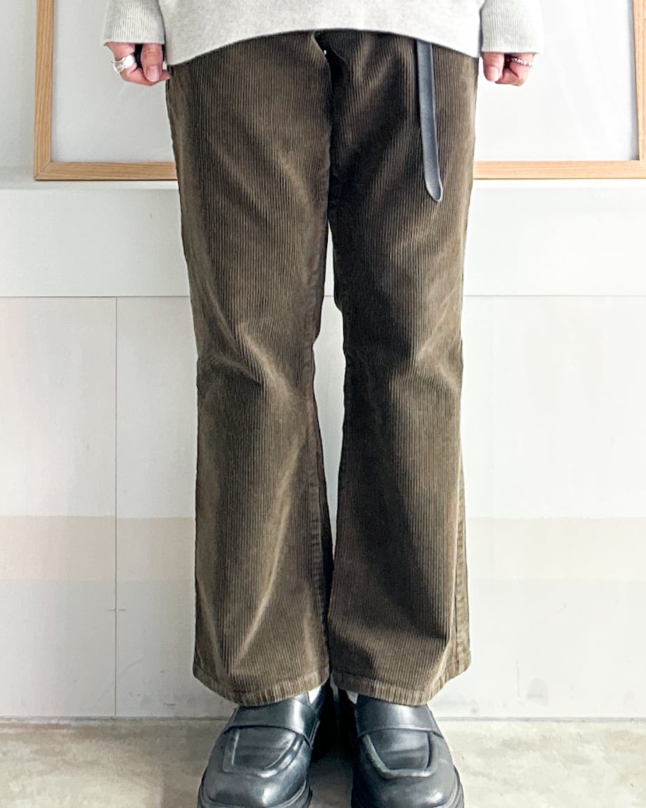 起毛感のある畝が特徴のコーデュロイパンツ。