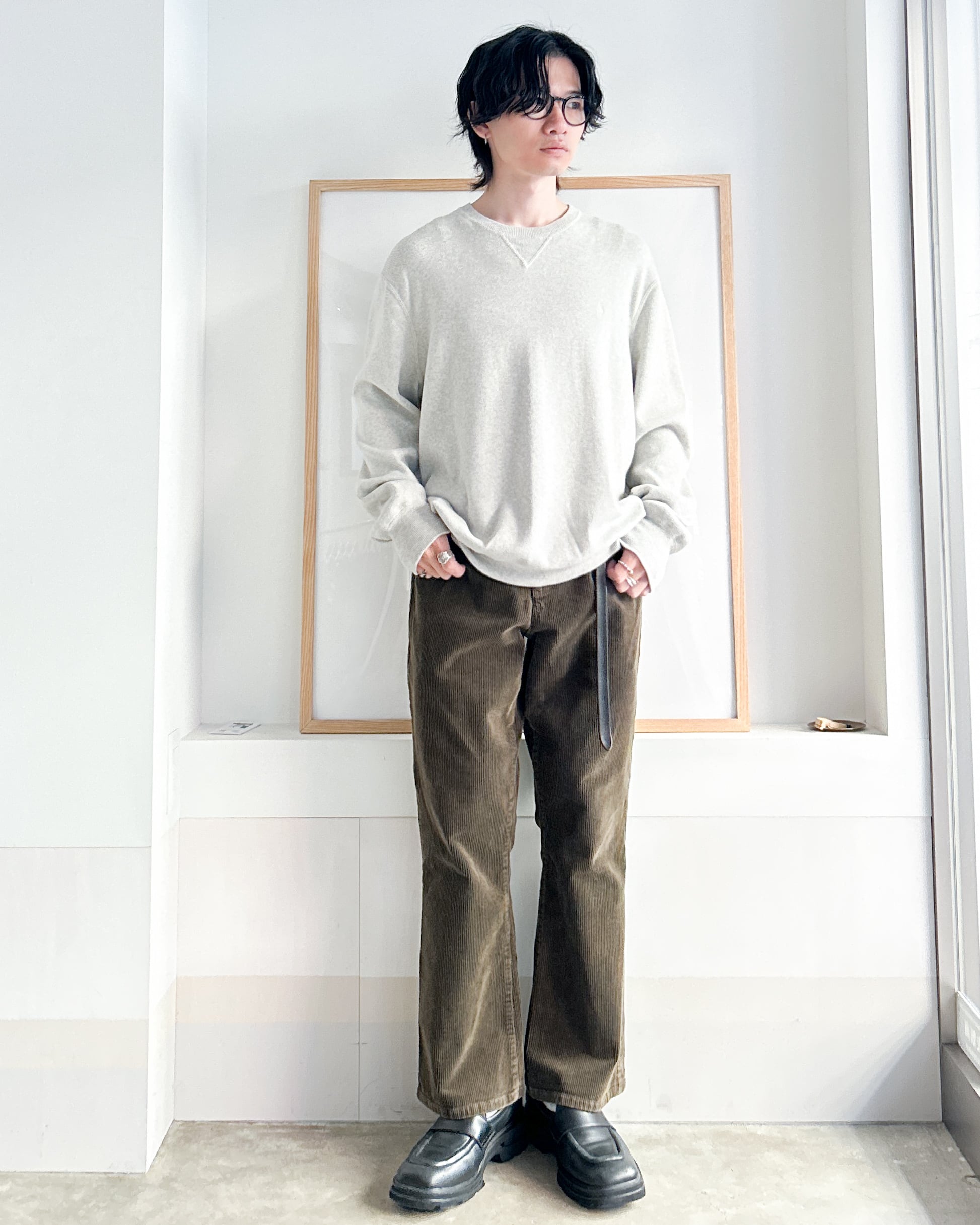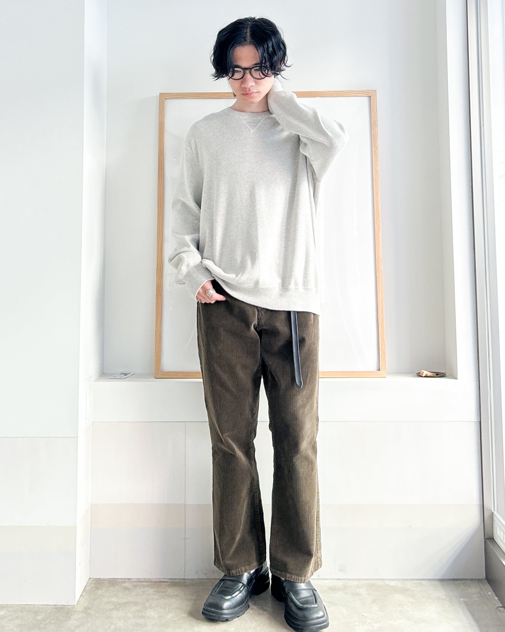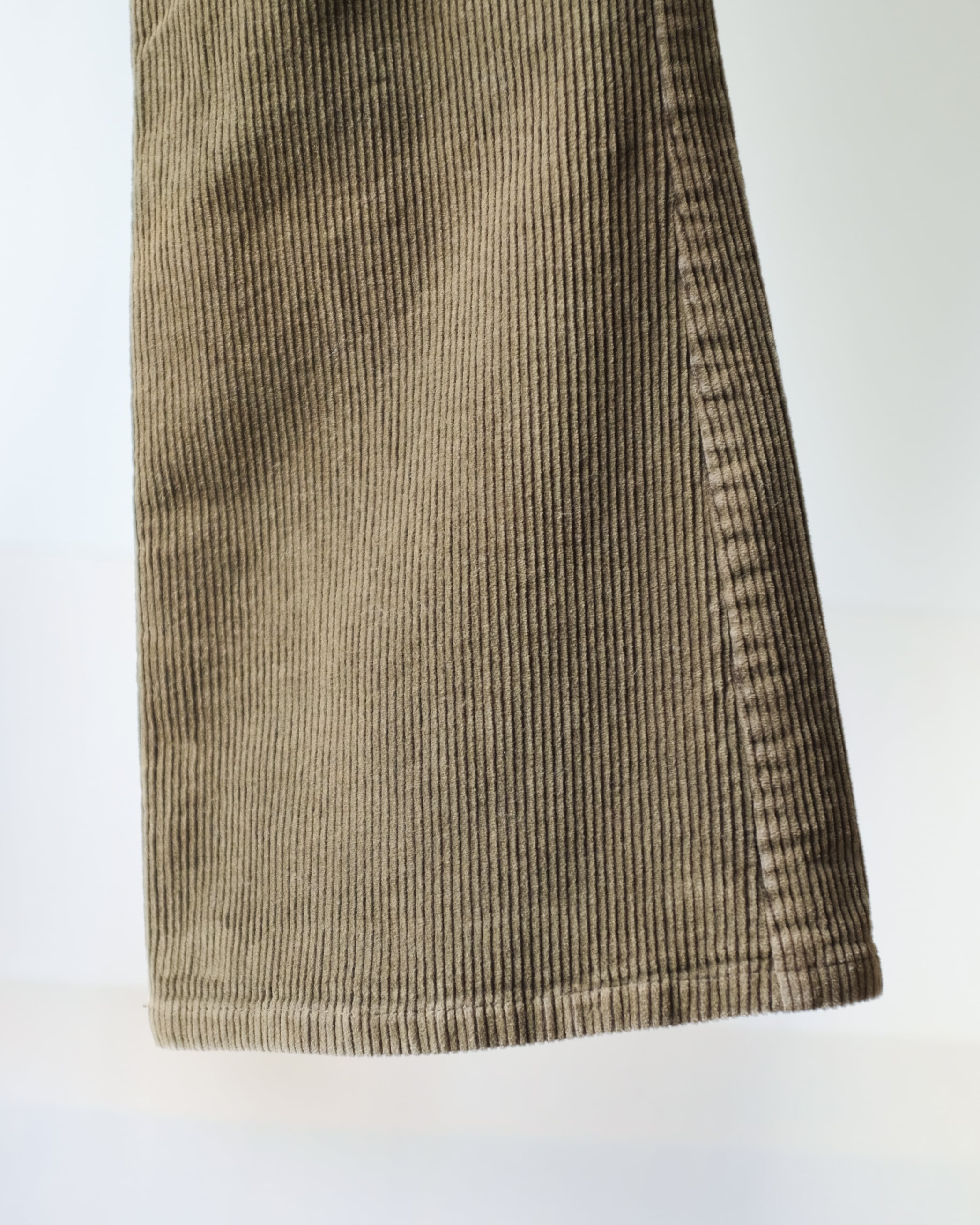 コーデュロイ特有のあたたかみのある質感と鈍い艶で表情を加えつつカジュアルすぎません。