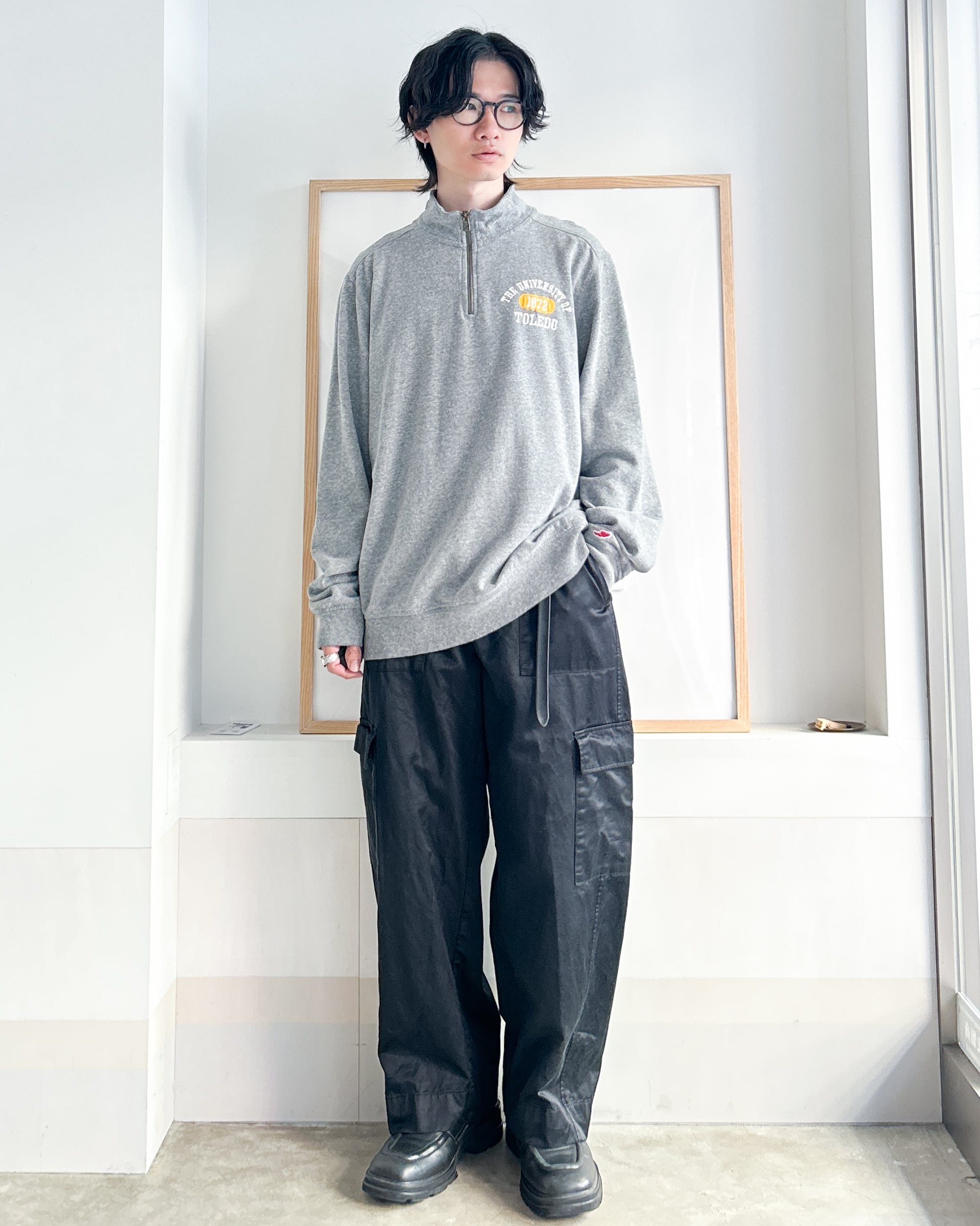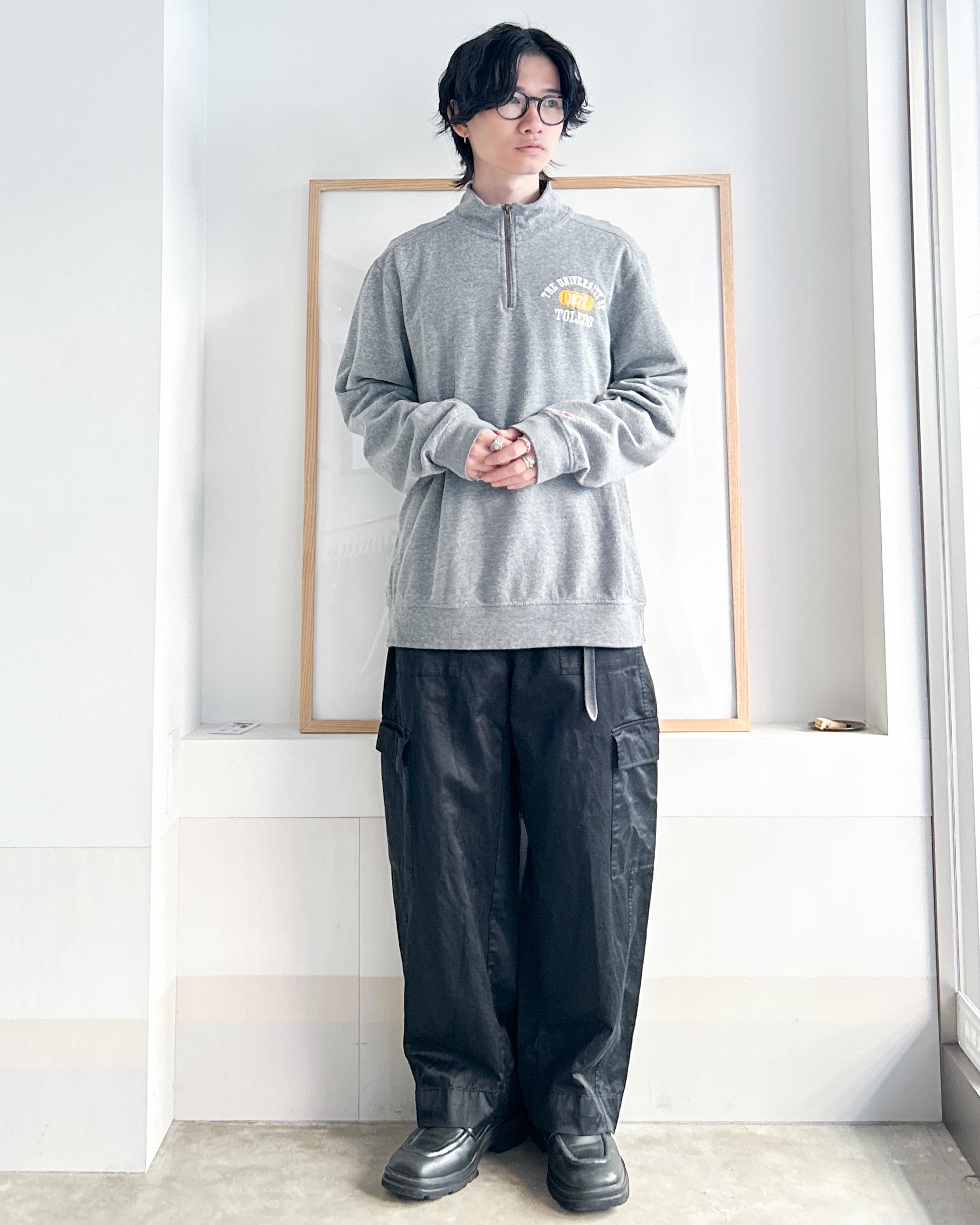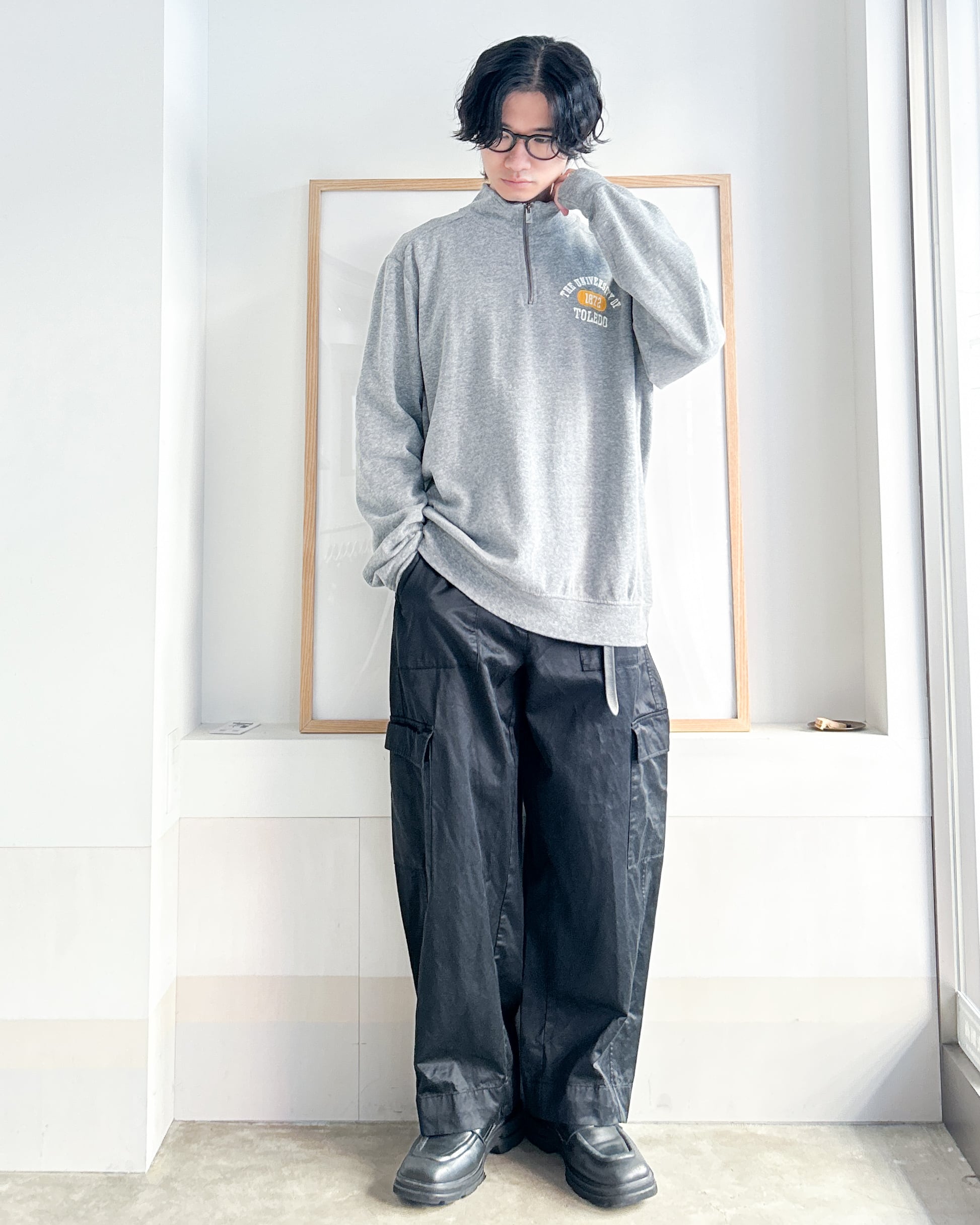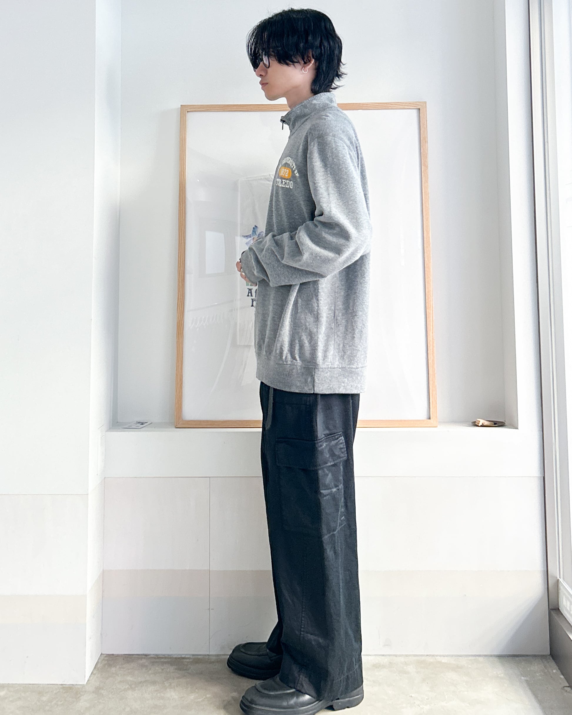 一般的なカーゴパンツより上品な素材感とワイドシルエットで無骨な印象とファッショナブルな雰囲気が両立されています。