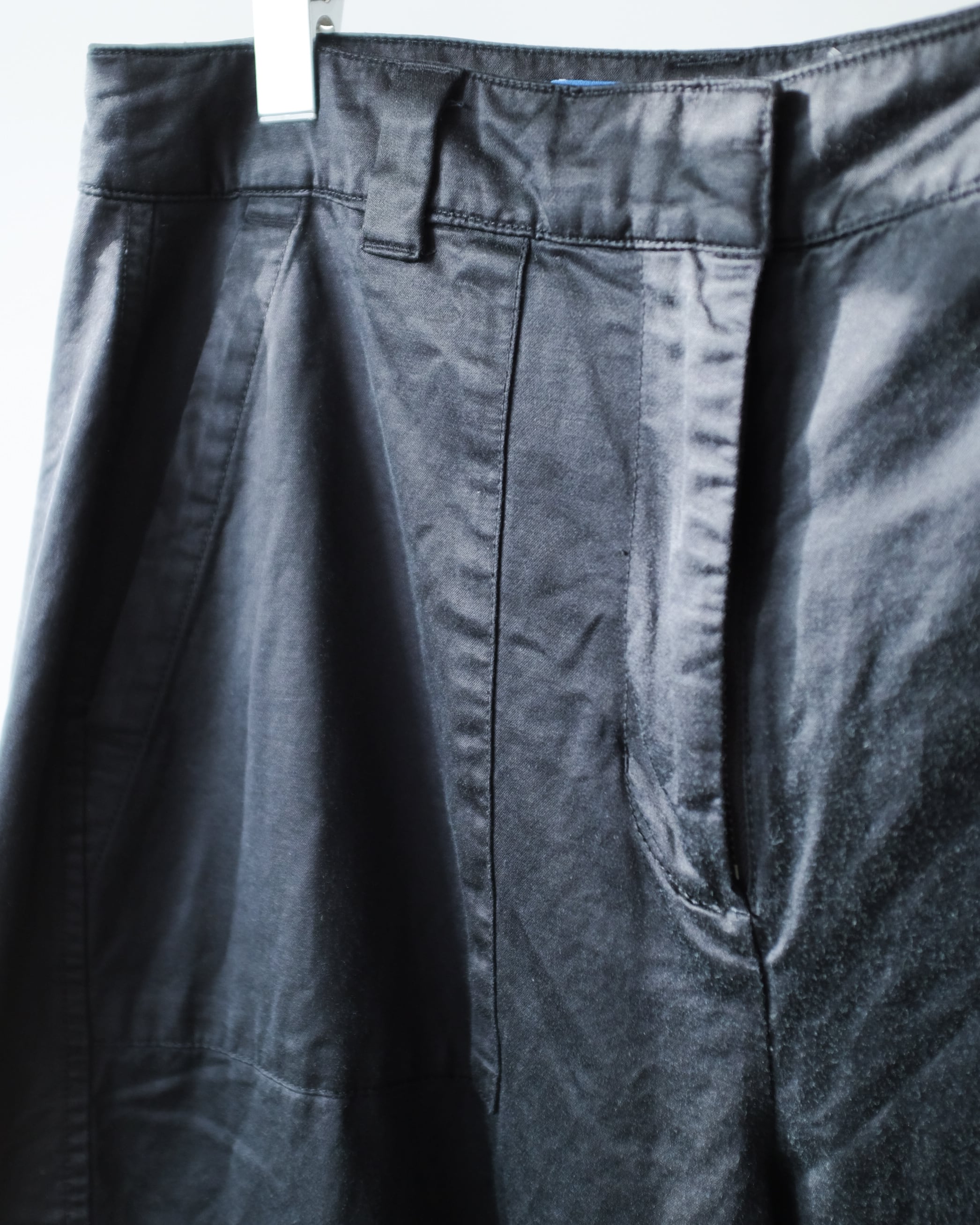 たっぷりしたシルエットですが股下が長すぎず、ウエストも後ろにゴムが入っているので幅広い体型の方に着用していただけます。