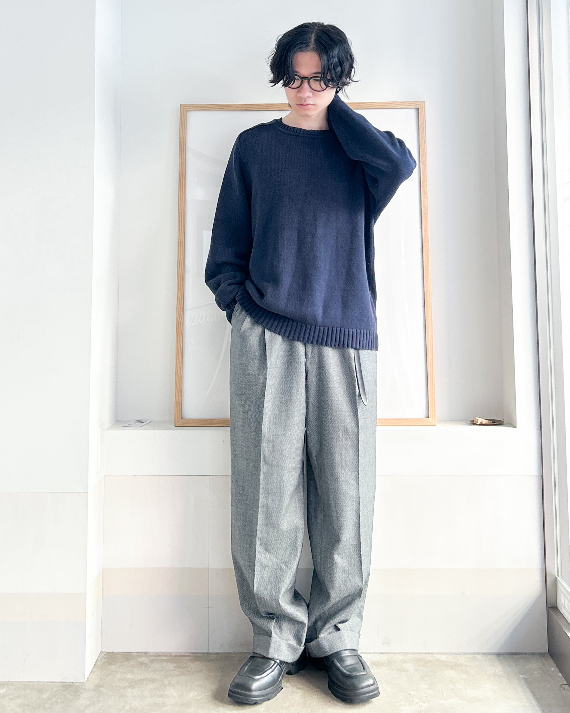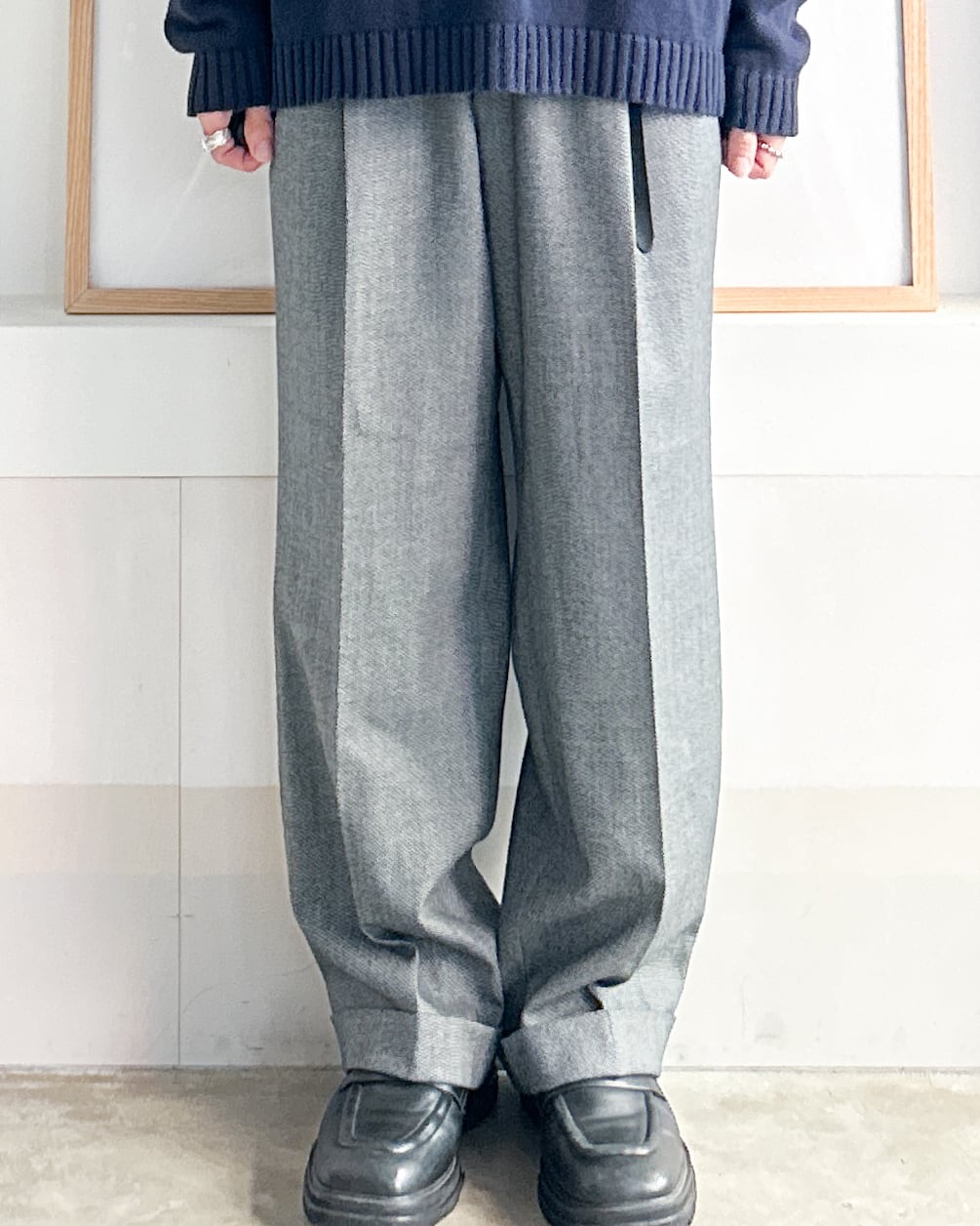 ゆったりしたシルエットと綺麗なドレープ感が特徴のスラックス。
