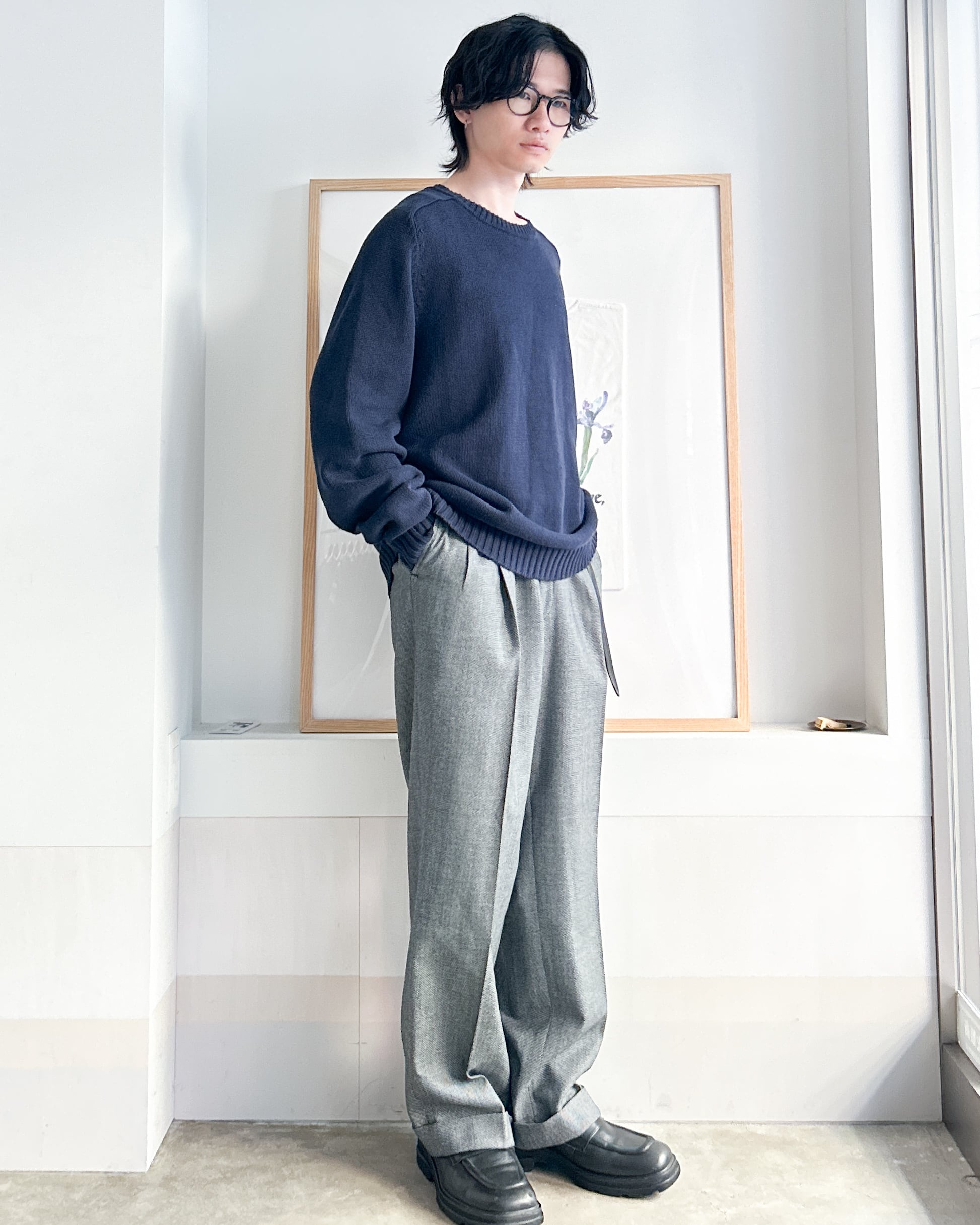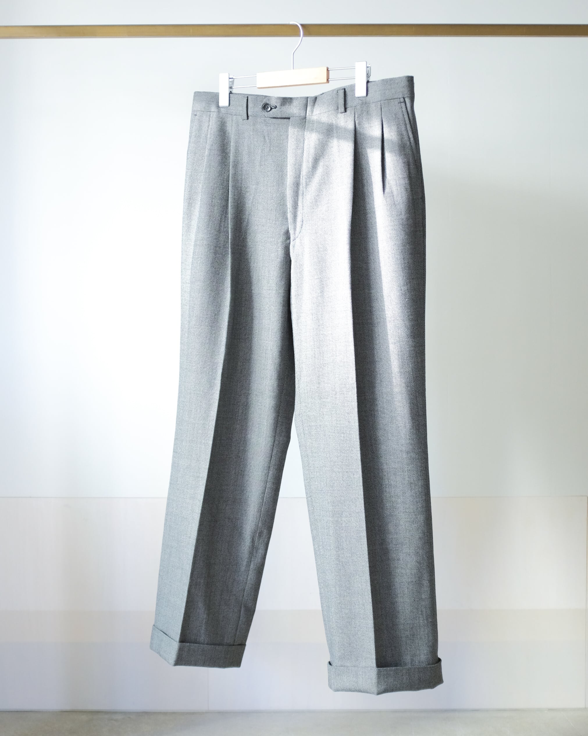 2タックのゆったりした腰回りから裾に向かって少しテーパードしたシルエットは脚のラインをカバーしてすっきりと綺麗に見せてくれます。