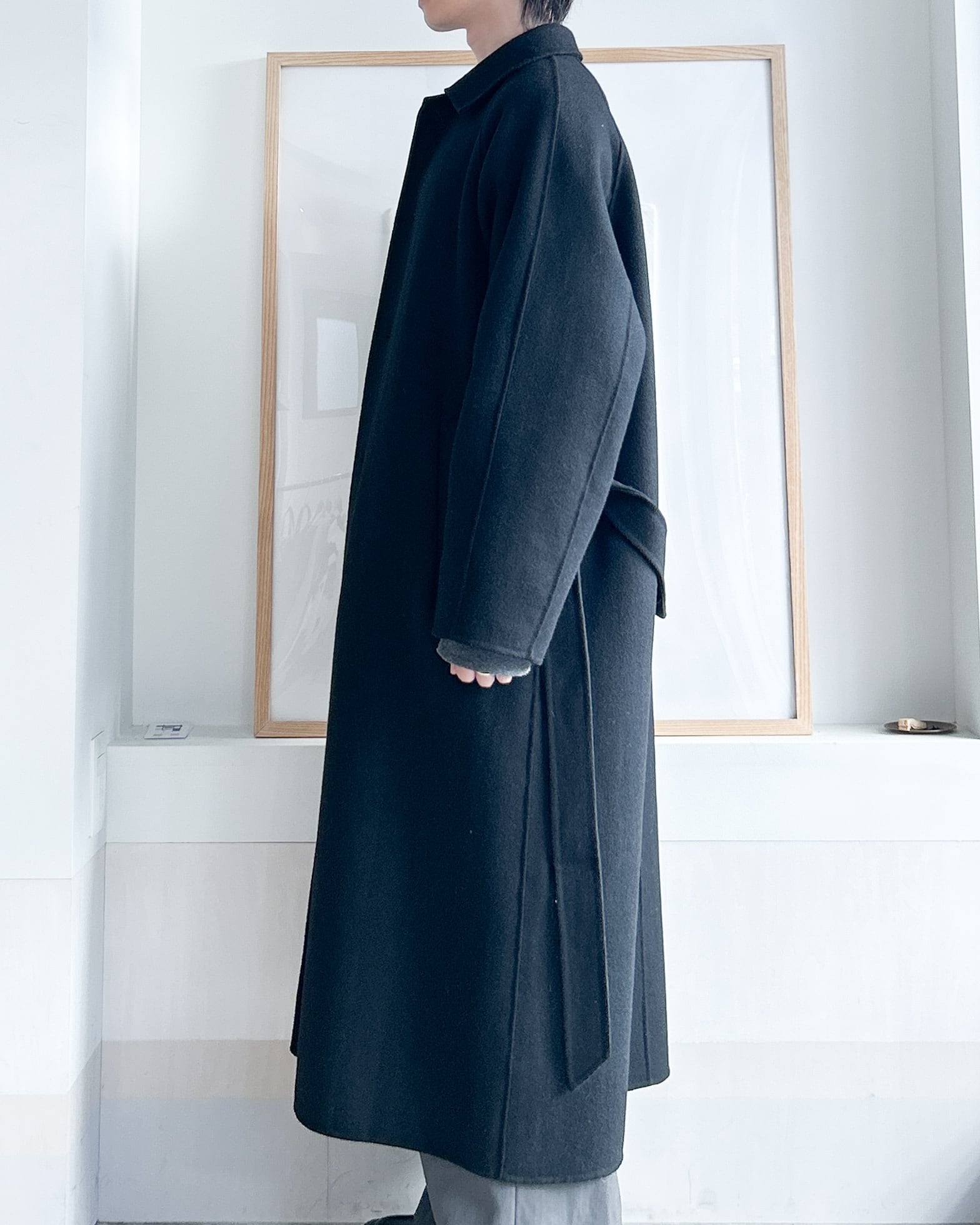 シンプルなデザインのステンカラーコート。