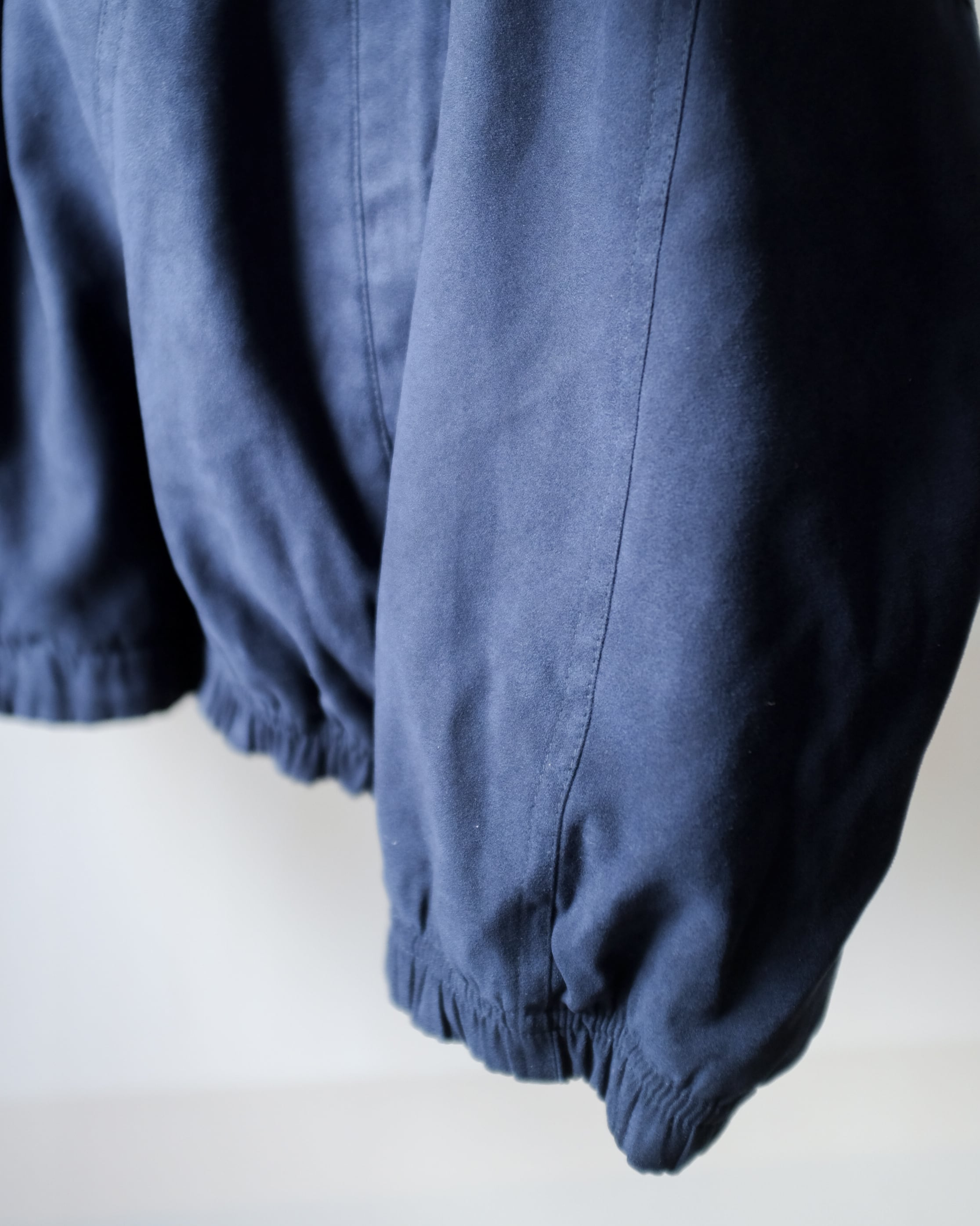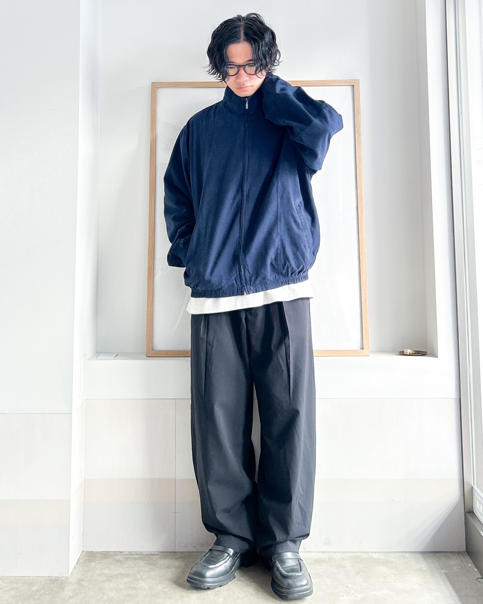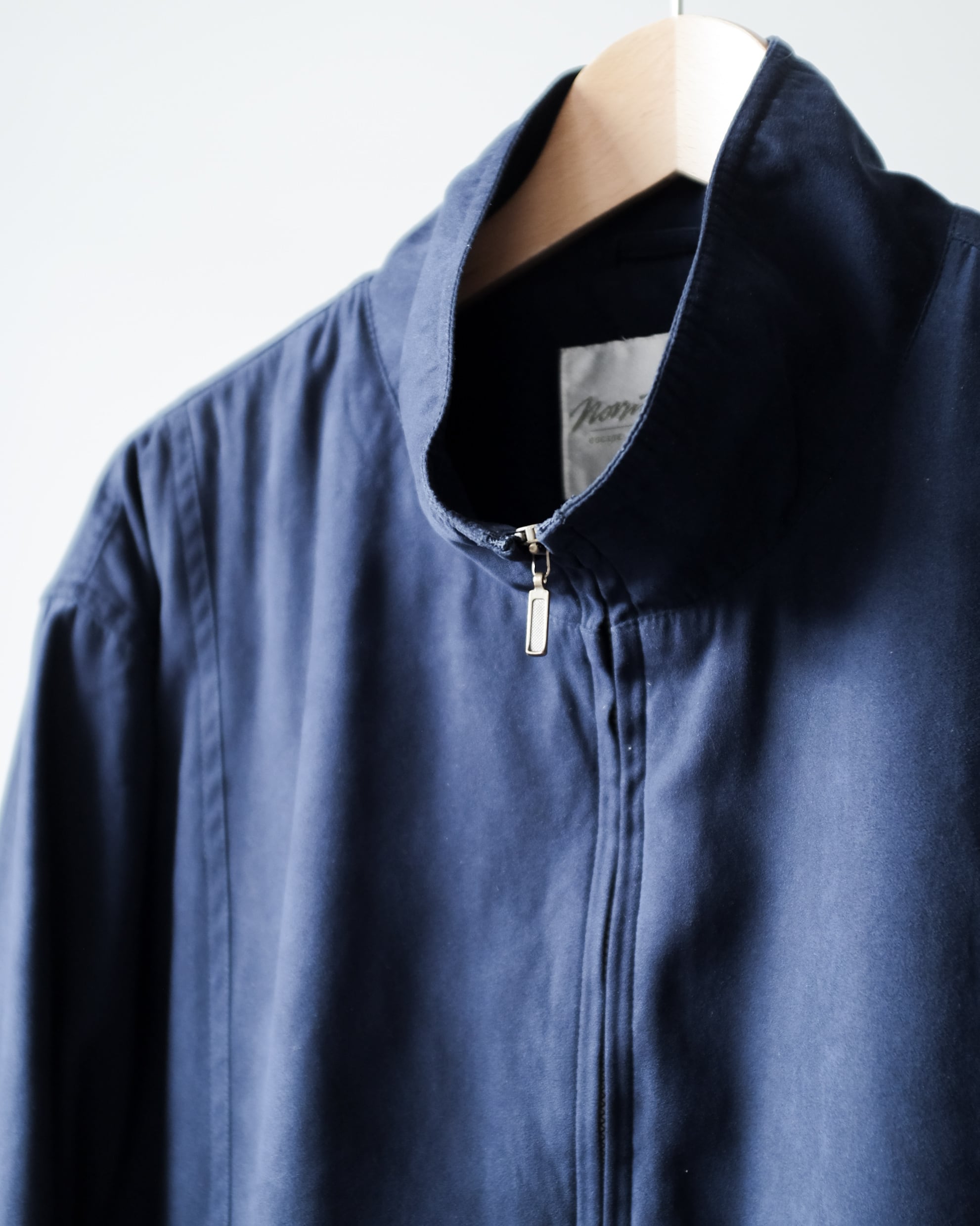 スウェード調の起毛した生地を使用したスタンドカラーブルゾン。
