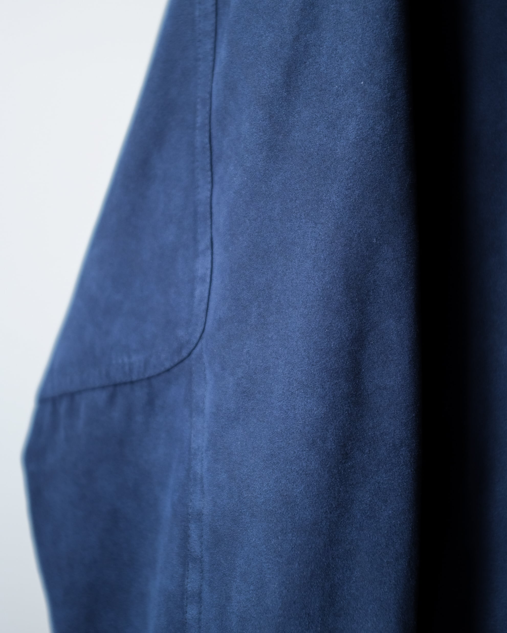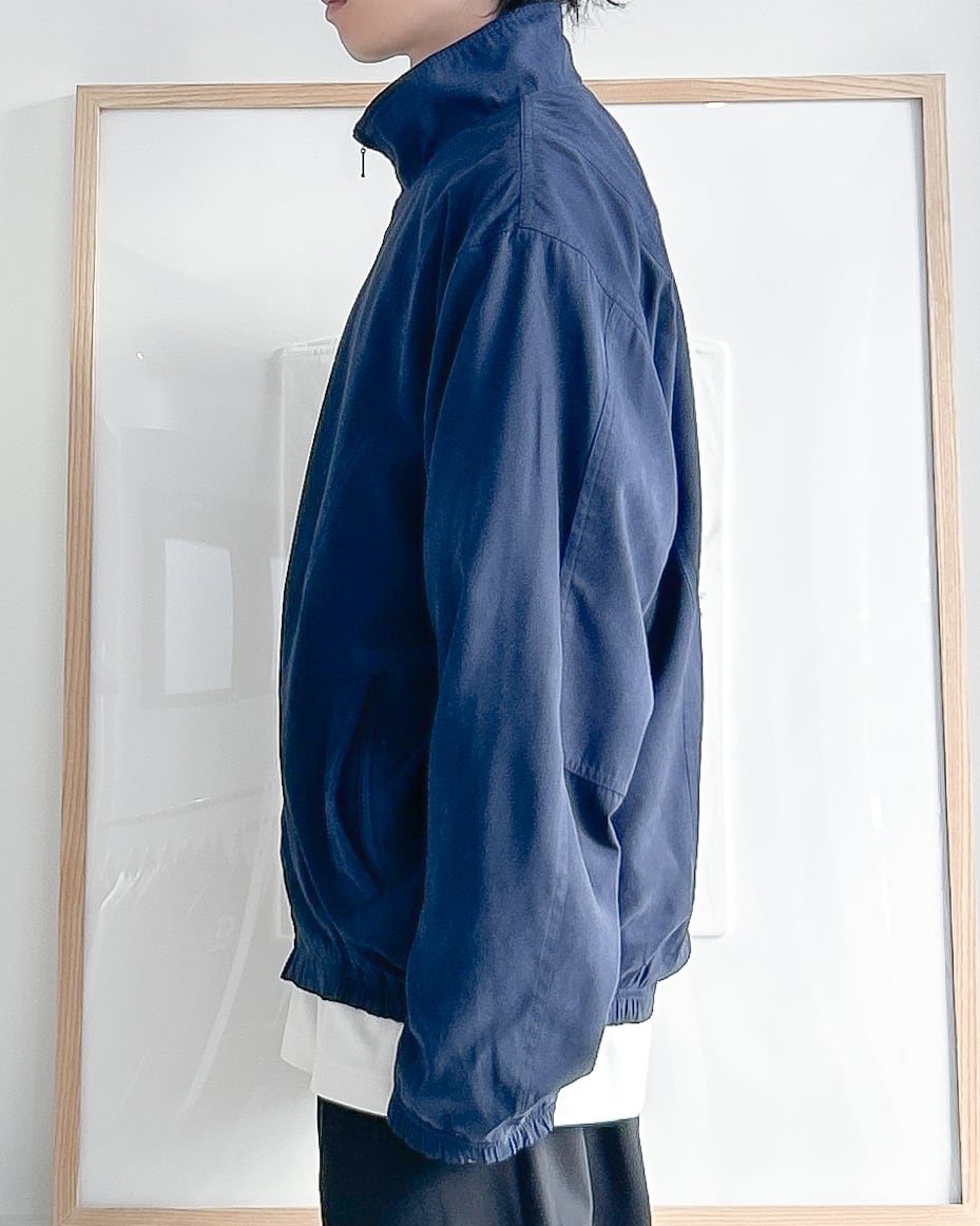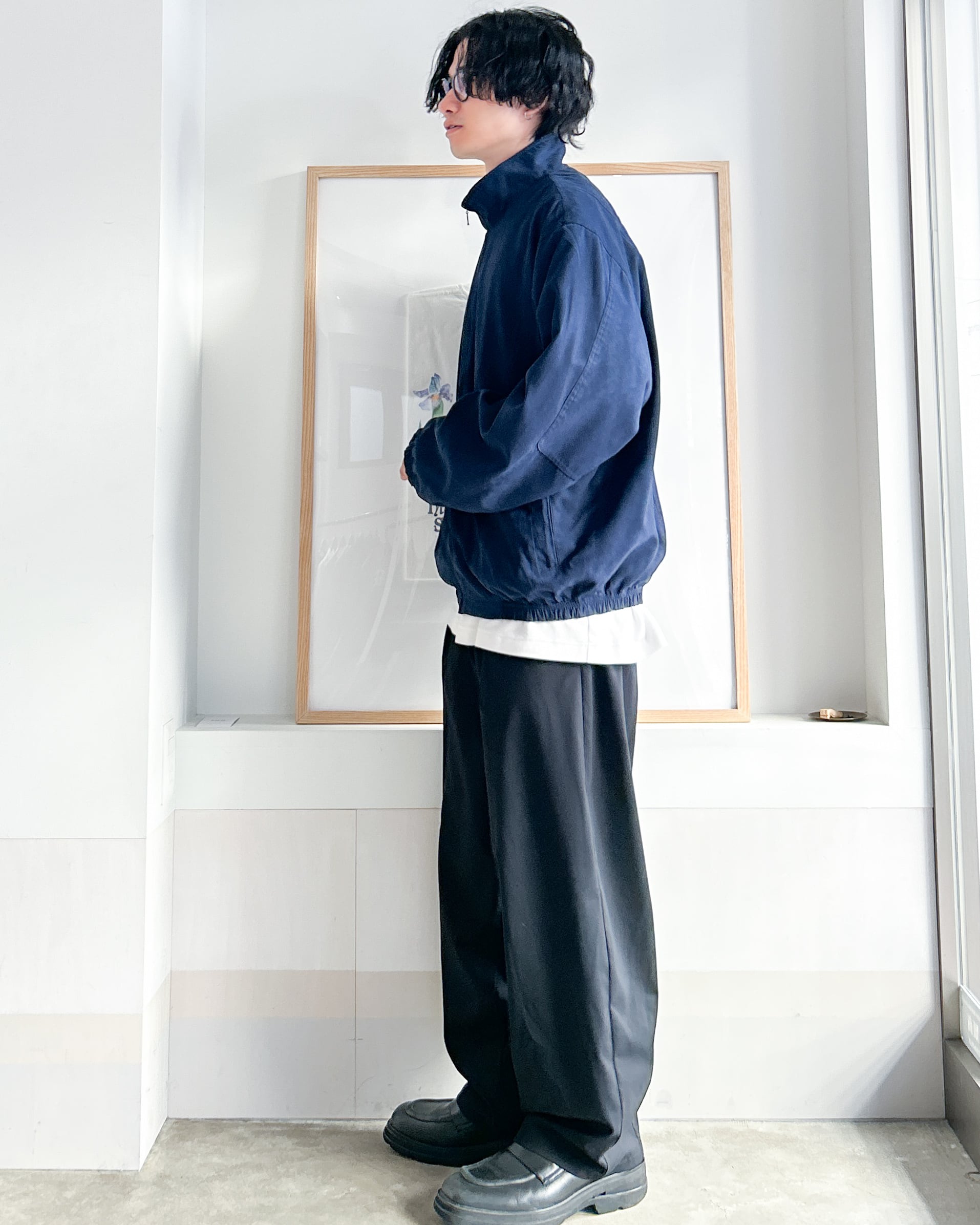 スウェード調の起毛した生地を使用したスタンドカラーブルゾン。