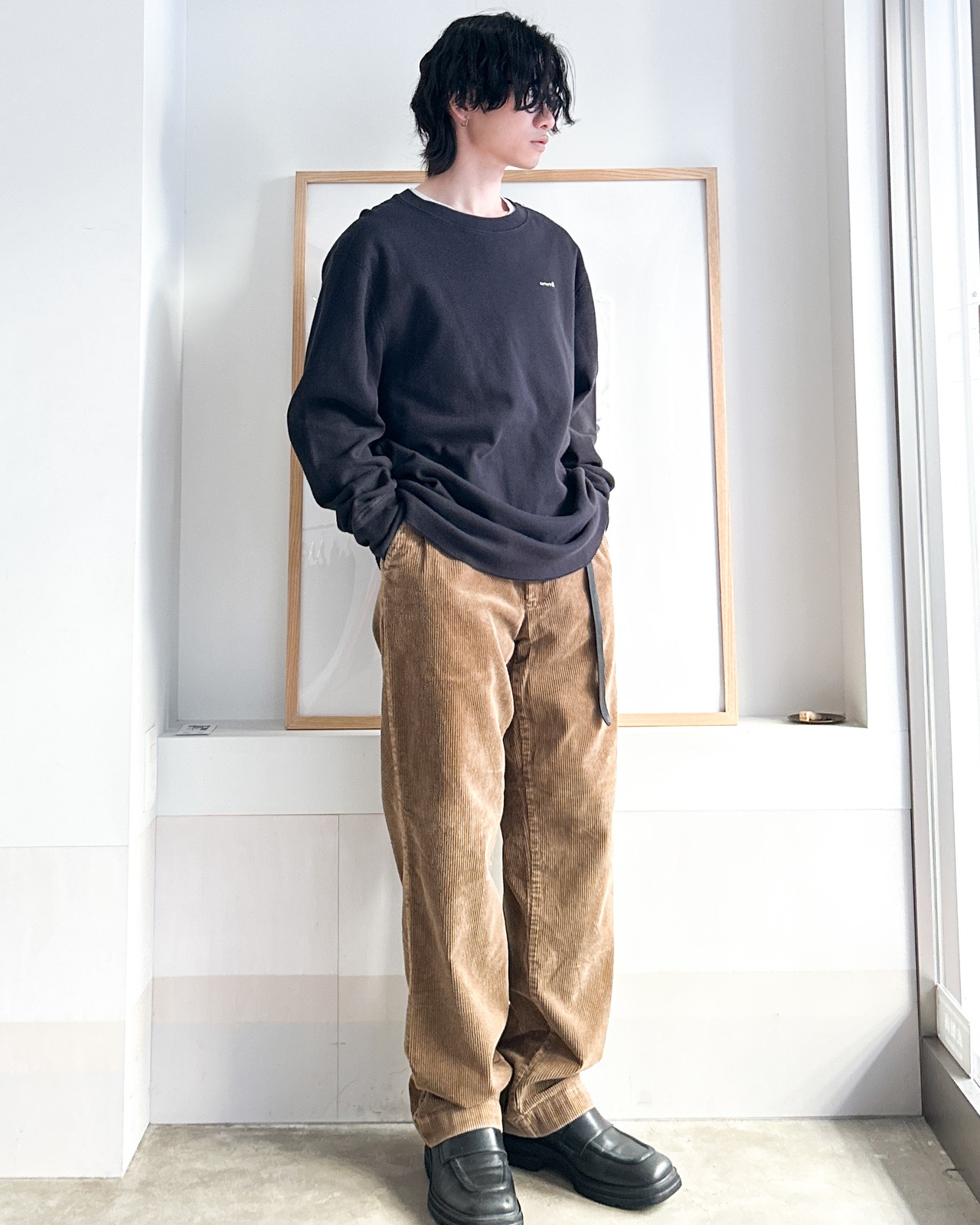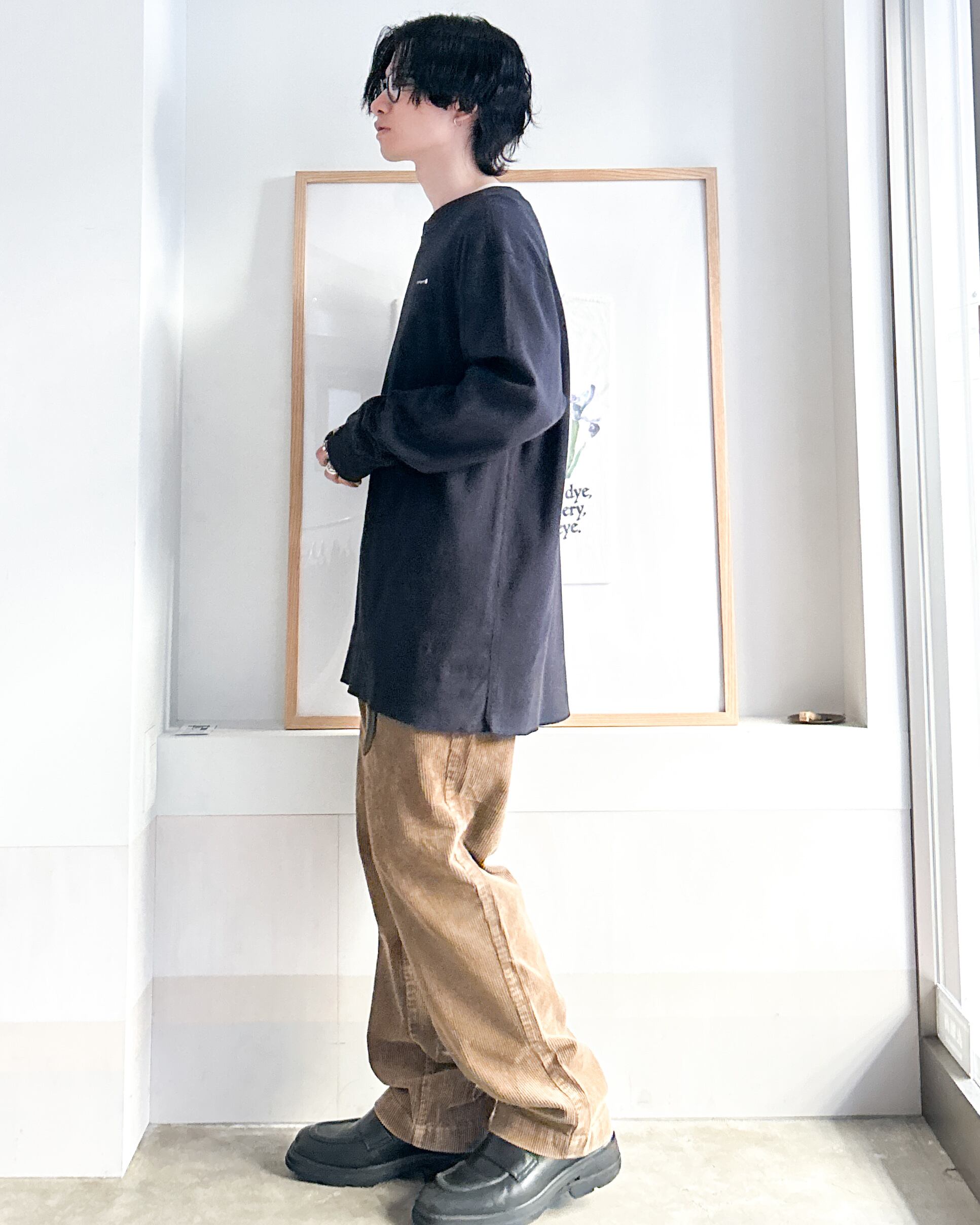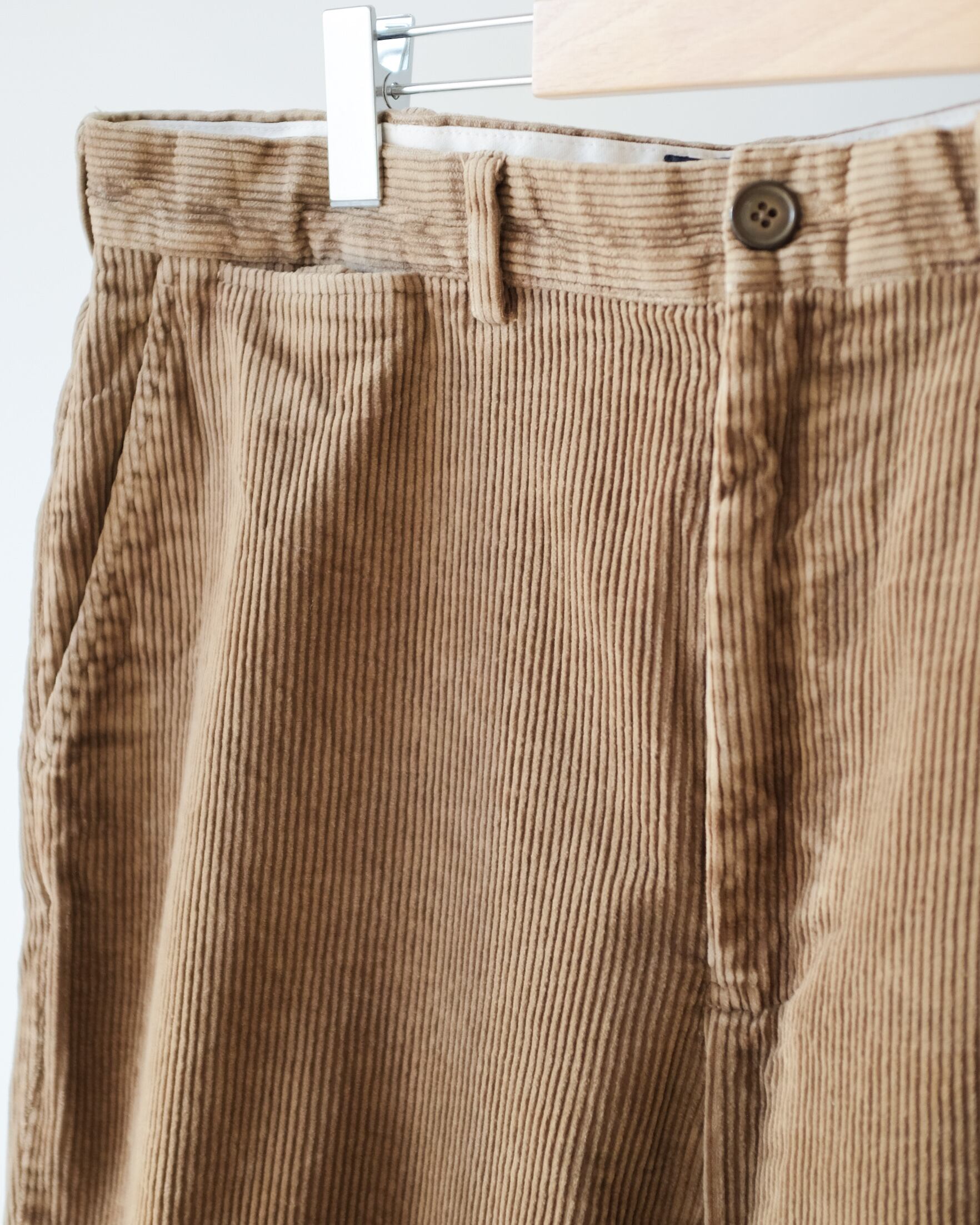 コーデュロイ特有のあたたかみのある質感と鈍い艶で表情を加えつつカジュアルすぎません。