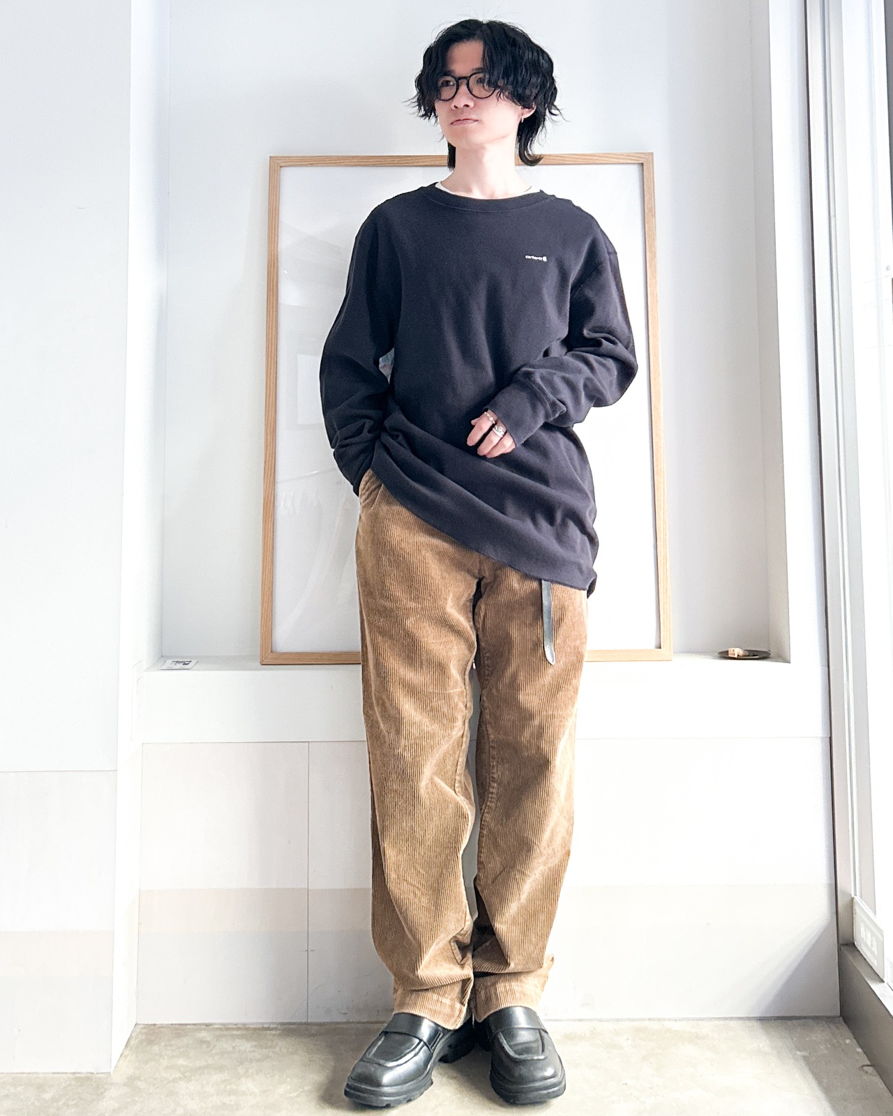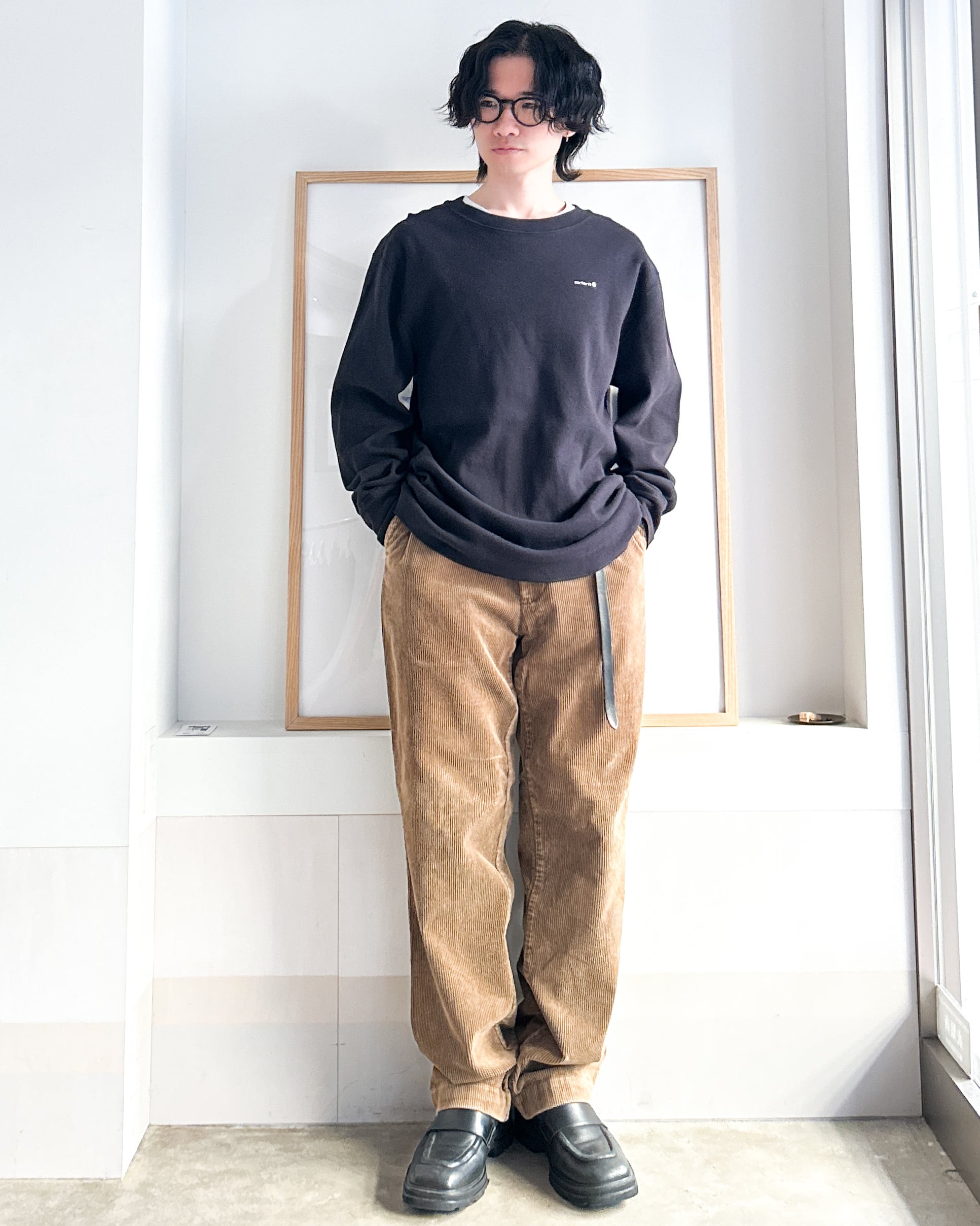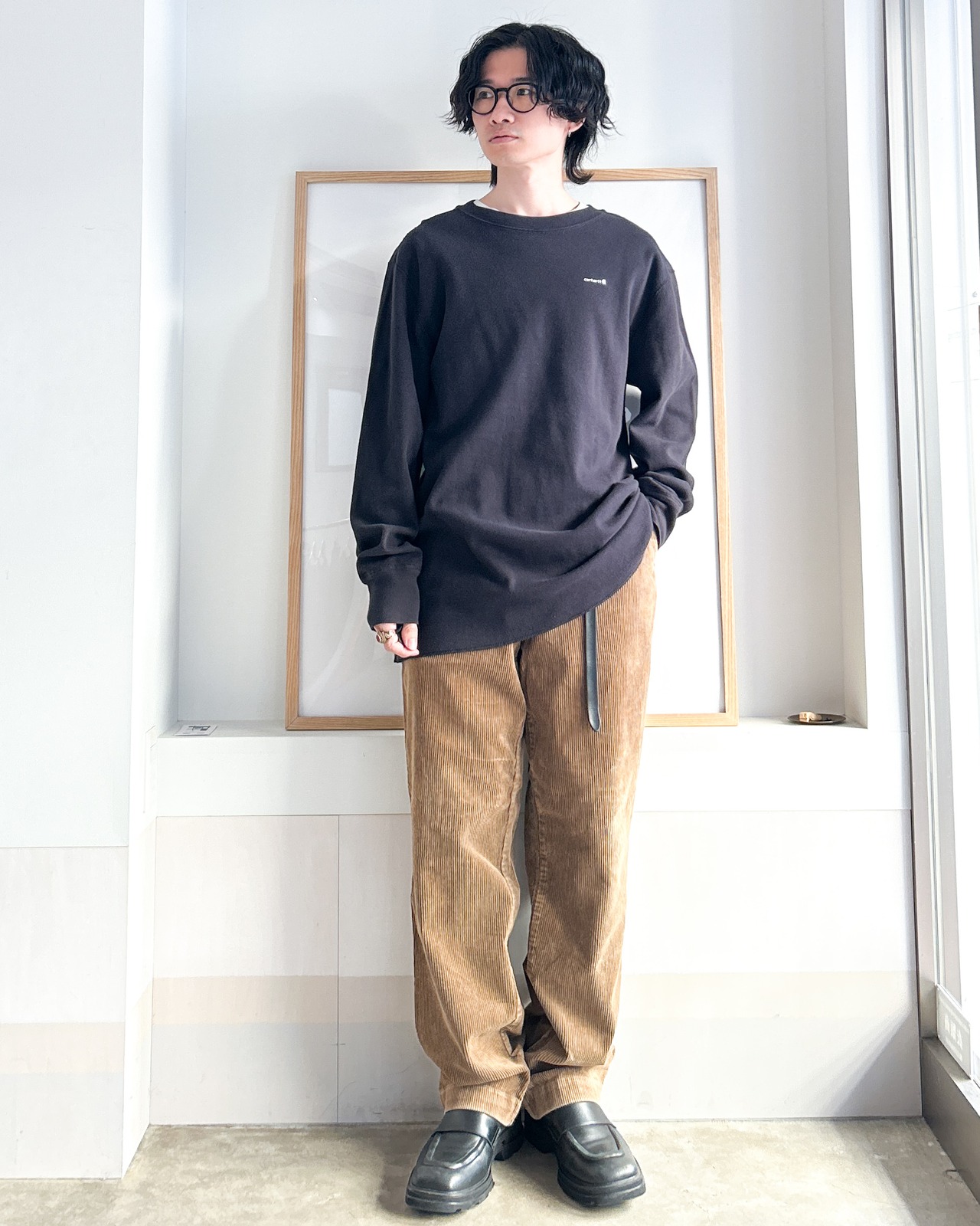 コーデュロイ特有のあたたかみのある質感と鈍い艶で表情を加えつつカジュアルすぎません。